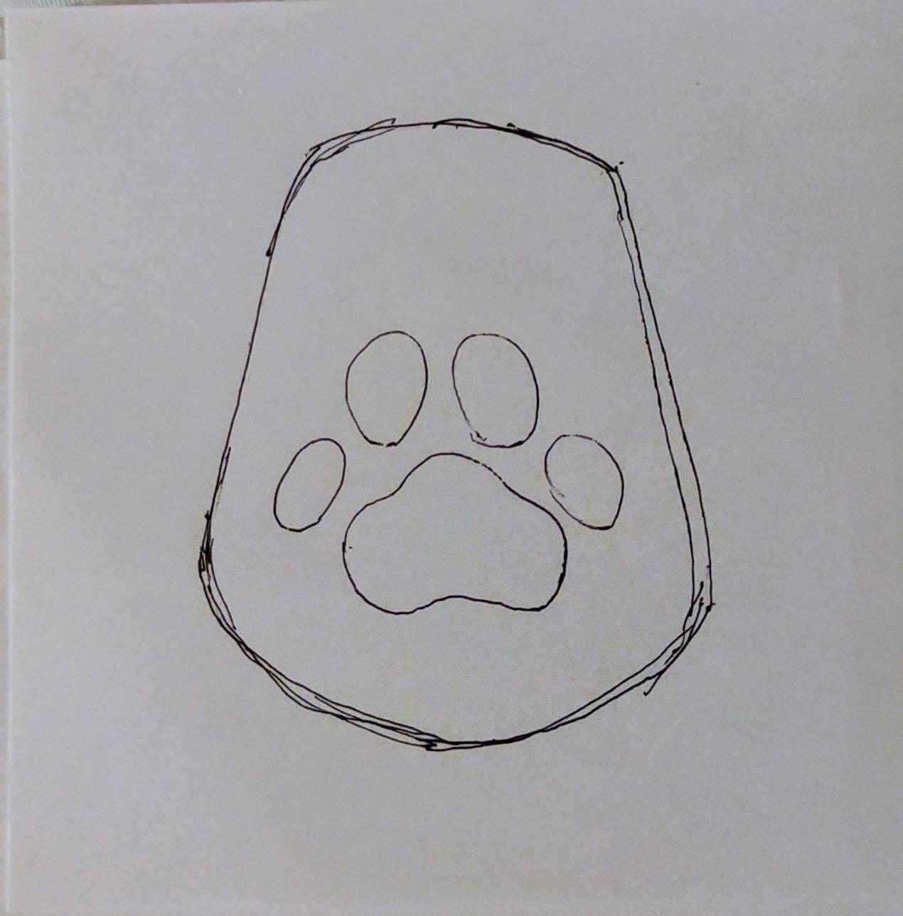 お客さんは事前にオンラインストアから彫刻した隕石を選ばれました。その隕石の形をトレースして、愛猫ちゃんの肉球をスケッチしたのです。