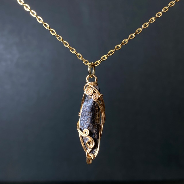 【ギベオン隕石とは】 1836年にナミビア共和国で発見された隕石です。美しいウィドマンシュテッテン構造が特徴的で、比較的サビにくい隕石になります。 【大きさ】 39x6x2mm 【重さ】 3.2g 【素材】 ステンレス(バチカン、チェーン) 24kメッキ