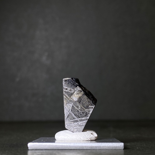 【ギベオン隕石とは】 1836年にナミビア共和国で発見された隕石です。美しいウィドマンシュテッテン構造が特徴的で、比較的サビにくい隕石になります。 【大きさ】 19x15x6mm 【重さ】 3.6g