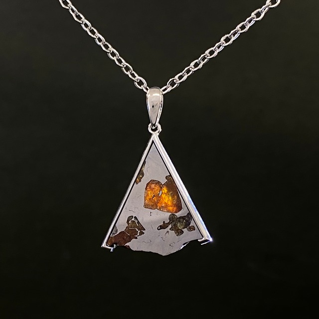 【イミラックについて】 1822年にチリで発見された隕石です。パラサイト隕石自体の回収量は全体の約1%で希少なのですが、イミラックはその中でも希少かつ人気の隕石です。そのカンラン石は大きく、透明度が高いです。イエローグリーンに輝くその様は、宇宙の宝石と呼ばれるほどです。サビにくさも人気の1つです。美しいそのフォルムを美しいまま、いつまでの楽しめる隕石です。 【イミラックのグレードについて】 当店のイミラックには「スタンダード」<「ハイグレード(HG)」<「トップグレード(TG)」の3段階のグレードがあります。 【大きさ】 25×21×3mm 【重さ】 5.2g 【素材】 ステンレス(チェーン) シルバー925
