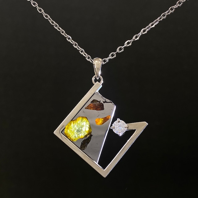 【イミラックについて】 1822年にチリで発見された隕石です。パラサイト隕石自体の回収量は全体の約1%で希少なのですが、イミラックはその中でも希少かつ人気の隕石です。そのカンラン石は大きく、透明度が高いです。イエローグリーンに輝くその様は、宇宙の宝石と呼ばれるほどです。サビにくさも人気の1つです。美しいそのフォルムを美しいまま、いつまでの楽しめる隕石です。 【イミラックのグレードについて】 当店のイミラックには「スタンダード」<「ハイグレード(HG)」<「トップグレード(TG)」の3段階のグレードがあります。 【大きさ】 17×11×3mm 【重さ】 0.5g 【素材】 ステンレス(チェーン) 24kメッキ シルバー925 ダイヤモンド