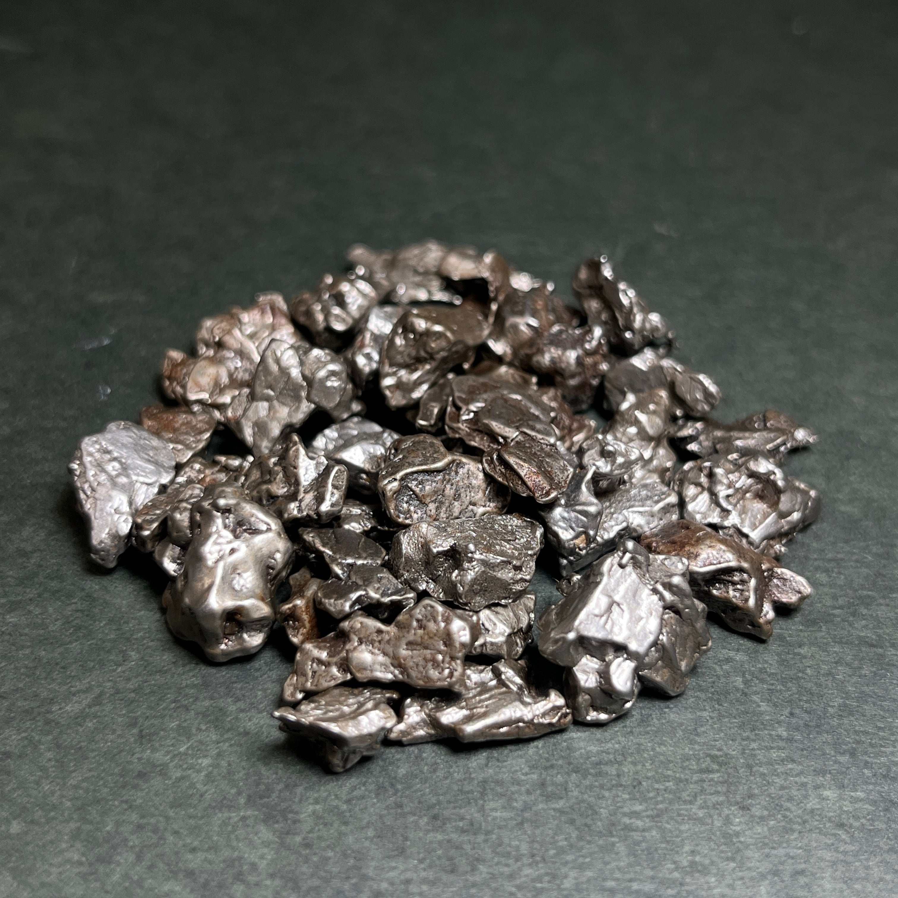 1576年にアルゼンチンで回収された隕石です。総回収量は100トンを超えており、市場に多く出回っている隕石の1つです。迷彩柄のようなウィドマンシュテッテン構造(隕石の模様)が特徴的ですが、切断されていない綺麗に磨かれたものが一般的です。当時の原住民が武器などに使用した文献が残っており、歴史的な隕石でもあります。通常、落下地点の地名が隕石名になりますが、「空から大きな岩石が落ちてきた」と感じたことから、カンポデルシエロは「空の草原」という名前が付いています。