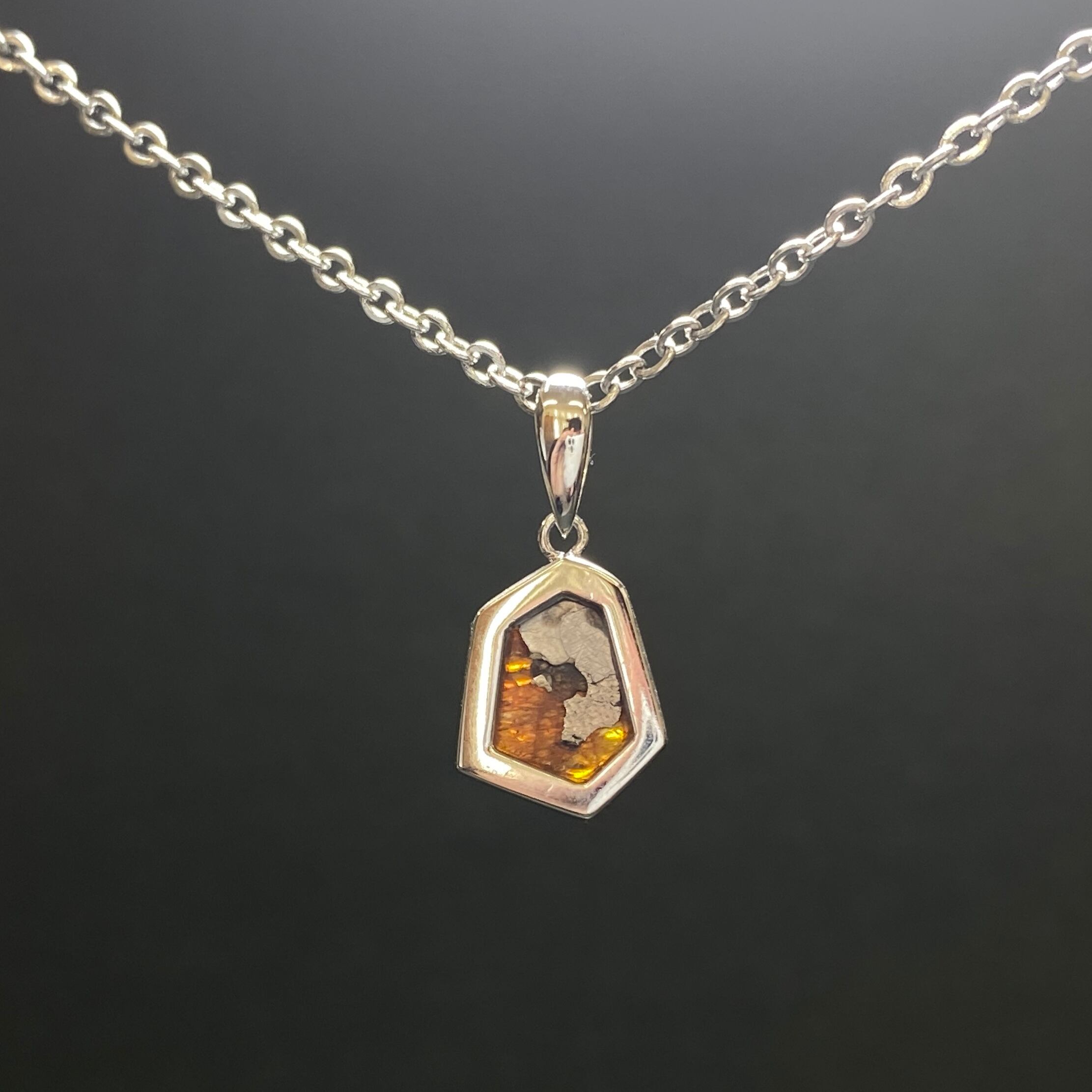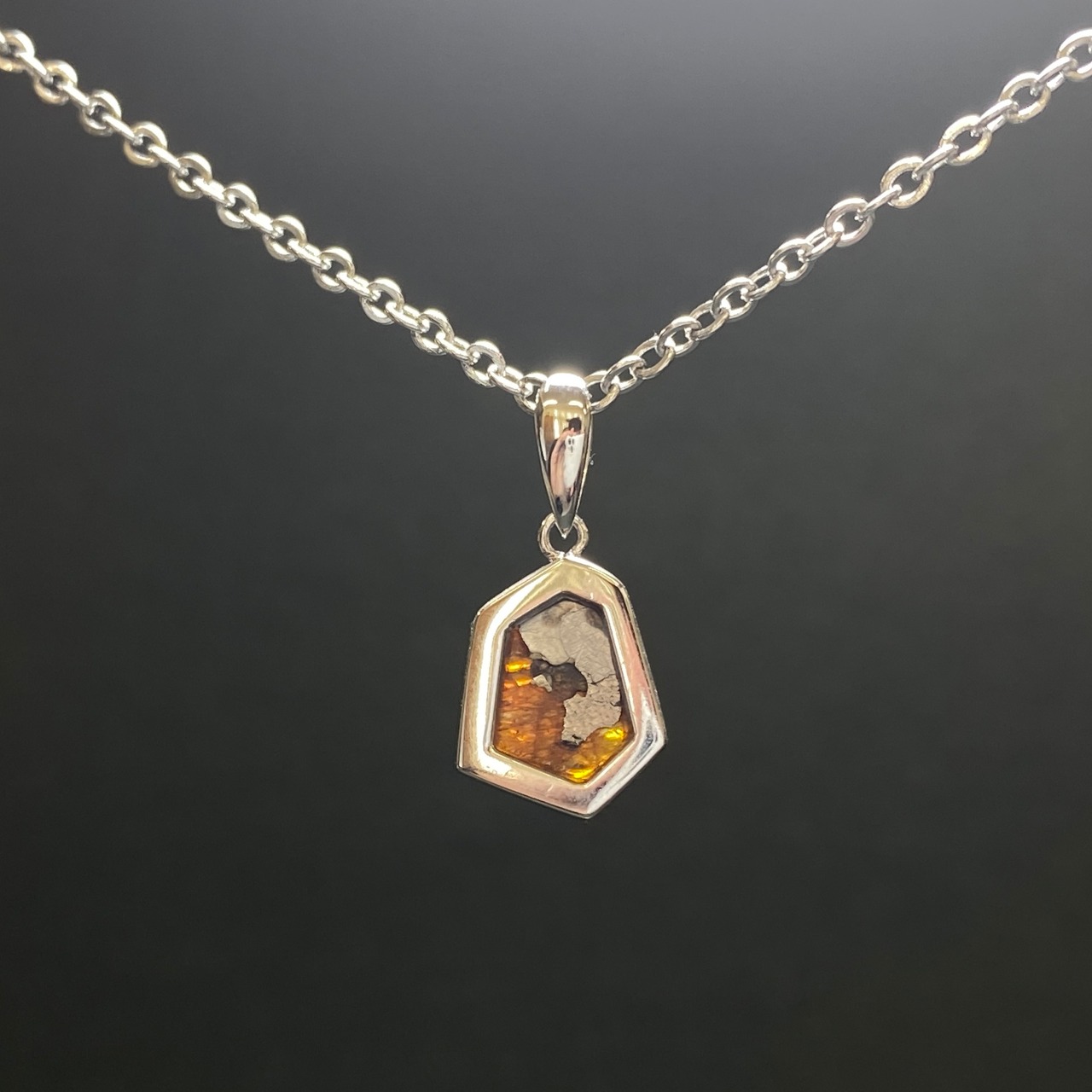 1822年にチリで発見された隕石です。パラサイト隕石自体の回収量は全体の約1%で希少なのですが、イミラックはその中でも希少かつ人気の隕石です。そのカンラン石は大きく、透明度が高いです。イエローグリーンに輝くその様は、宇宙の宝石と呼ばれるほどです。サビにくさも人気の1つです。美しいそのフォルムを美しいまま、いつまでも楽しめる隕石です。