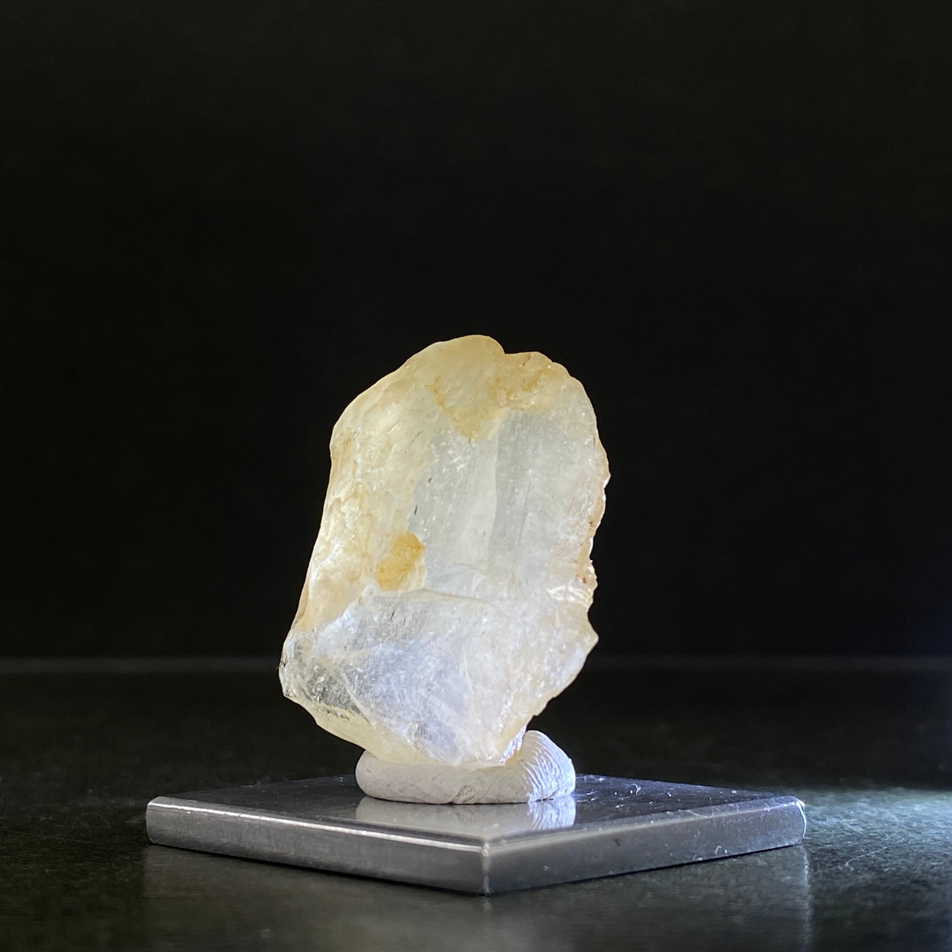 2600万年前のエジプトとのリビア国境近くでの大規模な隕石の衝撃によって形成されたインパクトガラスです。天然ガラスとも言われ、約98%の最も純粋なガラスだそうです。リビアングラスには、クリストバル石(クリストバライト)と呼ばれる白い気泡のような内包物があります。これは高温で形成された珪質の物質です。諸説ありますが、リビア東部とエジプト西部の砂漠には、1000トン以上のリビアンが散らばっていると言われています。その多くは小さいサイズですが、今まで発見された中で1番大きいリビアンは約26kgです。新石器時代、当時の人はリビアンを使ってガラスの道具を作り、後にエジプト人はそれらを使って宝石を作りました。ちなみに、エジプトにあるミラミッドのツタンカーメンの胸当てにちりばめられた石は、リビアングラスで作られています。