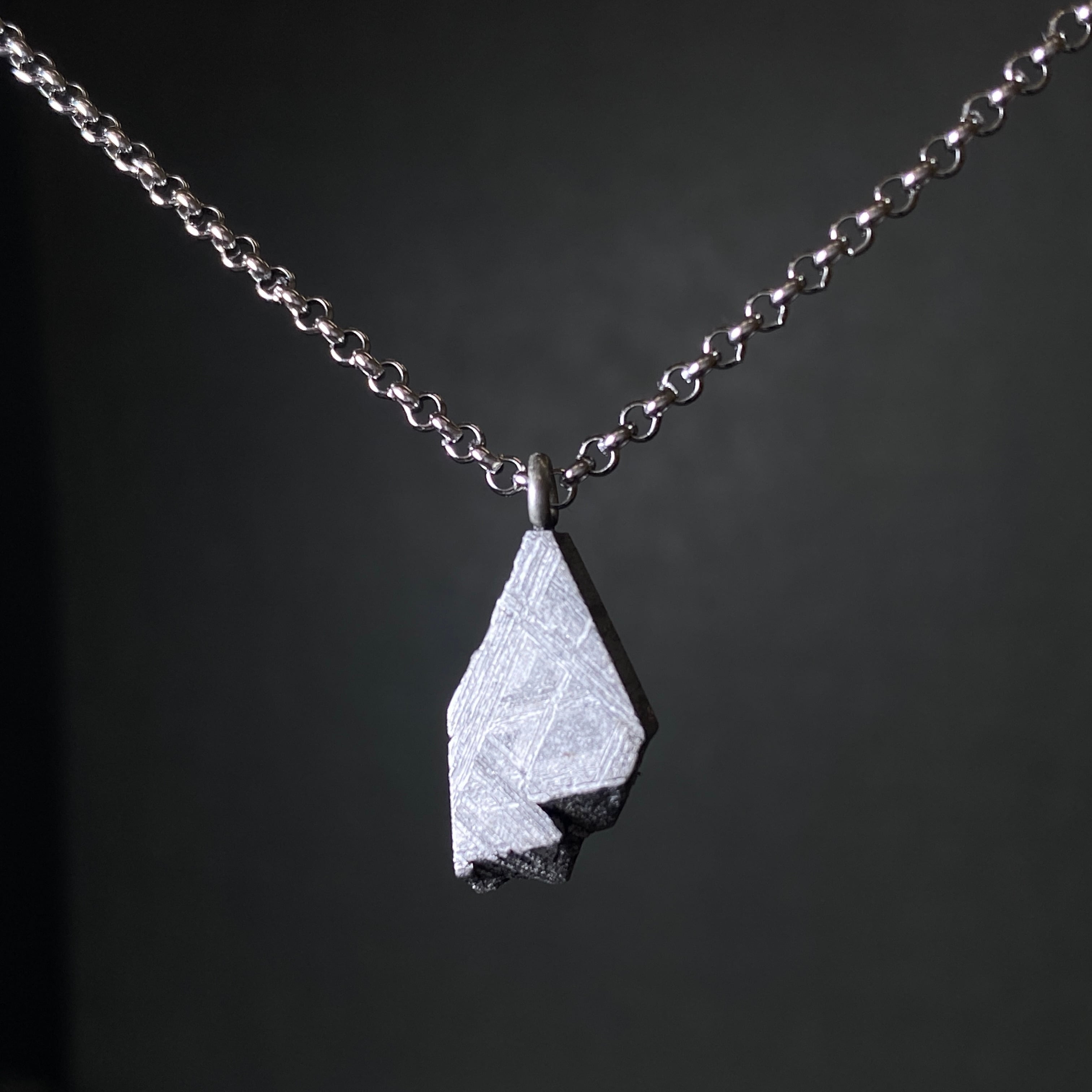 1906年にスウェーデンで発見された隕石です。地球に落ちてから3回以上の氷河期を迎えていたことが最近の研究で分かったようです。落ちた場所が北極に近く、回収が難しいと言われております。ギベオン隕石と似ている模様が出るのが特徴です。どこの面を切っても安定的なウィドマンシュテッテン構造が出るので、ビーズや大量生産品に向いている隕石です。一般的にはメッキ処理され、ギベオン隕石と売られていることが多く、専門家でも見極めが難しい隕石になります。