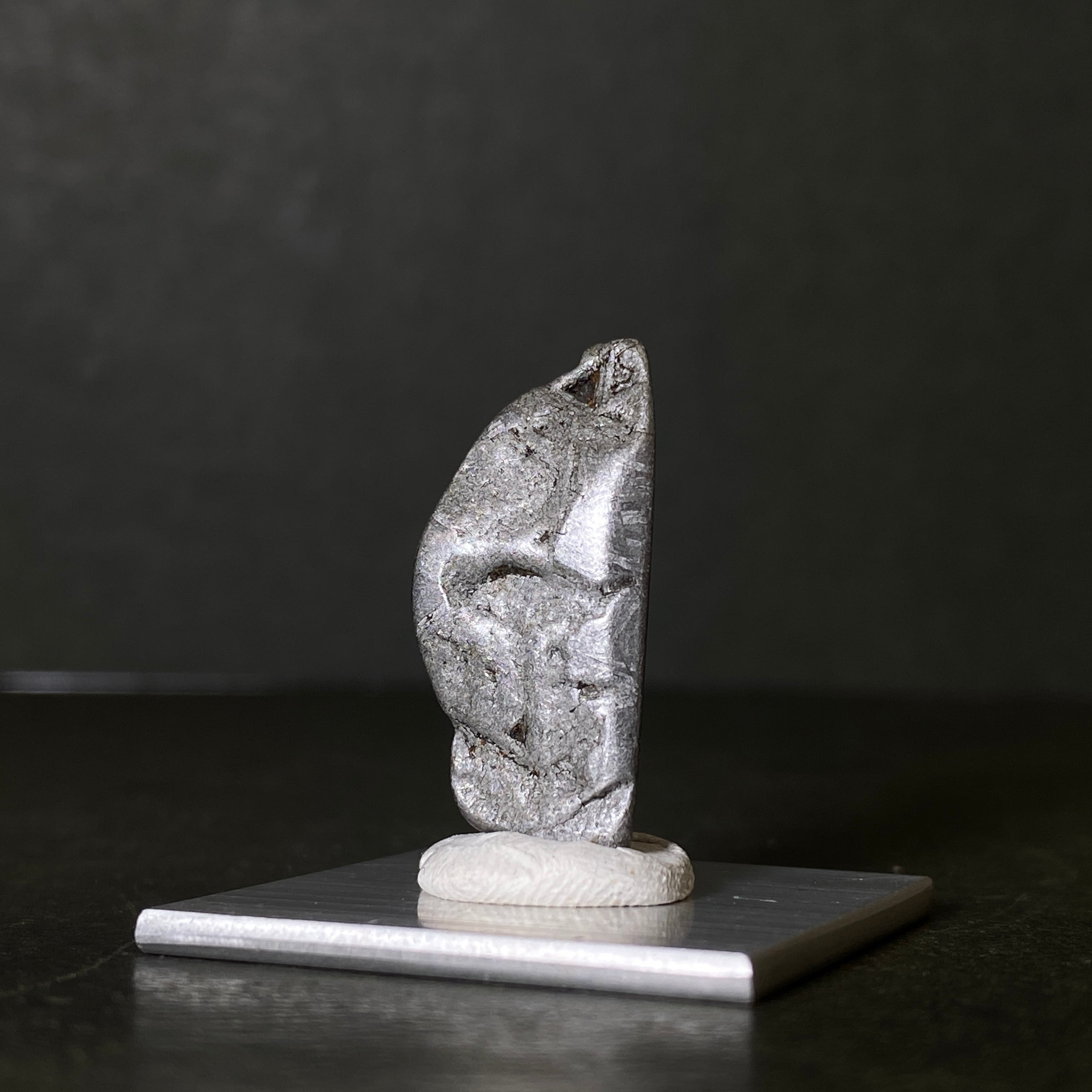 1906年にスウェーデンで発見された隕石です。地球に落ちてから3回以上の氷河期を迎えていたことが最近の研究で分かったようです。落ちた場所が北極に近く、回収が難しいと言われております。ギベオン隕石と似ている模様が出るのが特徴です。どこの面を切っても安定的なウィドマンシュテッテン構造が出るので、ビーズや大量生産品に向いている隕石です。一般的にはメッキ処理され、ギベオン隕石と売られていることが多く、専門家でも見極めが難しい隕石になります。