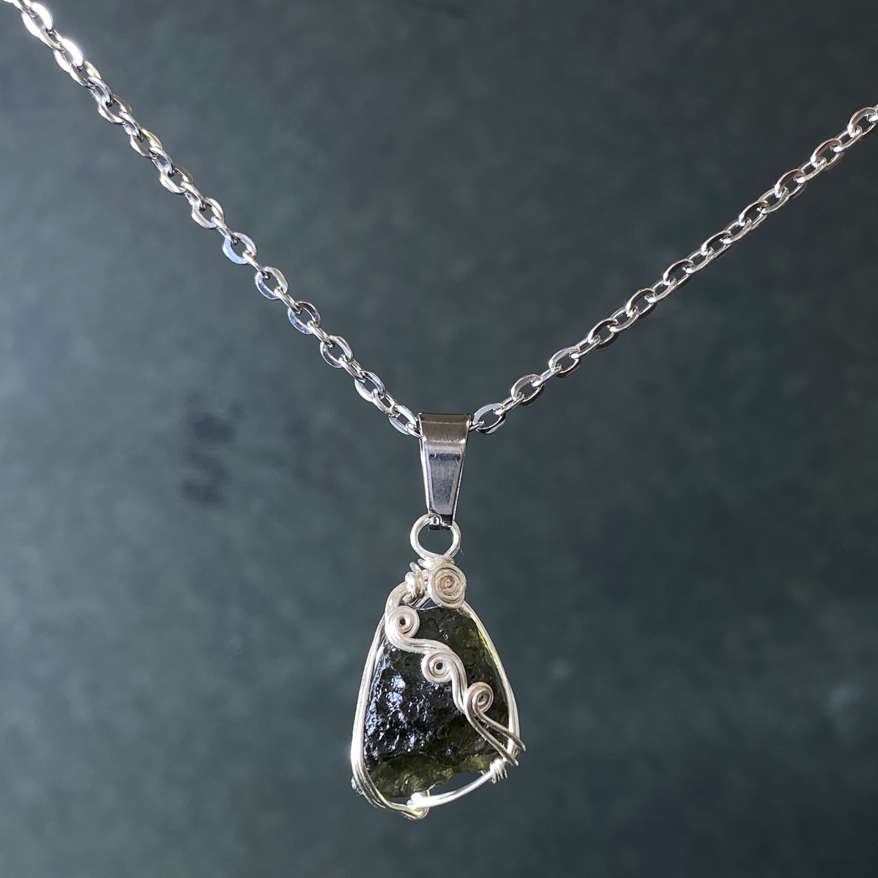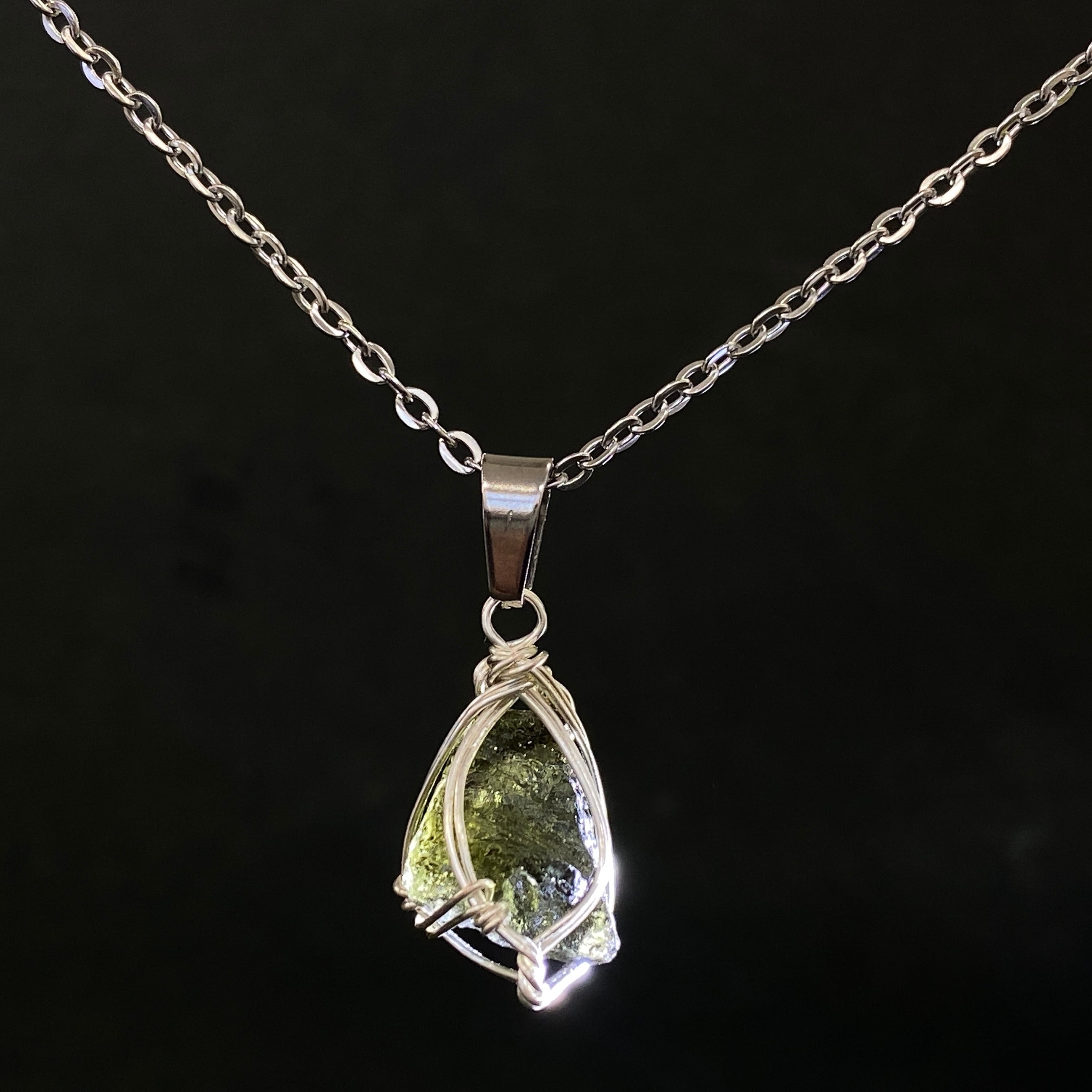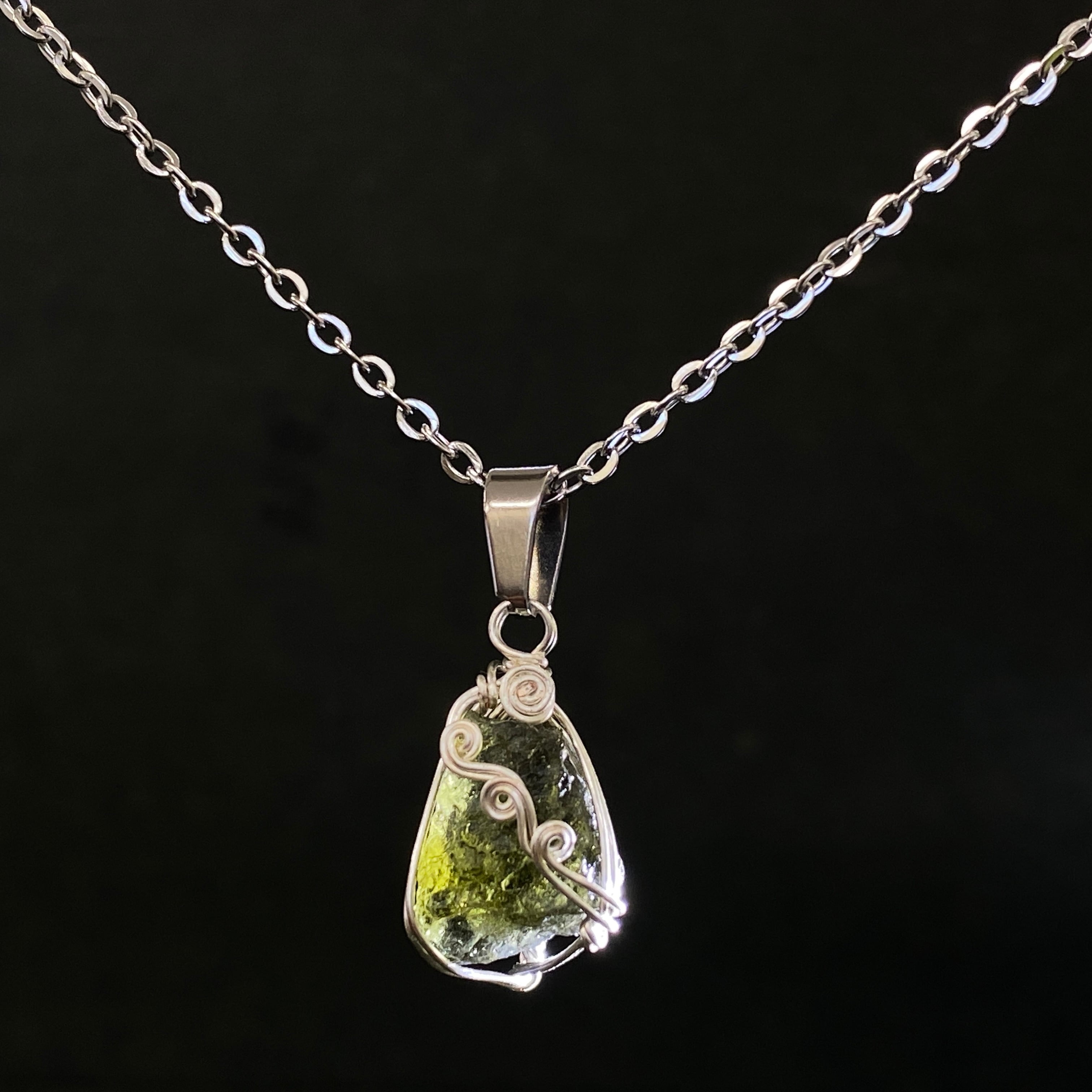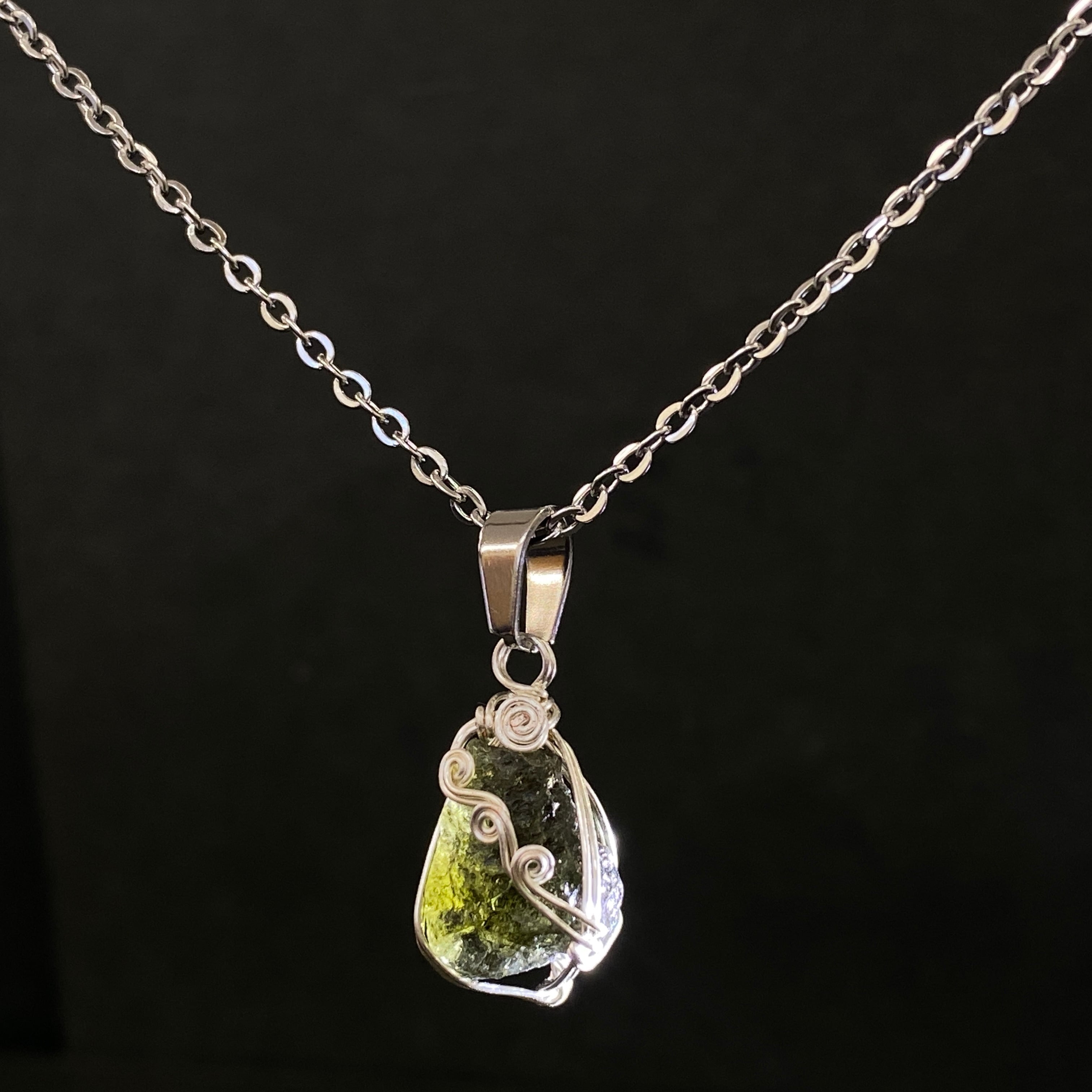 チェコで回収されたインパクトガラスです。近年、高騰し続けている隕石の1つで、形の綺麗なモルダバイトは年々少なくなっております。人気(需要)と在庫(供給)のバランスが崩れており、回収地の本場チェコでも偽物が量産されているほどです。本物のモルダバイトを手にしたいのであれば、安価で販売されているモルダバイトには手を出さないことをオススメします。ビーズのブレスレットや研磨された綺麗なモルダバイトも同様です。モルダバイトを購入する時にはご注意ください。