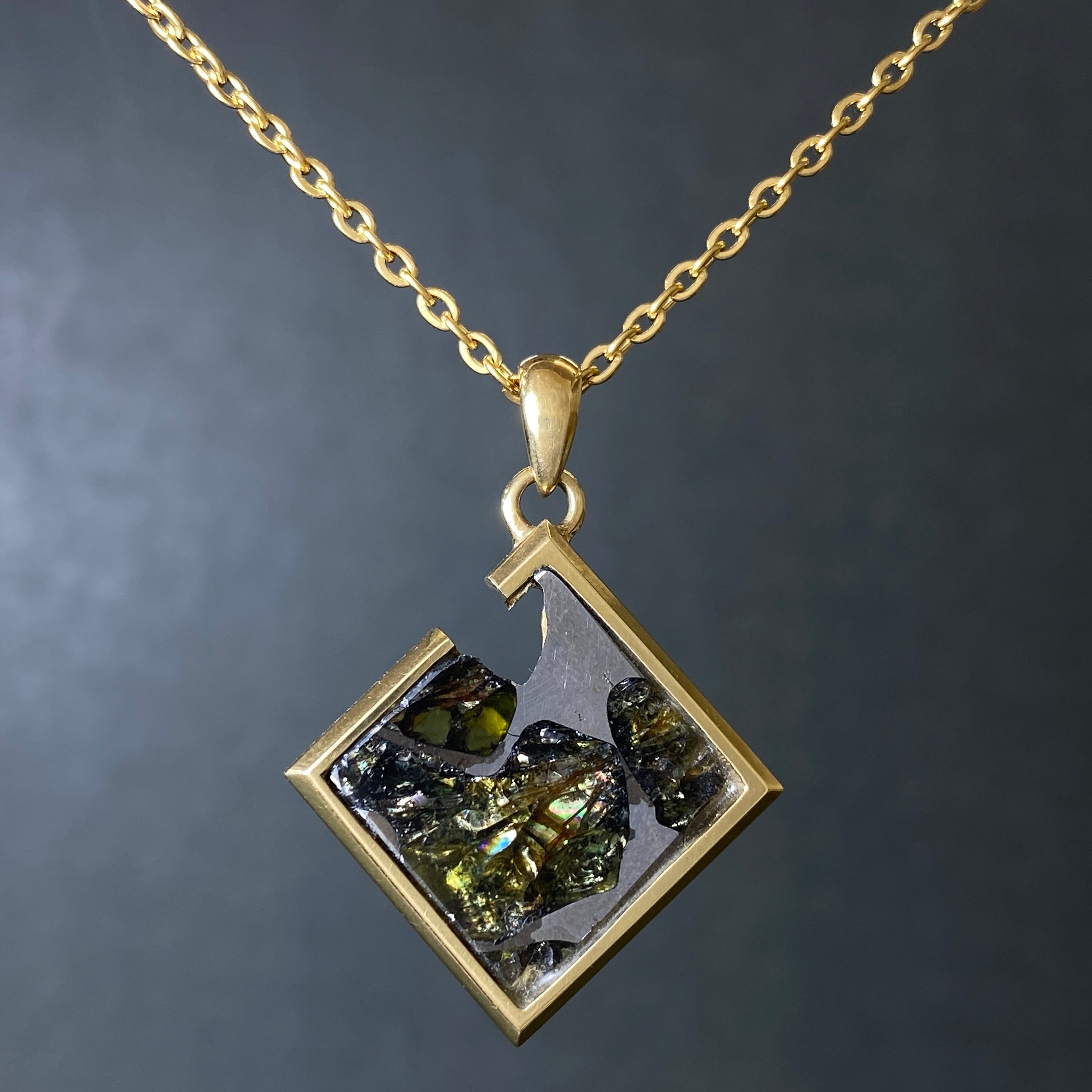1951年にアルゼンチンで回収された石鉄隕石(パラサイト隕石)です。オリーブ色のカンラン石が特徴的で、大きさ、透明度ともに最高クラス。更にサビにも強いので、コレクターから強い人気を集めています。手放す人が少ないため入手困難な隕石で、イミラックよりも高価な隕石です。