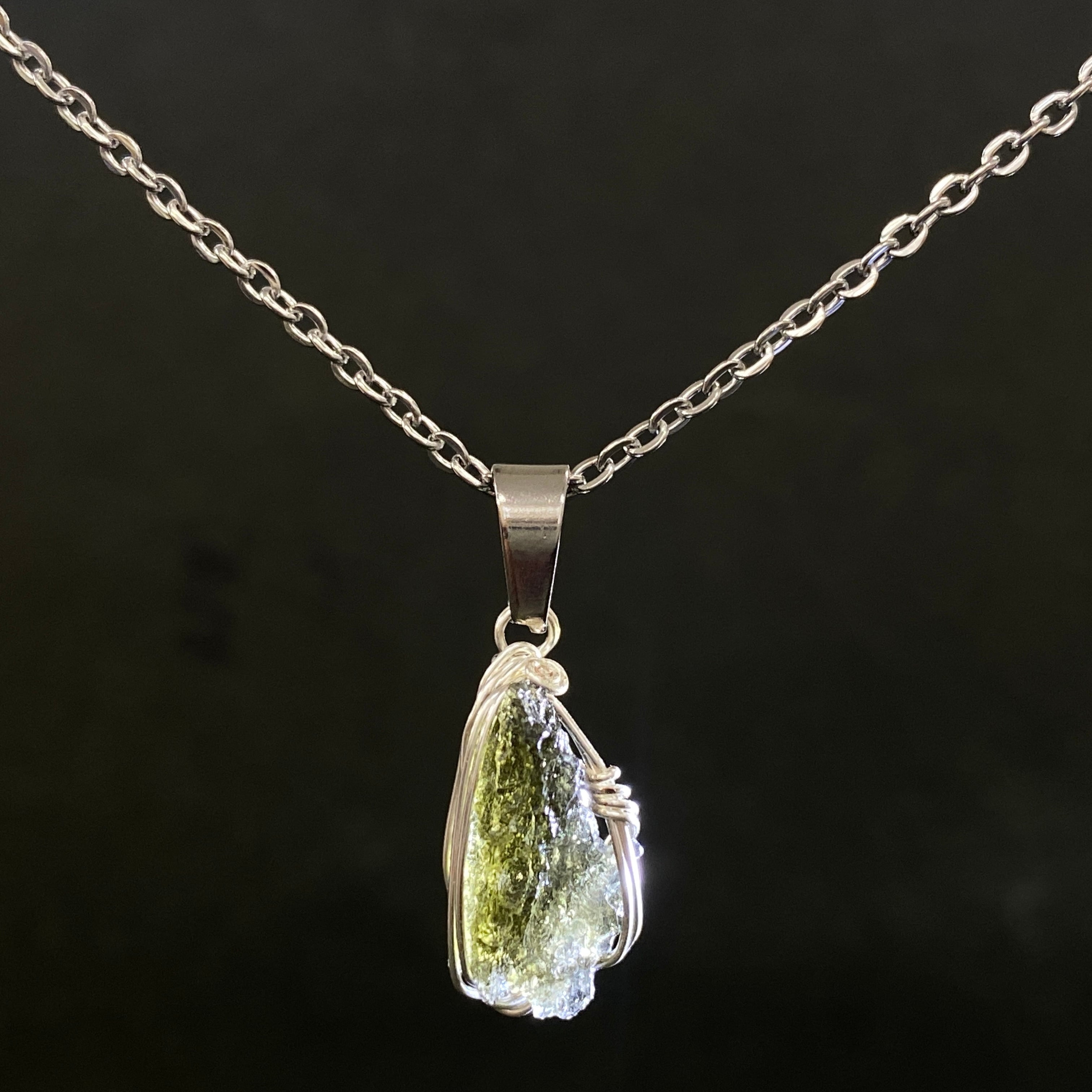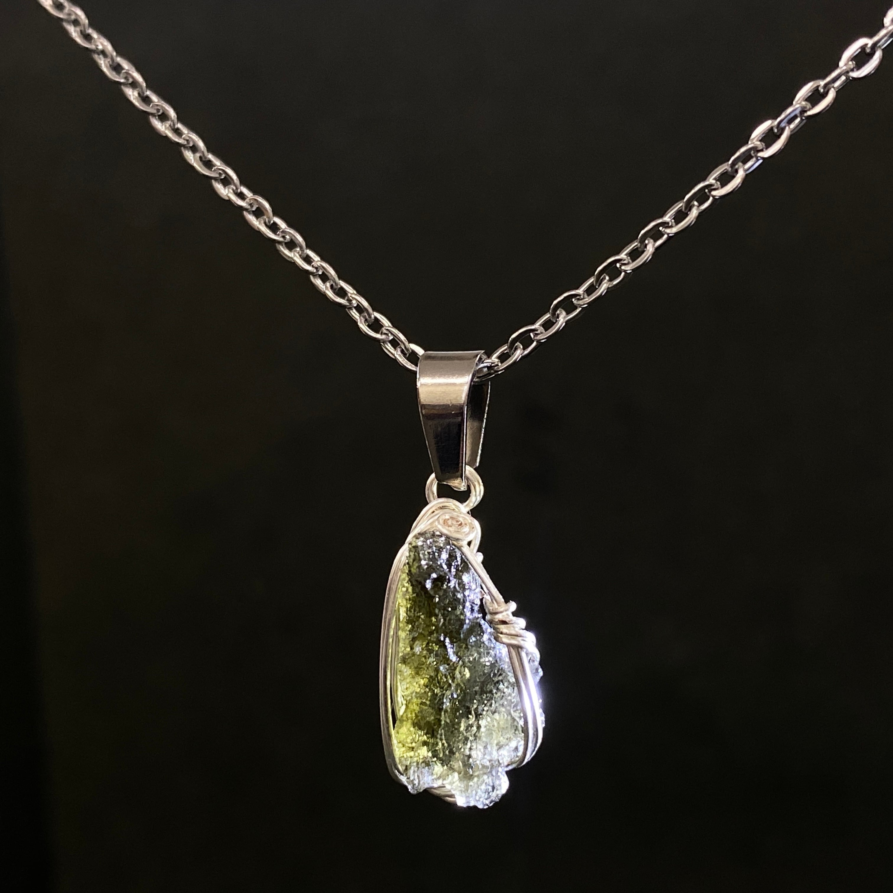 チェコで回収されたインパクトガラスです。近年、高騰し続けている隕石の1つで、形の綺麗なモルダバイトは年々少なくなっております。人気(需要)と在庫(供給)のバランスが崩れており、回収地の本場チェコでも偽物が量産されているほどです。本物のモルダバイトを手にしたいのであれば、安価で販売されているモルダバイトには手を出さないことをオススメします。ビーズのブレスレットや研磨された綺麗なモルダバイトも同様です。モルダバイトを購入する時にはご注意ください。