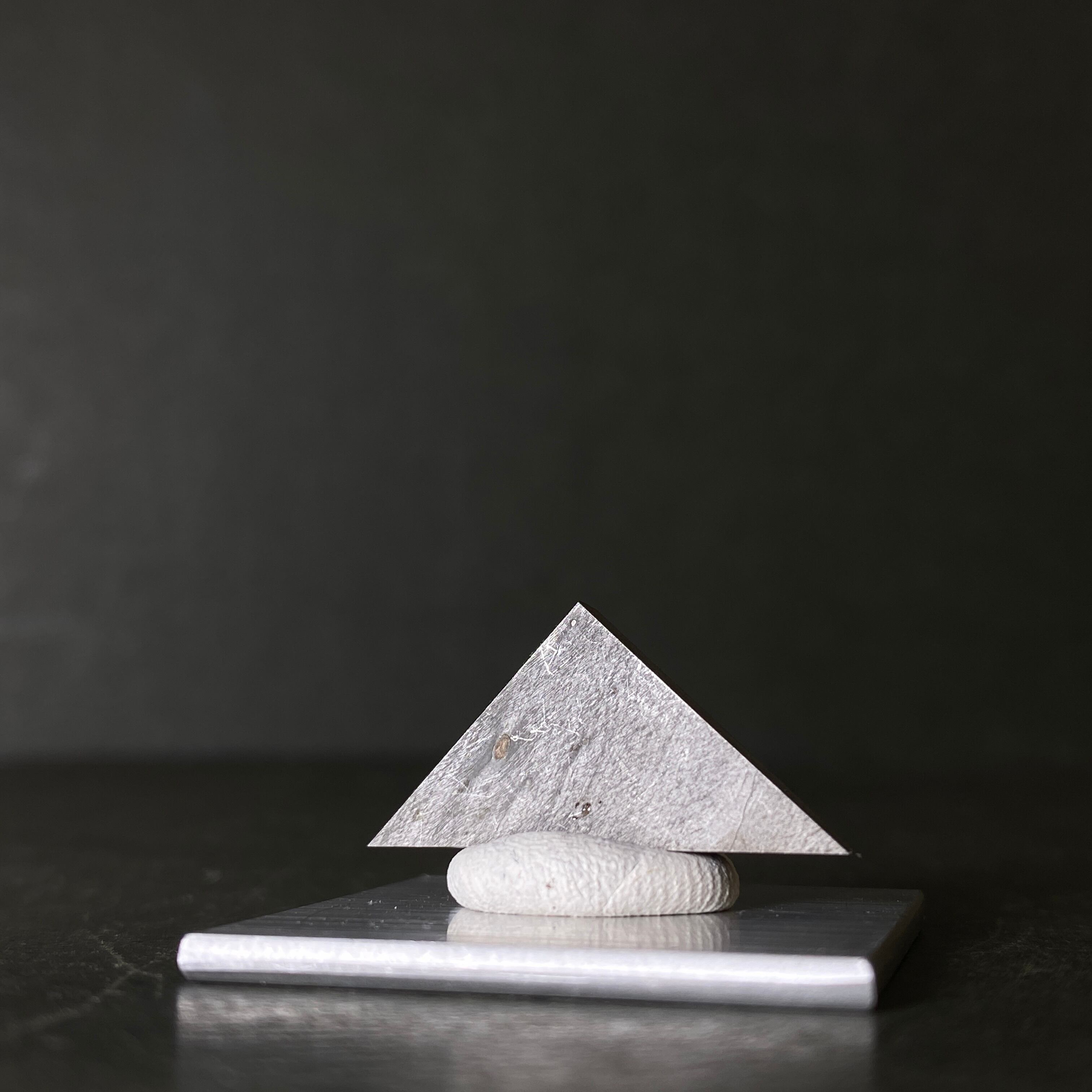 2000年にロシアで発見された隕石です。鉄隕石の一種で、ウィドマンシュテッテン構造が出ないアタキサイトに分類されます。それは隕石の主成分である鉄とニッケルの成分比の違いによるもので、ドロニノ隕石はニッケルが25%以上あるのが特徴です。そのためスライス品の鏡面仕上げが一般的で、その断面にトロイライトという黒いポツポツがあるのも特徴の1つです。