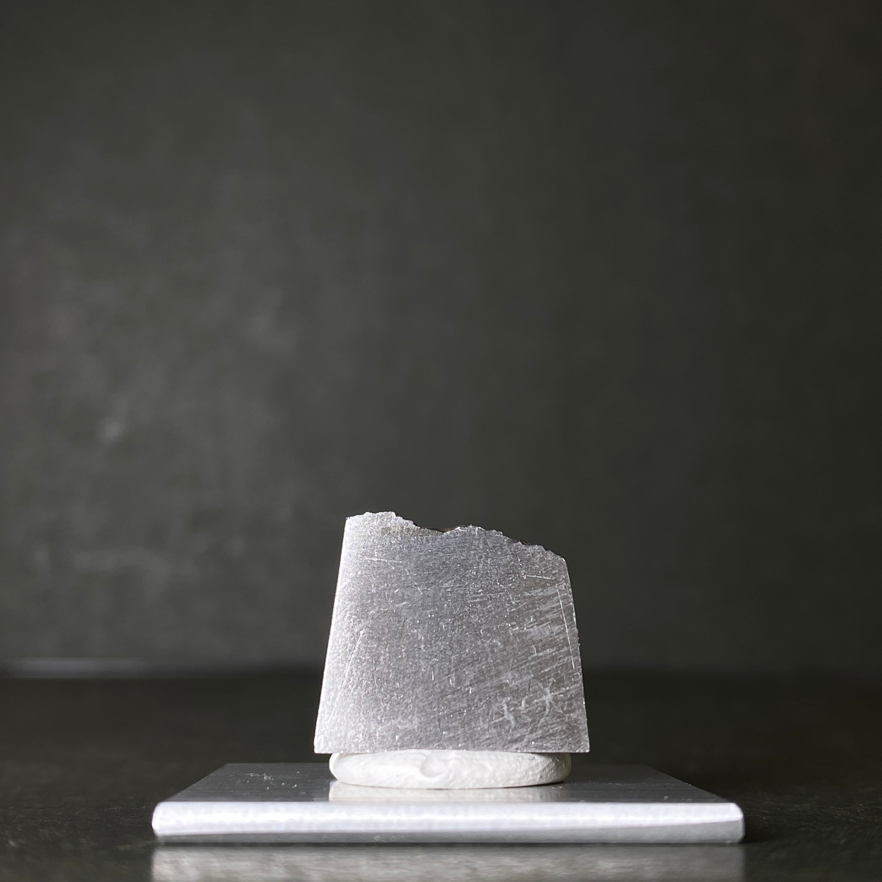 1913年にロシアで発見された隕石です。アタキサイトという種類で、ウィドマンシュテッテン構造やノイマンラインが出ない分類の鉄隕石です。切断されたチンガーのスライス品を研磨すると、不均一な鏡のような表面が出来るのが特徴的です。