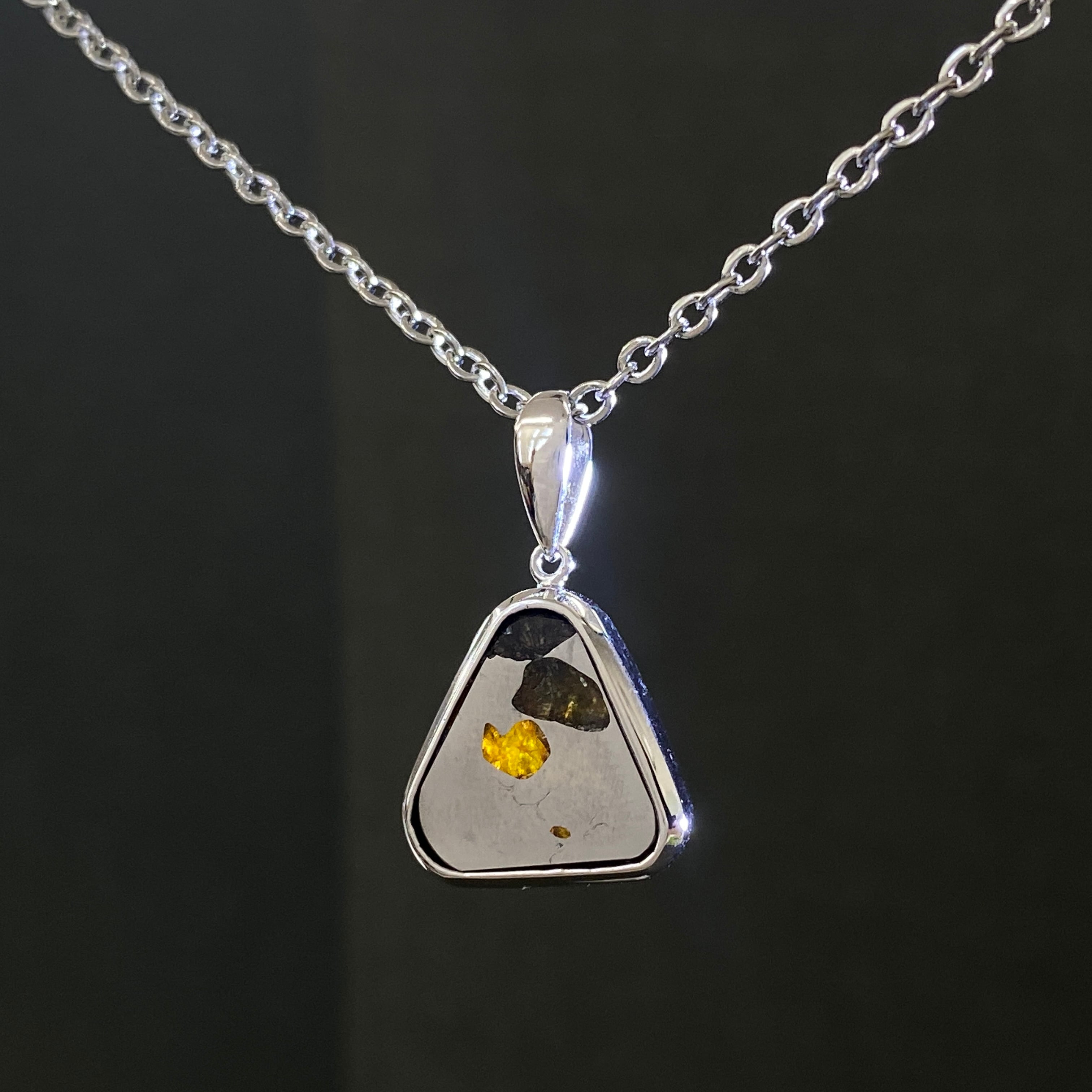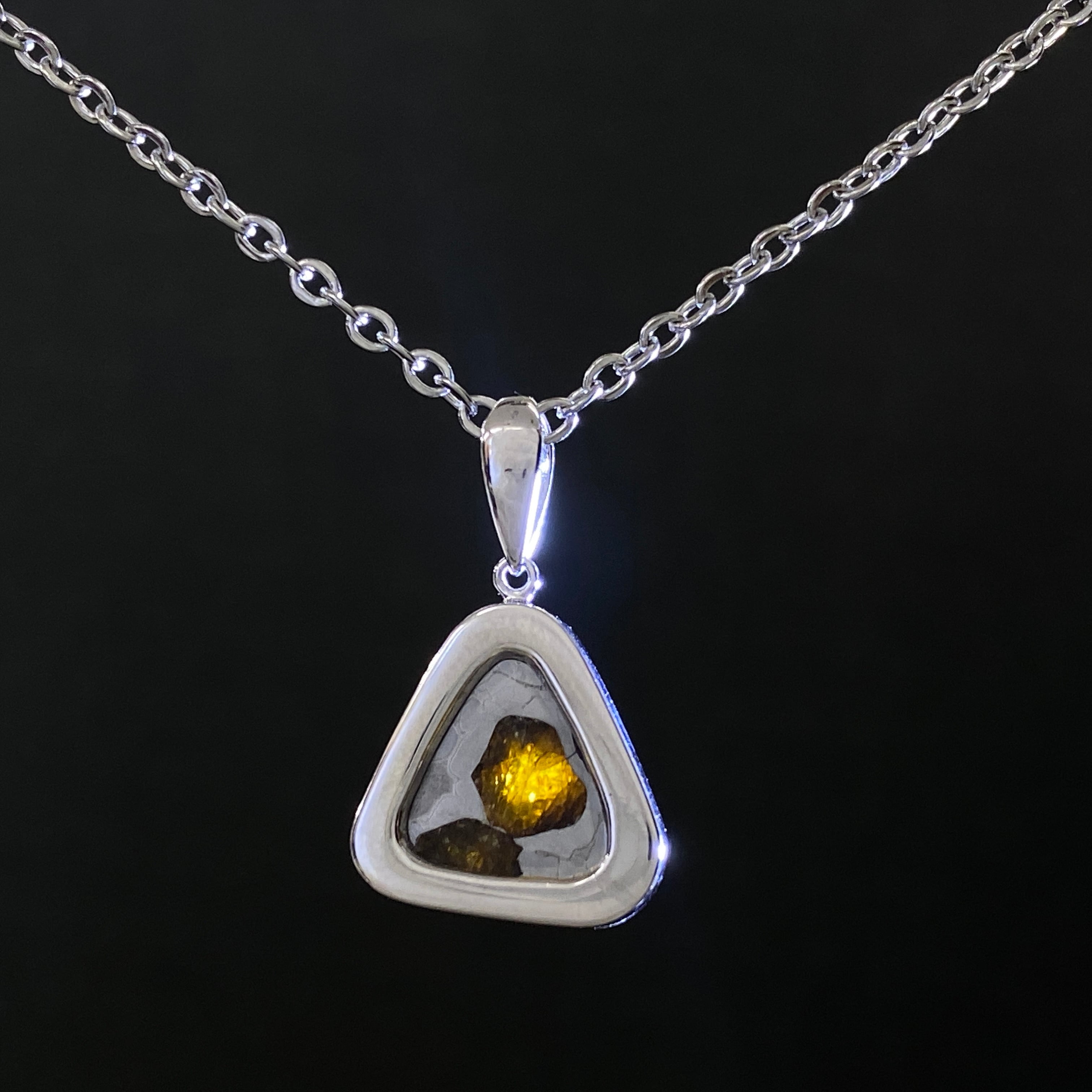 1822年にチリで発見された隕石です。パラサイト隕石自体の回収量は全体の約1%で希少なのですが、イミラックはその中でも希少かつ人気の隕石です。そのカンラン石は大きく、透明度が高いです。イエローグリーンに輝くその様は、宇宙の宝石と呼ばれるほどです。サビにくさも人気の1つです。美しいそのフォルムを美しいまま、いつまでの楽しめる隕石です。