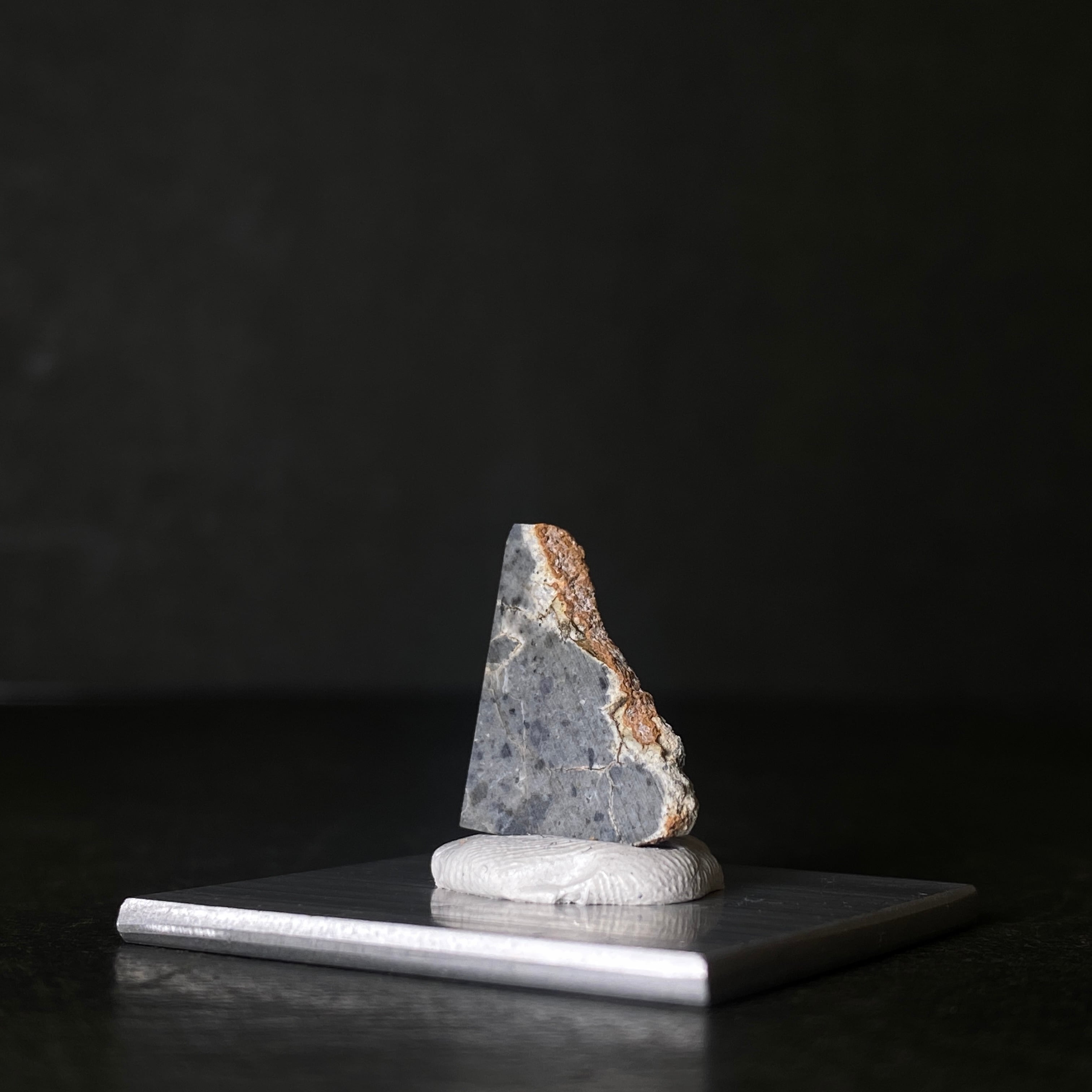 2022年の春にアルジェリアで回収された月の隕石です。惑星などが月に衝突した勢いで欠けた月の一部が宇宙を浮遊します。その欠片は軌道を描き、地球に衝突するまで何百万年も宇宙を浮遊します。なぜ月の隕石という事が分かるのかというと、アポロ計画が関係しています。アポロ計画で月の岩石が地球に持ち運ばれ、その組織構造などをデータ化しました。それにより科学的に月の隕石であると証明することができます。唯一肉眼で見られる隕石なので、世界的に人気のある隕石です。