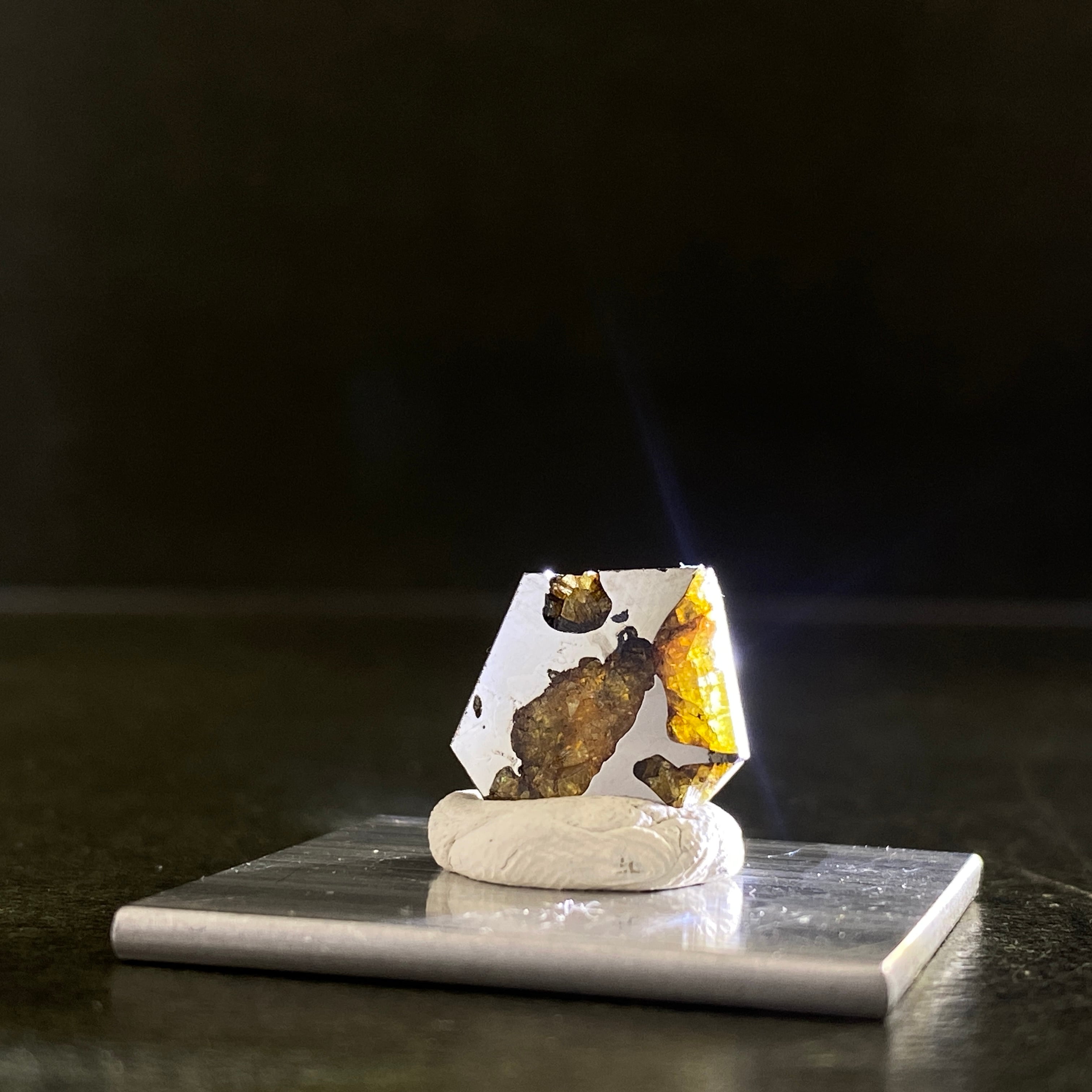1822年にチリで発見された隕石です。パラサイト隕石自体の回収量は全体の約1%で希少なのですが、イミラックはその中でも希少かつ人気の隕石です。そのカンラン石は大きく、透明度が高いです。イエローグリーンに輝くその様は、宇宙の宝石と呼ばれるほどです。サビにくさも人気の1つです。美しいそのフォルムを美しいまま、いつまでの楽しめる隕石です。
