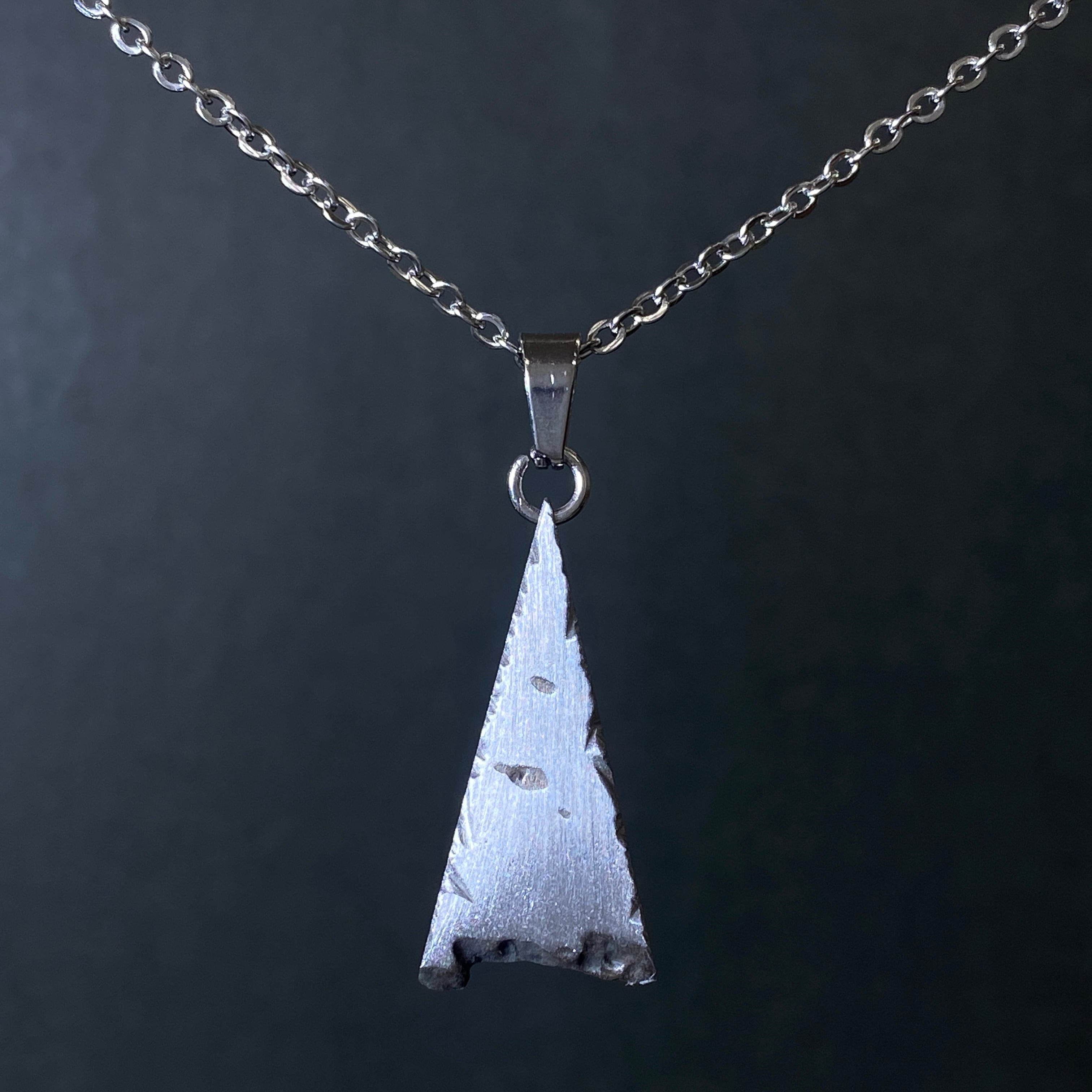 2000年にロシアで発見された隕石です。鉄隕石の一種で、ウィドマンシュテッテン構造が出ないアタキサイトに分類されます。それは隕石の主成分である鉄とニッケルの成分比の違いによるもので、ドロニノ隕石はニッケルが25%以上あるのが特徴です。そのためスライス品の鏡面仕上げが一般的で、その断面にトロイライトという黒いポツポツがあるのも特徴の1つです。