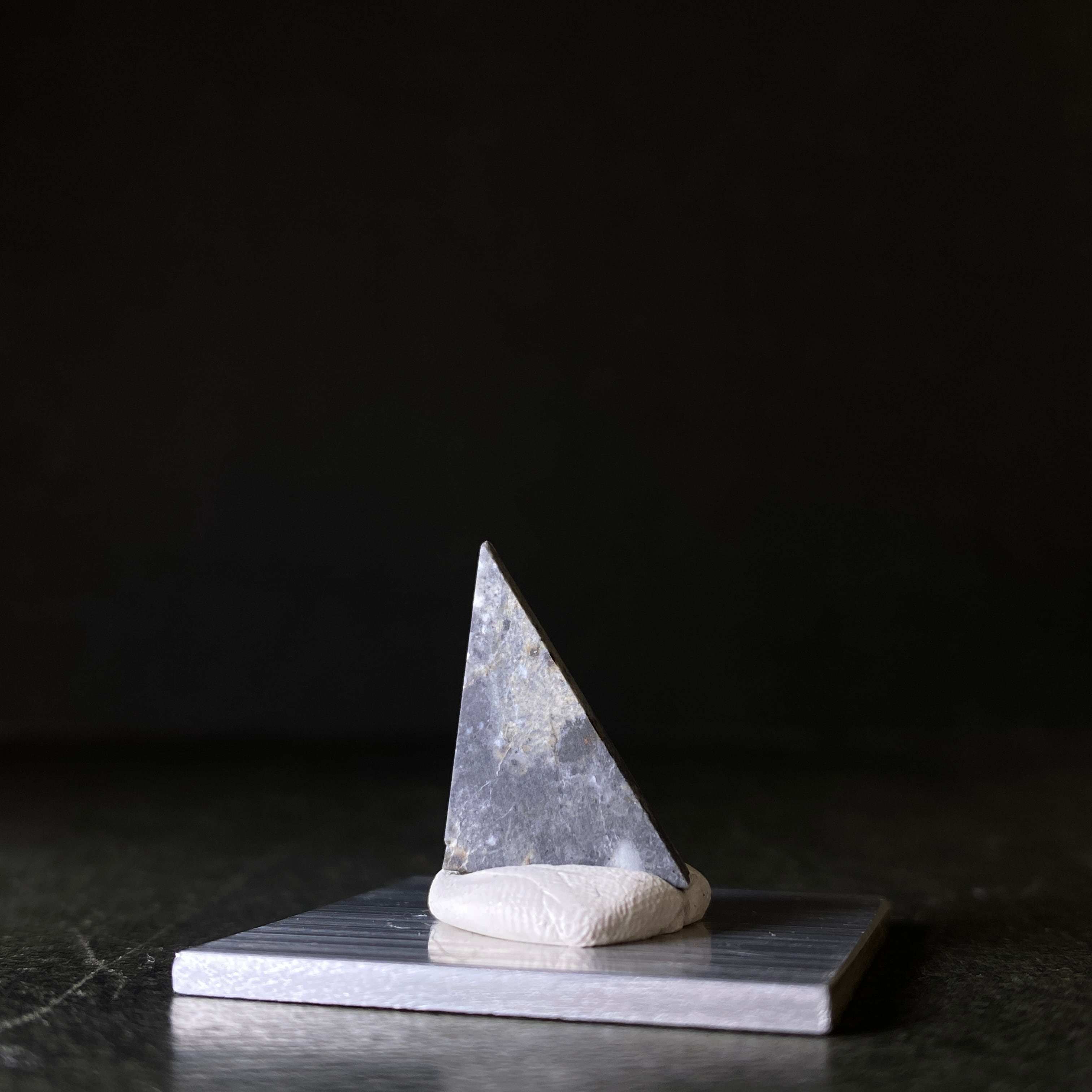 2022年の春にアルジェリアで回収された月の隕石です。惑星などが月に衝突した勢いで欠けた月の一部が宇宙を浮遊します。その欠片は軌道を描き、地球に衝突するまで何百万年も宇宙を浮遊します。なぜ月の隕石という事が分かるのかというと、アポロ計画が関係しています。アポロ計画で月の岩石が地球に持ち運ばれ、その組織構造などをデータ化しました。それにより科学的に月の隕石であると証明することができます。唯一肉眼で見られる隕石なので、世界的に人気のある隕石です。