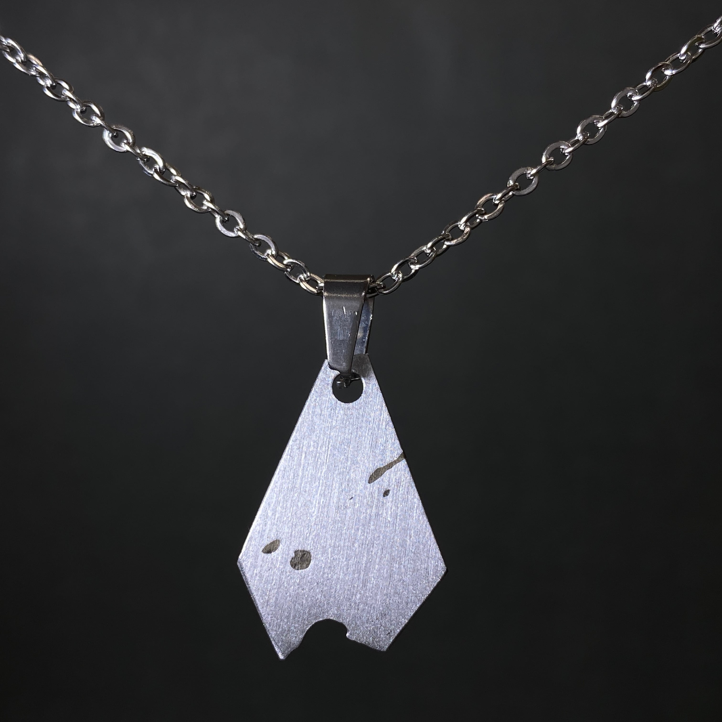 2000年にロシアで発見された隕石です。鉄隕石の一種で、ウィドマンシュテッテン構造が出ないアタキサイトに分類されます。それは隕石の主成分である鉄とニッケルの成分比の違いによるもので、ドロニノ隕石はニッケルが25%以上あるのが特徴です。そのためスライス品の鏡面仕上げが一般的で、その断面にトロイライトという黒いポツポツがあるのも特徴の1つです。