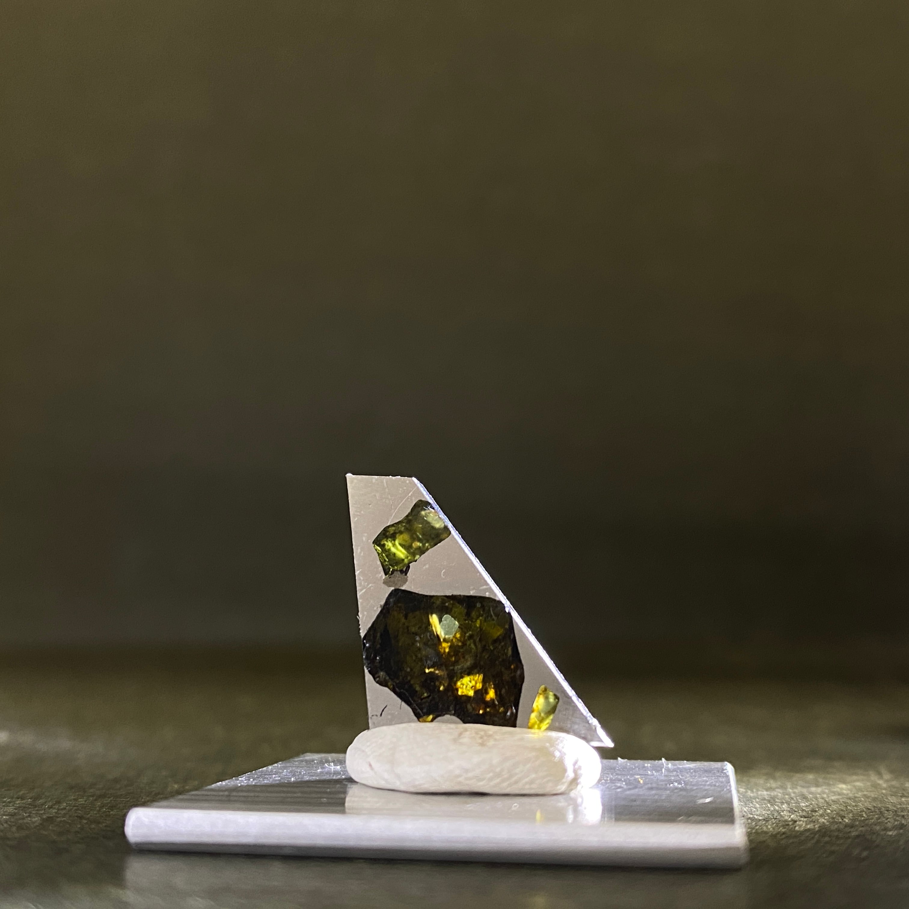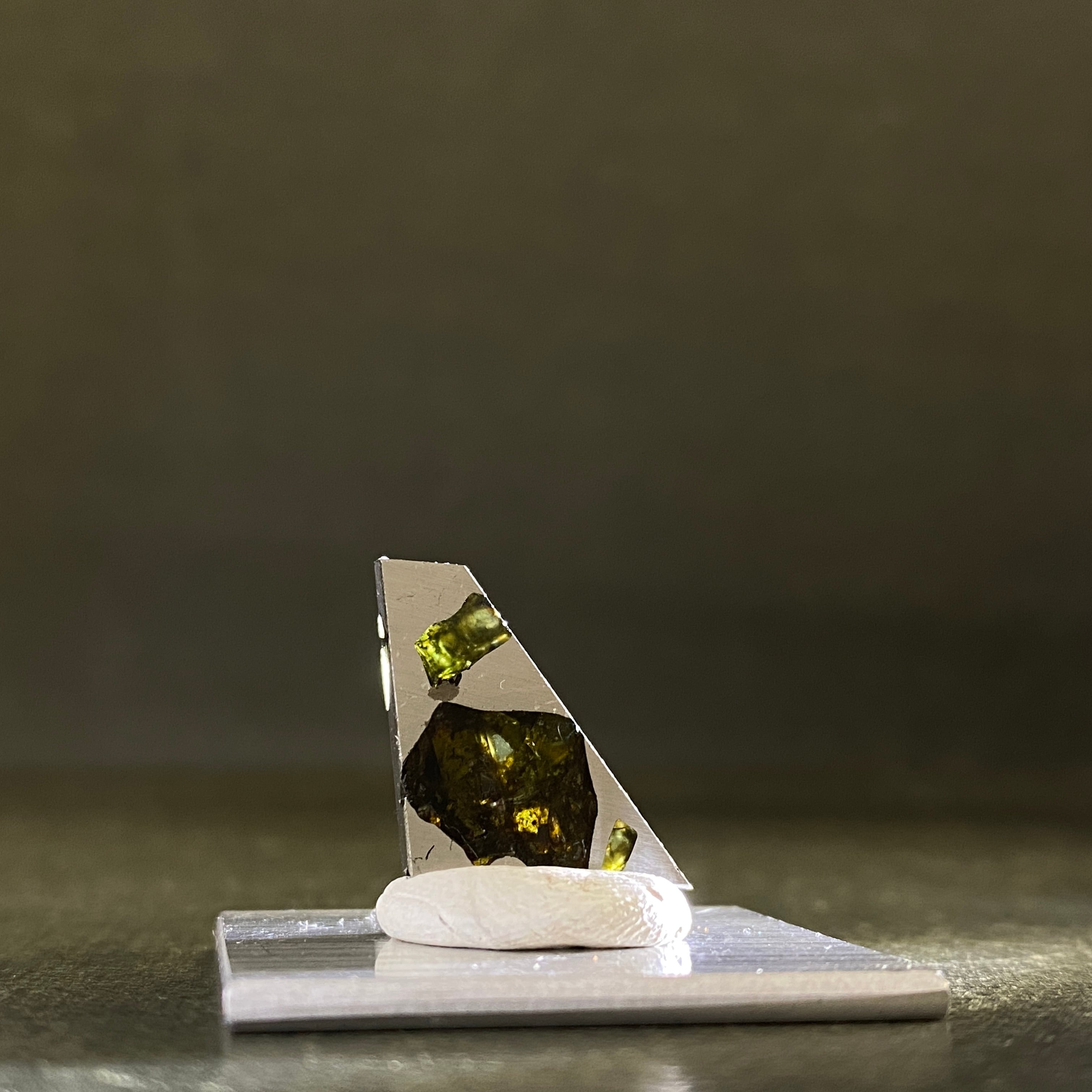 1951年にアルゼンチンで回収された石鉄隕石(パラサイト隕石)です。オリーブ色のカンラン石が特徴的で、大きさ、透明度ともに最高クラス。更にサビにも強いので、コレクターから強い人気を集めています。手放す人が少ないため入手困難な隕石で、イミラックよりも高価な隕石です。