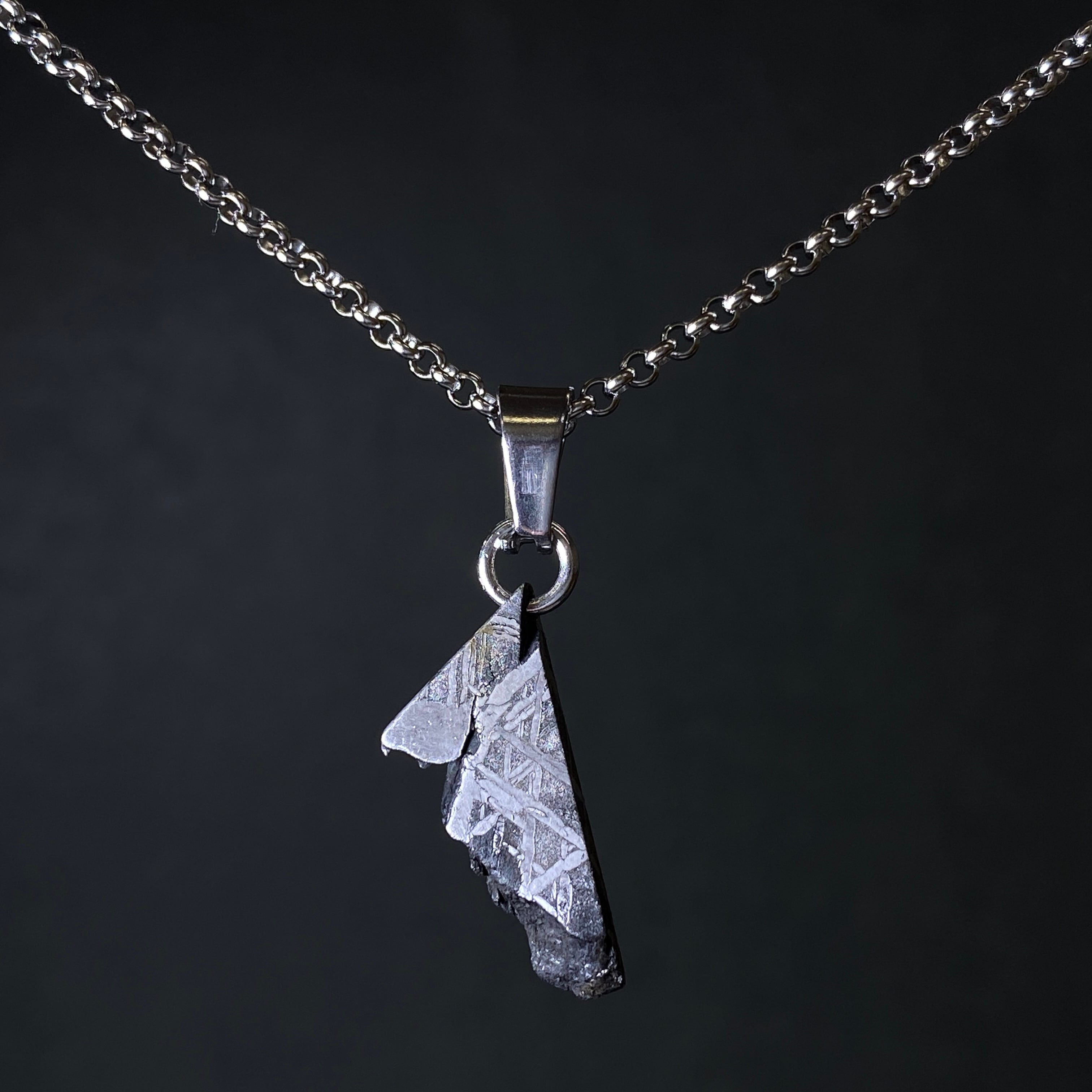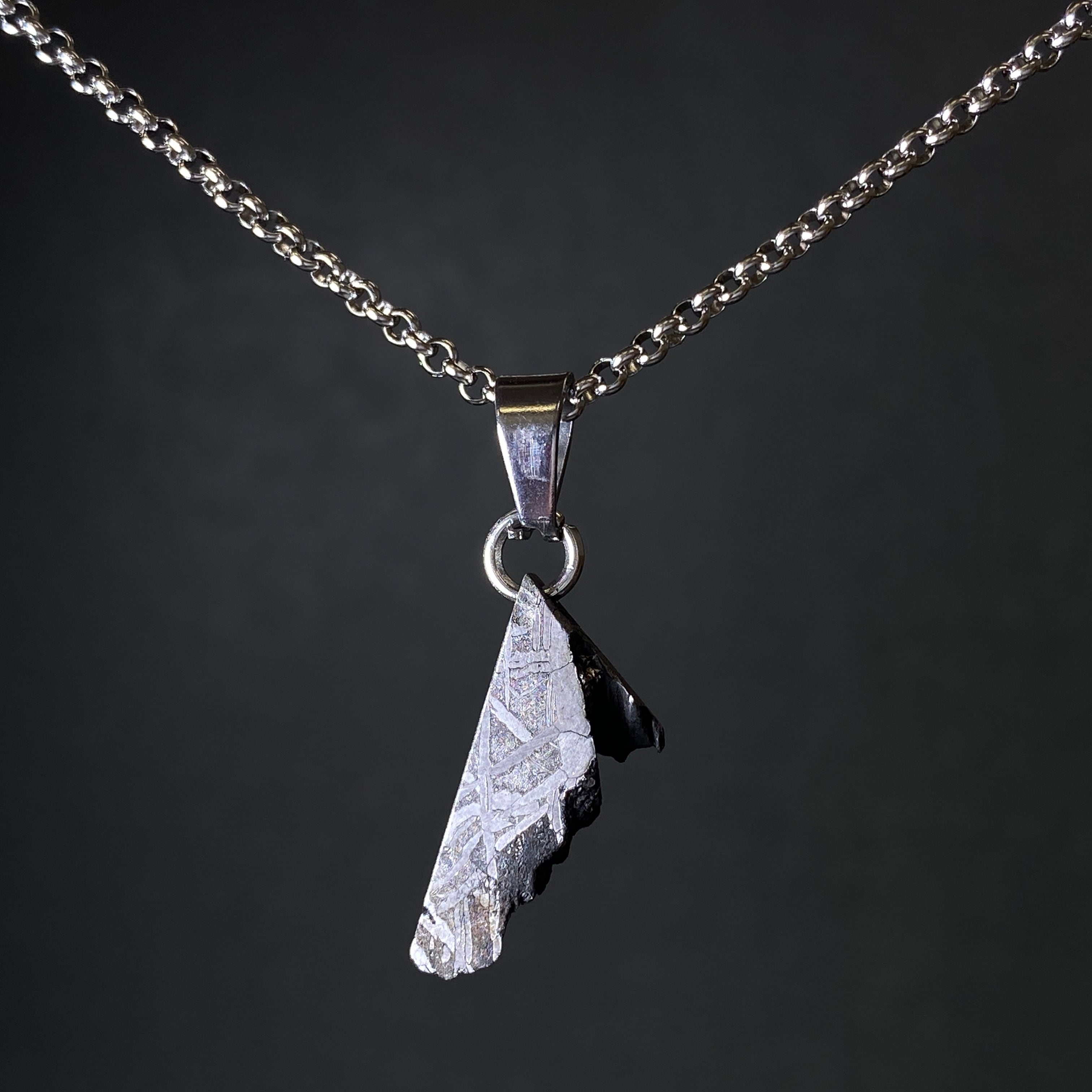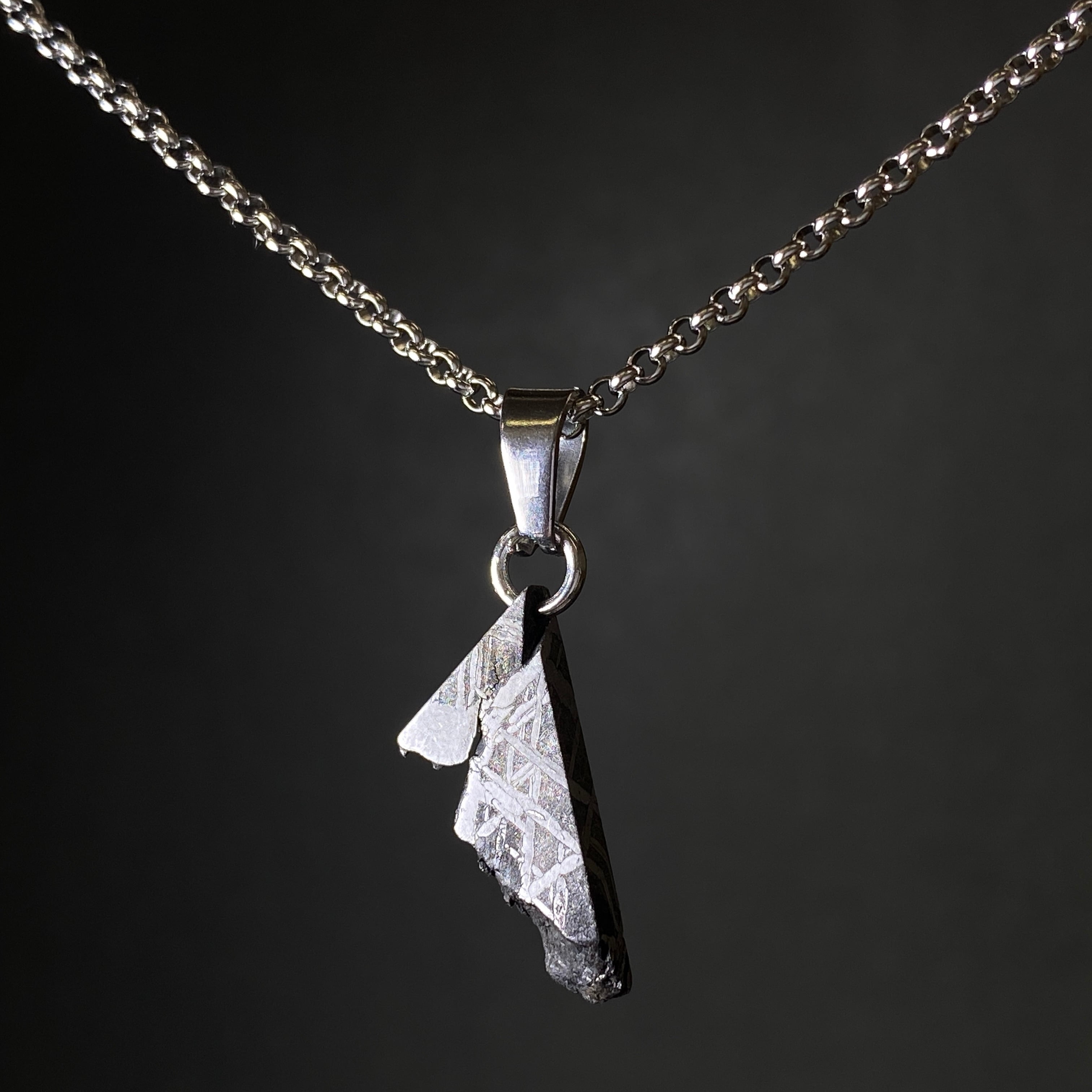 1968年にフランスで発見された隕石です。珍しいヨーロッパの鉄隕石で、シャンパンやワインに使われるぶどう畑で回収されました。サントーバン隕石の特徴はなんといっても特別な切断面です。独特なウィドマンシュテッテン構造にトロイライトの小結晶、そして異常なまでに大きいシュライバーサイトが見られます。局所的にサビが出るのも特徴的で、ウィドマンシュテッテン構造に沿って四角く出るのはこの隕石だけです。側面に多いトロイライトも同様に四角くなっています。どんな隕石とも似つかない特別な隕石であることは間違いありません。