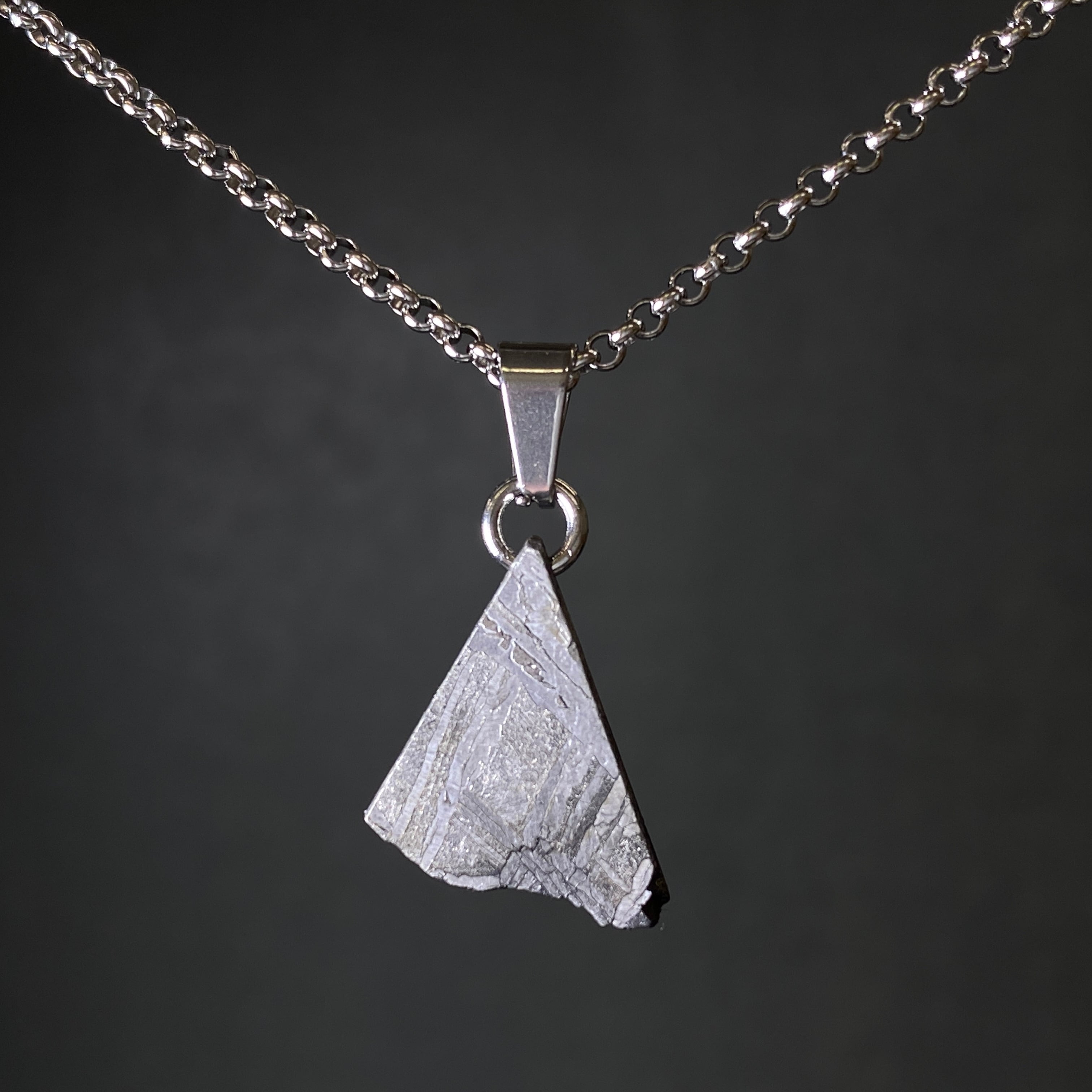 1968年にフランスで発見された隕石です。珍しいヨーロッパの鉄隕石で、シャンパンやワインに使われるぶどう畑で回収されました。サントーバン隕石の特徴はなんといっても特別な切断面です。独特なウィドマンシュテッテン構造にトロイライトの小結晶、そして異常なまでに大きいシュライバーサイトが見られます。局所的にサビが出るのも特徴的で、ウィドマンシュテッテン構造に沿って四角く出るのはこの隕石だけです。側面に多いトロイライトも同様に四角くなっています。どんな隕石とも似つかない特別な隕石であることは間違いありません。