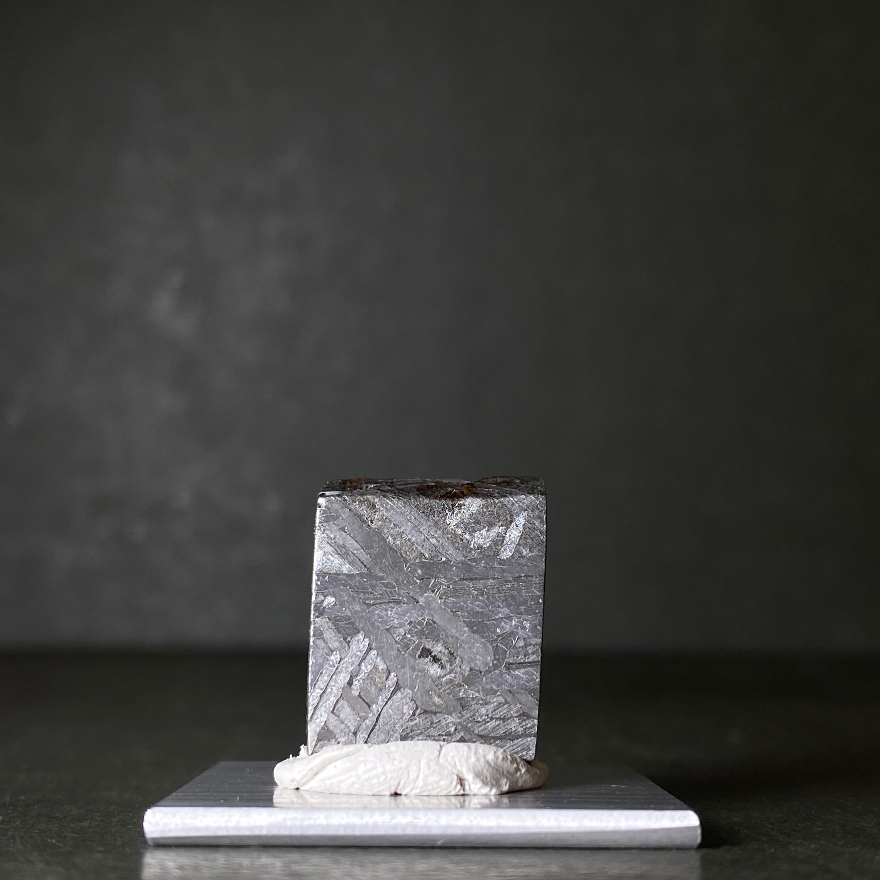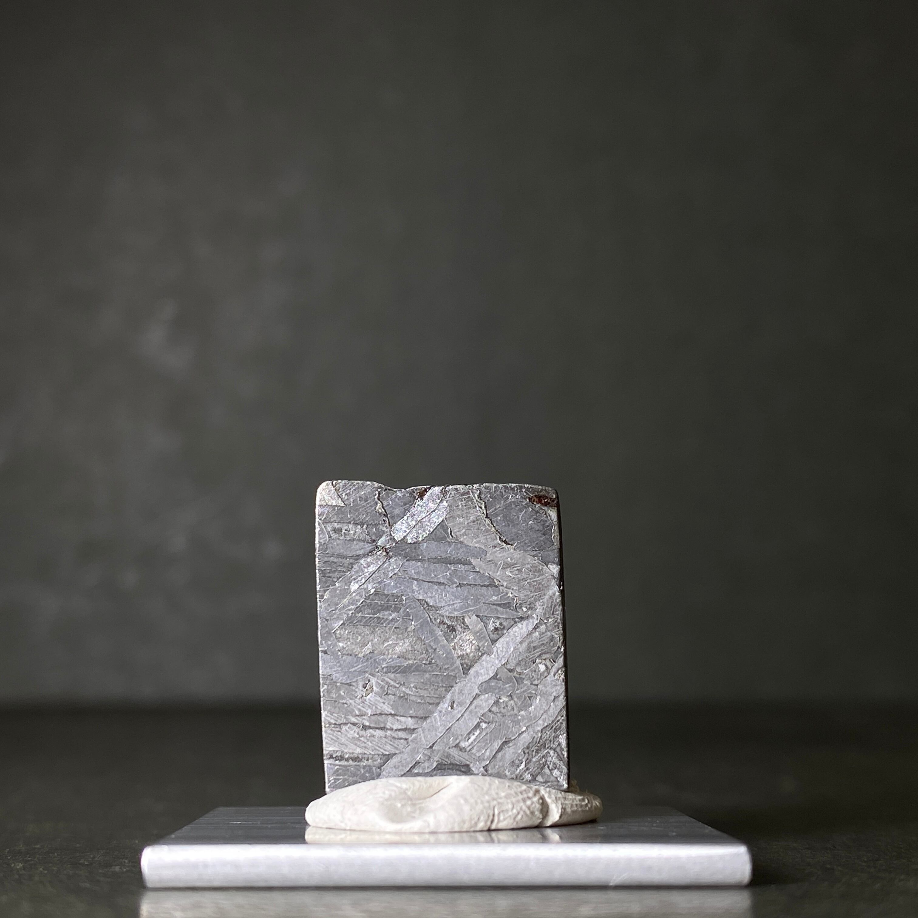 鉄隕石の成分は主に鉄とニッケルです。多湿な場所は避けてください。サビ発生の原因となります。また、サビが出てきてしまった場合は、100円ショップなどに売っているクエン酸に3分ほど浸けておくといいです。その後はよく水気を切って、隕石の中の細かな水分を抜くために無水エタノールに3分ほど浸けて、綺麗に拭き取るとサビが出にくくなります。更に、刃物用の油を表面に塗ることでコーティングの役割を果たしますから、よりサビが出にくくなります。隕石の成分上、最善の保管方法をしていてもサビが出てしまう場合がありますので、予めご了承ください。