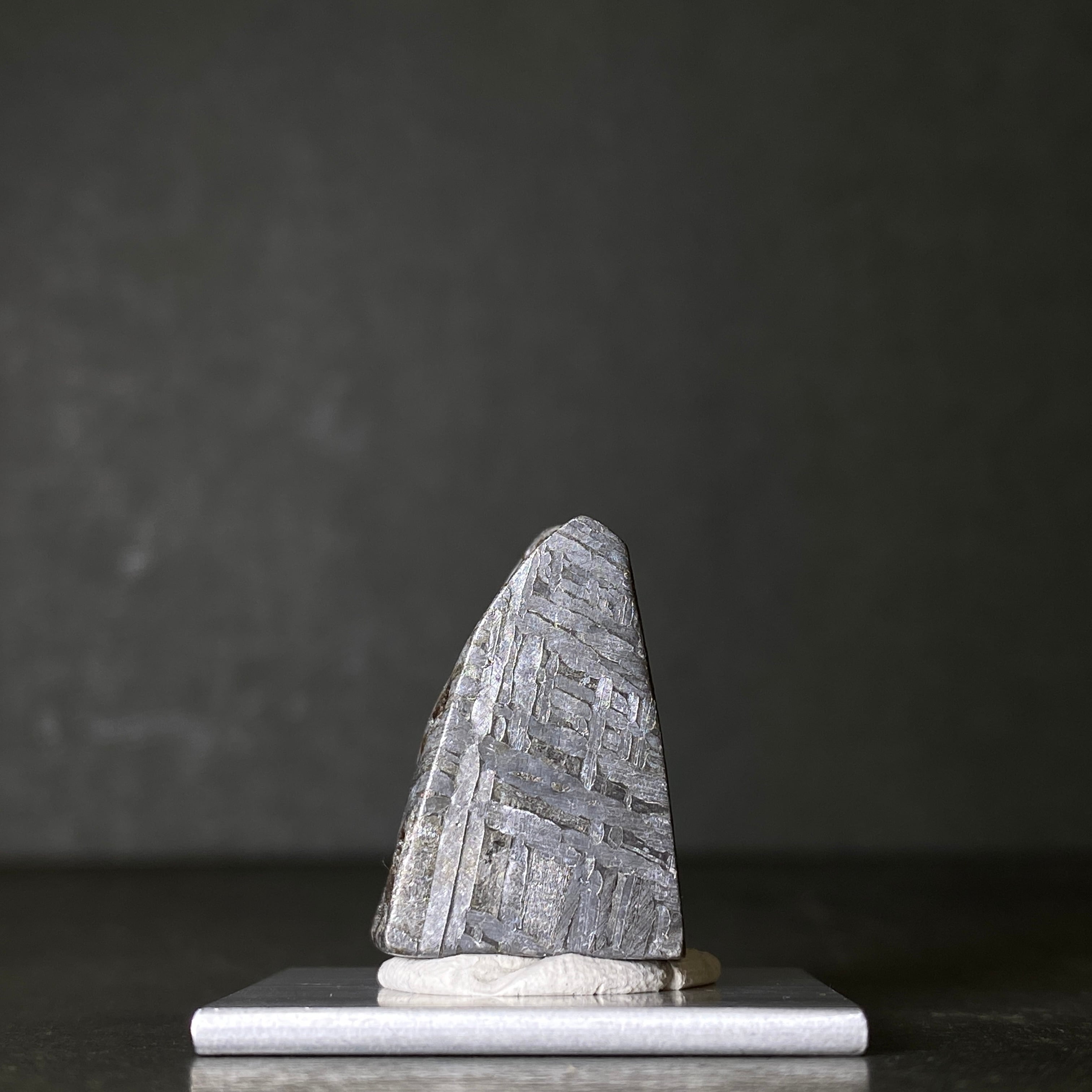 鉄隕石の成分は主に鉄とニッケルです。多湿な場所は避けてください。サビ発生の原因となります。また、サビが出てきてしまった場合は、100円ショップなどに売っているクエン酸に3分ほど浸けておくといいです。その後はよく水気を切って、隕石の中の細かな水分を抜くために無水エタノールに3分ほど浸けて、綺麗に拭き取るとサビが出にくくなります。更に、刃物用の油を表面に塗ることでコーティングの役割を果たしますから、よりサビが出にくくなります。隕石の成分上、最善の保管方法をしていてもサビが出てしまう場合がありますので、予めご了承ください。