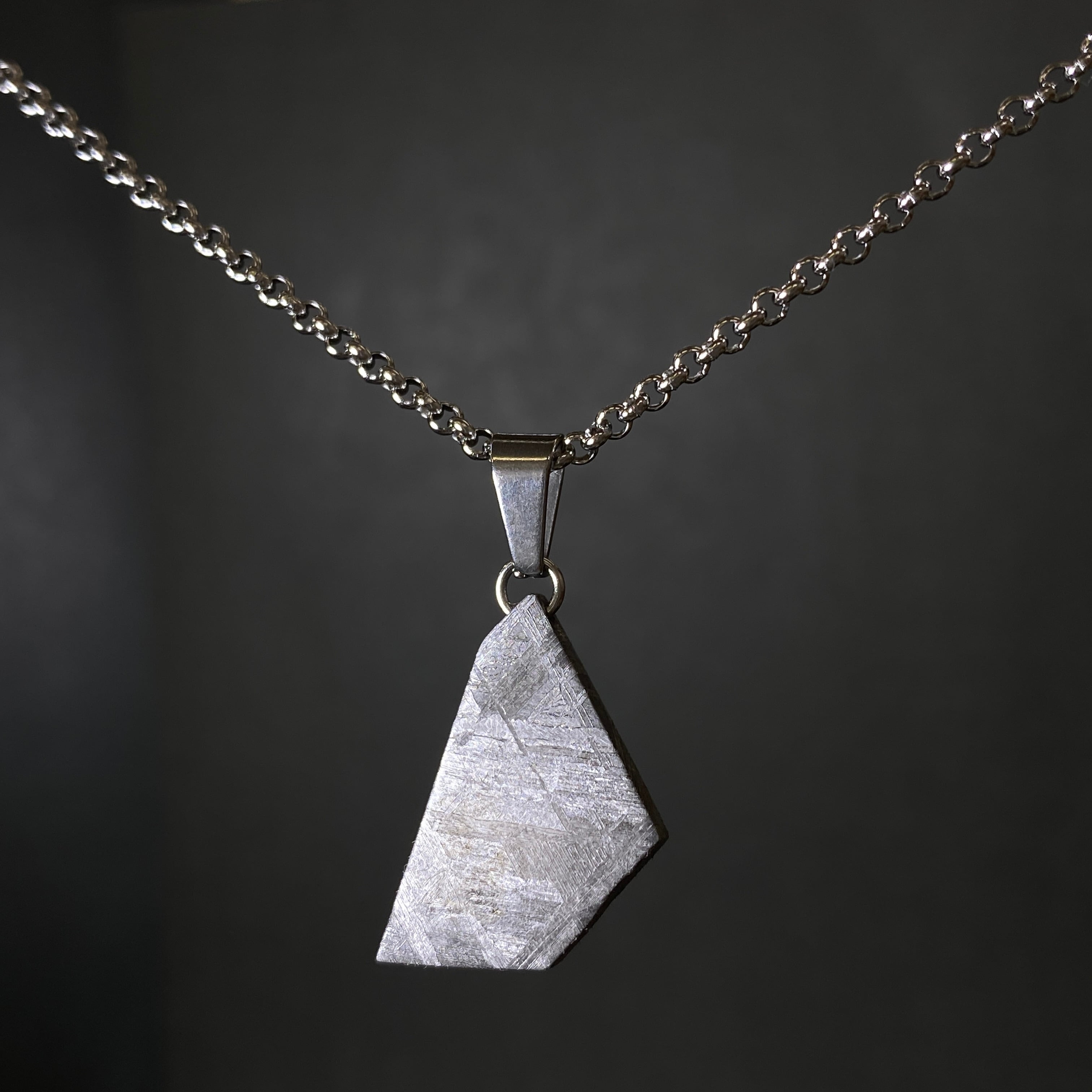 1906年にスウェーデンで発見された隕石です。地球に落ちてから3回以上の氷河期を迎えていたことが最近の研究で分かったようです。落ちた場所が北極に近く、回収が難しいと言われております。ギベオン隕石と似ている模様が出るのが特徴です。どこの面を切っても安定的なウィドマンシュテッテン構造が出るので、ビーズや大量生産品に向いている隕石です。一般的にはメッキ処理され、ギベオン隕石と売られていることが多く、専門家でも見極めが難しい隕石になります。