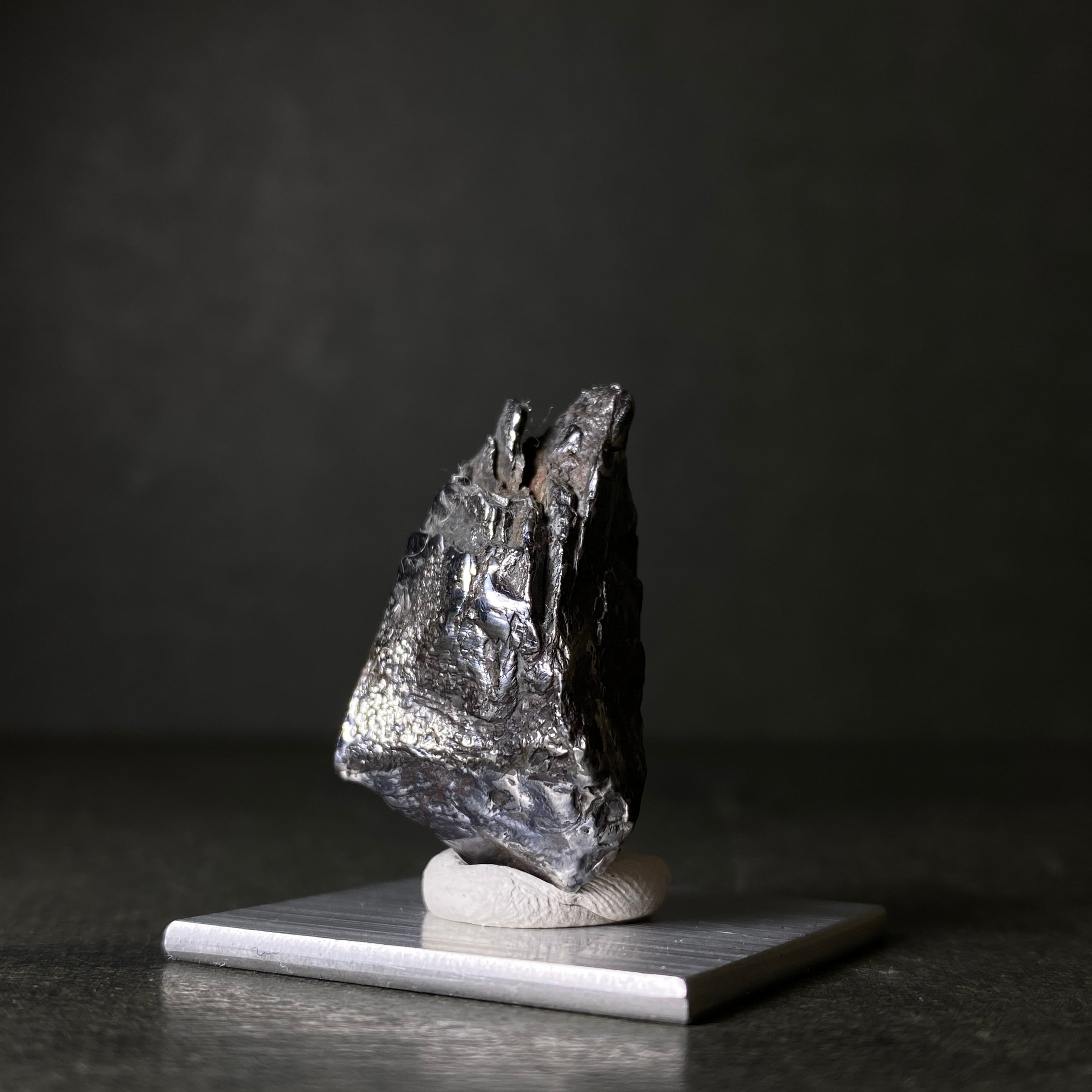 1913年にロシアで発見された隕石です。アタキサイトという種類で、ウィドマンシュテッテン構造やノイマンラインが出ない分類の鉄隕石です。切断されたチンガーのスライス品を研磨すると、不均一な鏡のような表面が出来るのが特徴的です。