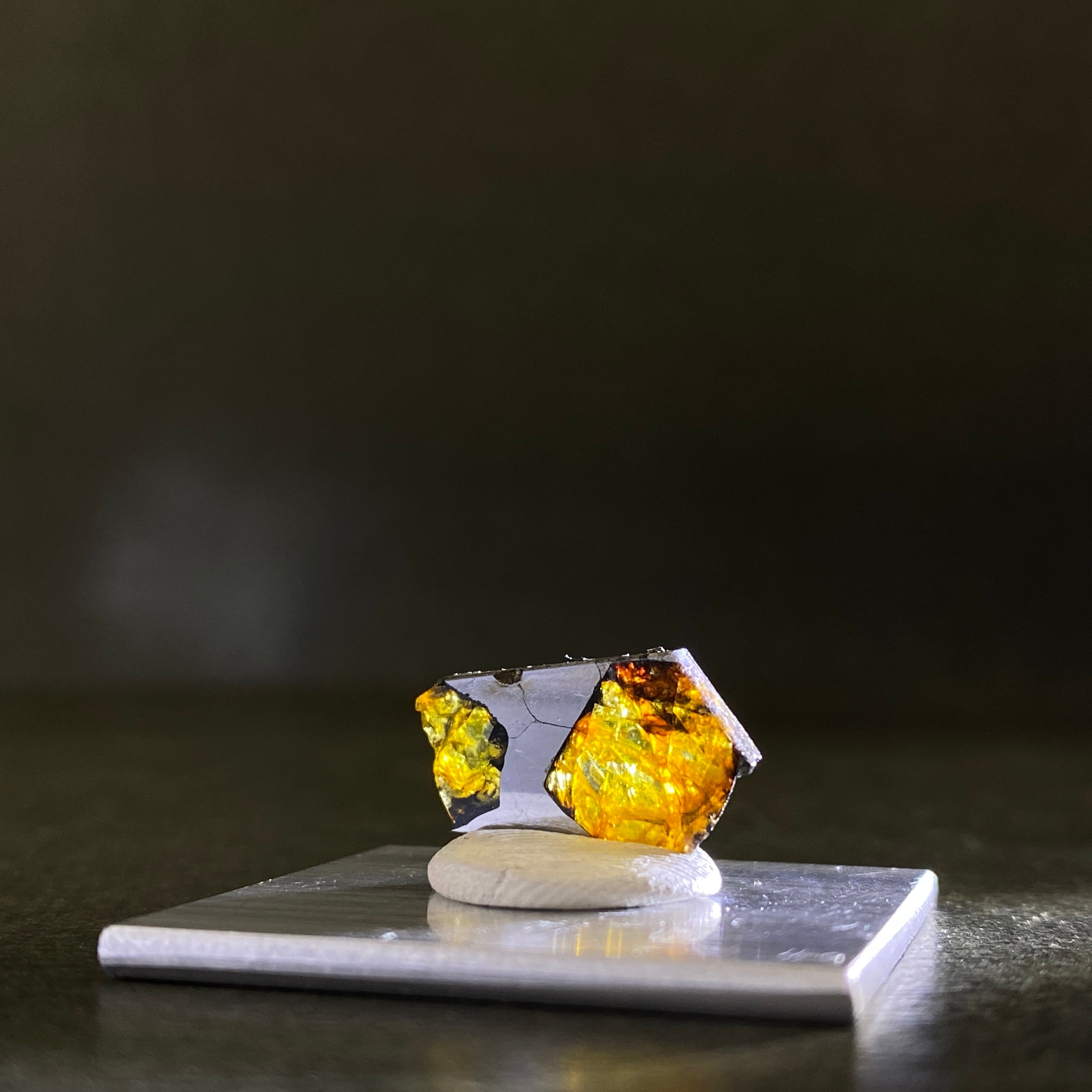 1951年にアルゼンチンで回収された石鉄隕石(パラサイト隕石)です。オリーブ色のカンラン石が特徴的で、大きさ、透明度ともに最高クラス。更にサビにも強いので、コレクターから強い人気を集めています。手放す人が少ないため入手困難な隕石で、イミラックよりも高価な隕石です。