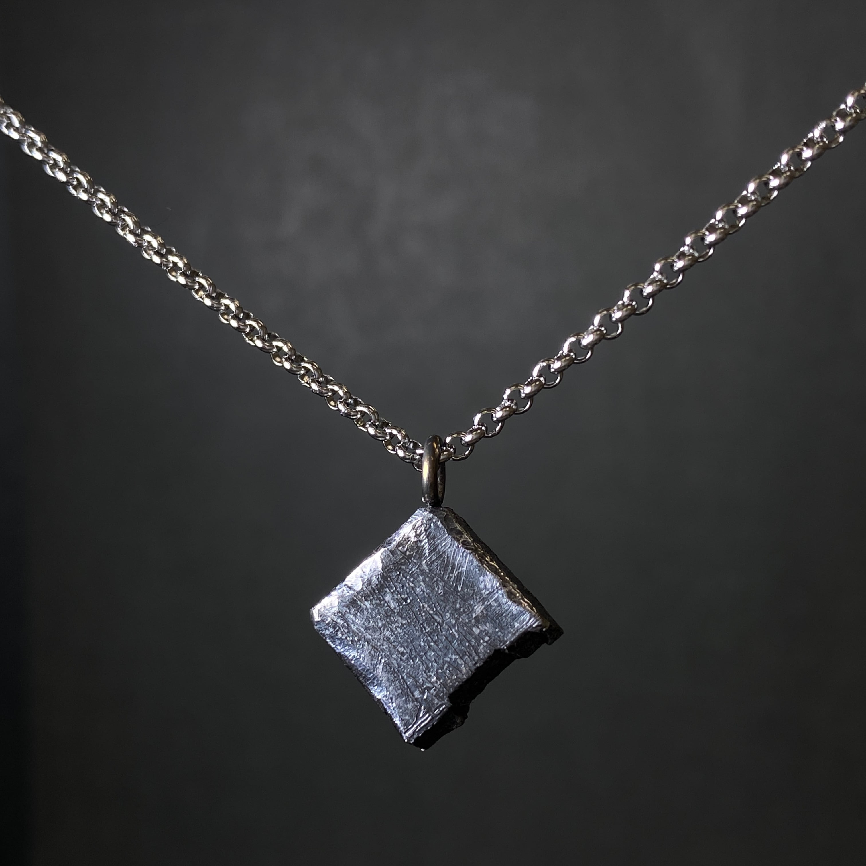 1906年にスウェーデンで発見された隕石です。地球に落ちてから3回以上の氷河期を迎えていたことが最近の研究で分かったようです。落ちた場所が北極に近く、回収が難しいと言われております。ギベオン隕石と似ている模様が出るのが特徴です。どこの面を切っても安定的なウィドマンシュテッテン構造が出るので、ビーズや大量生産品に向いている隕石です。一般的にはメッキ処理され、ギベオン隕石と売られていることが多く、専門家でも見極めが難しい隕石になります。