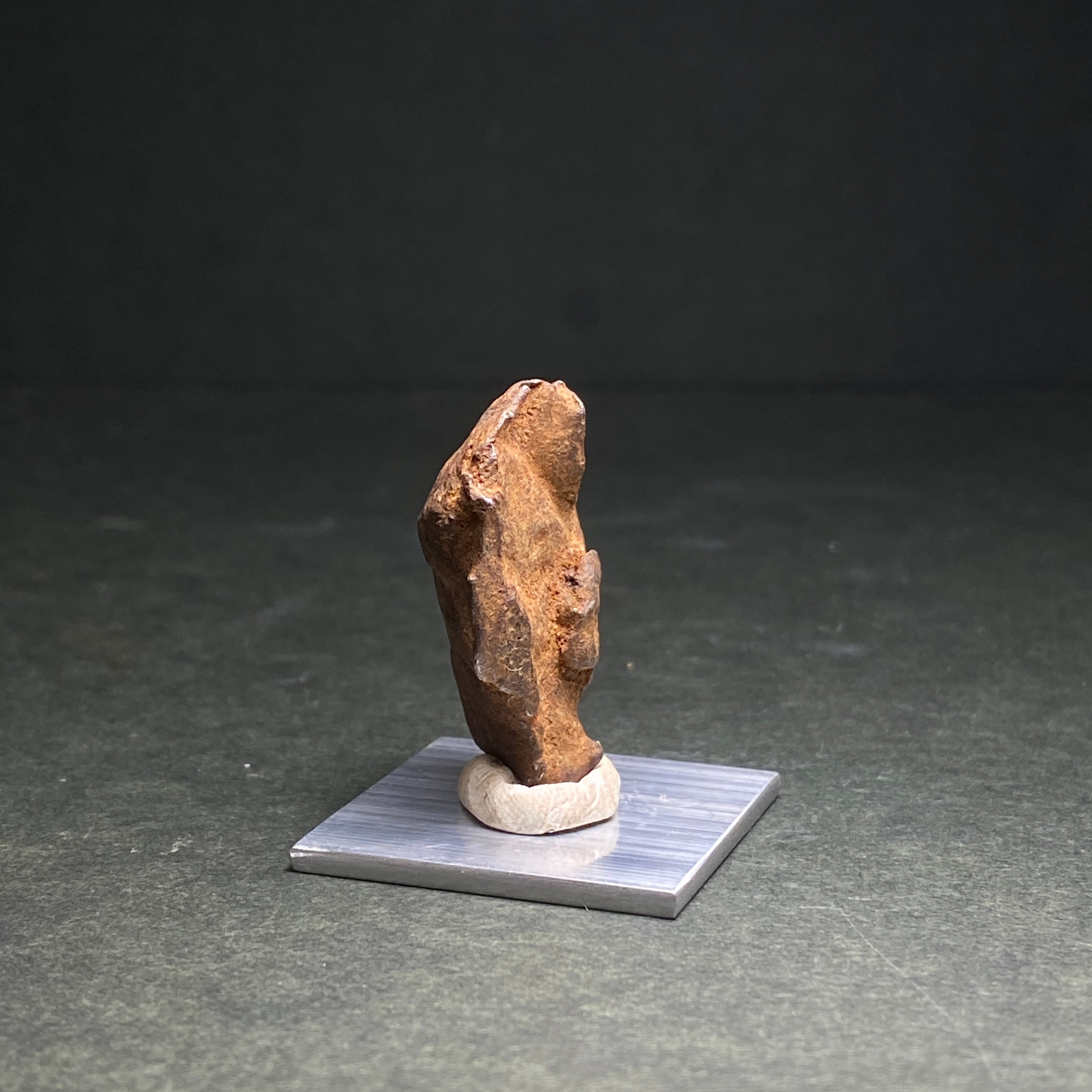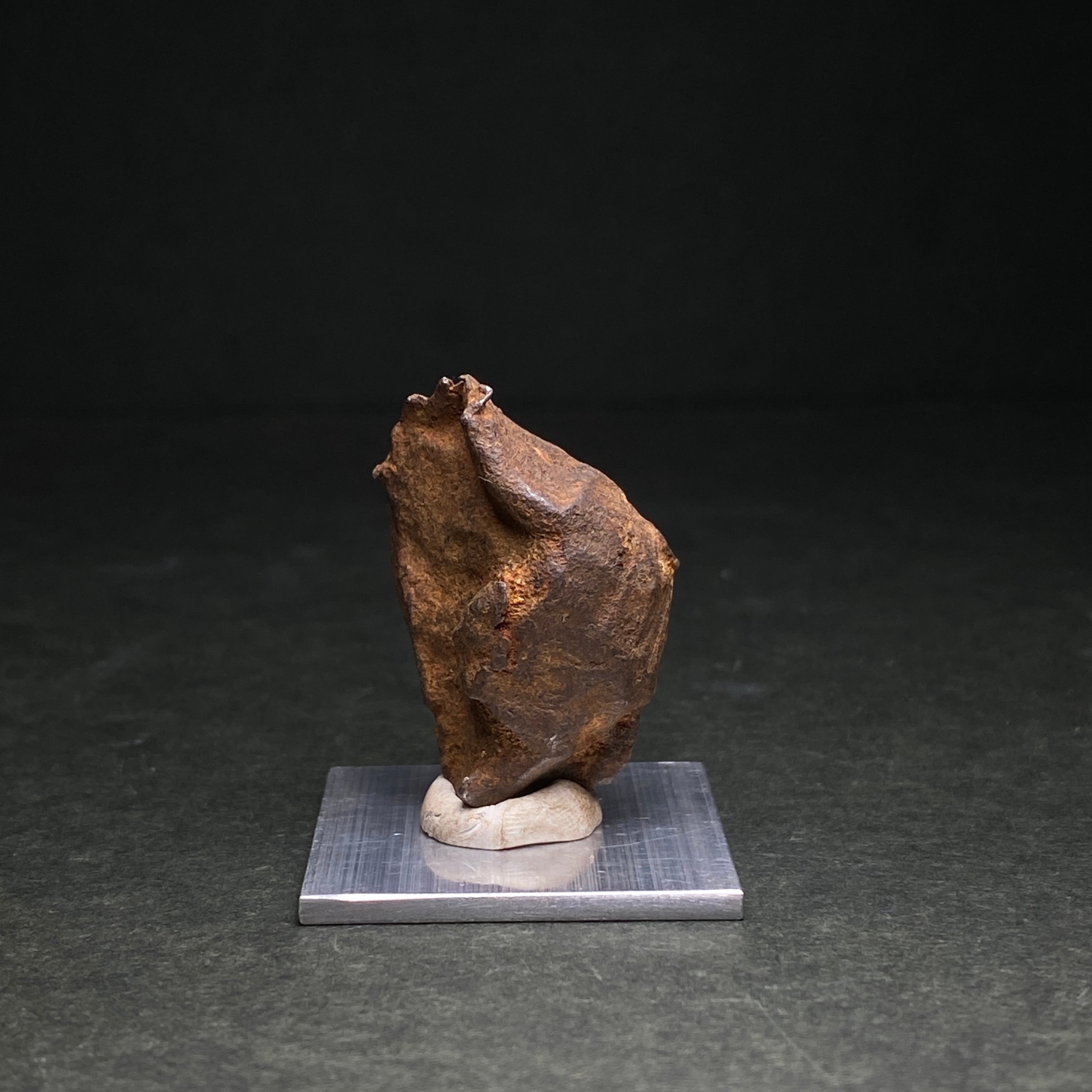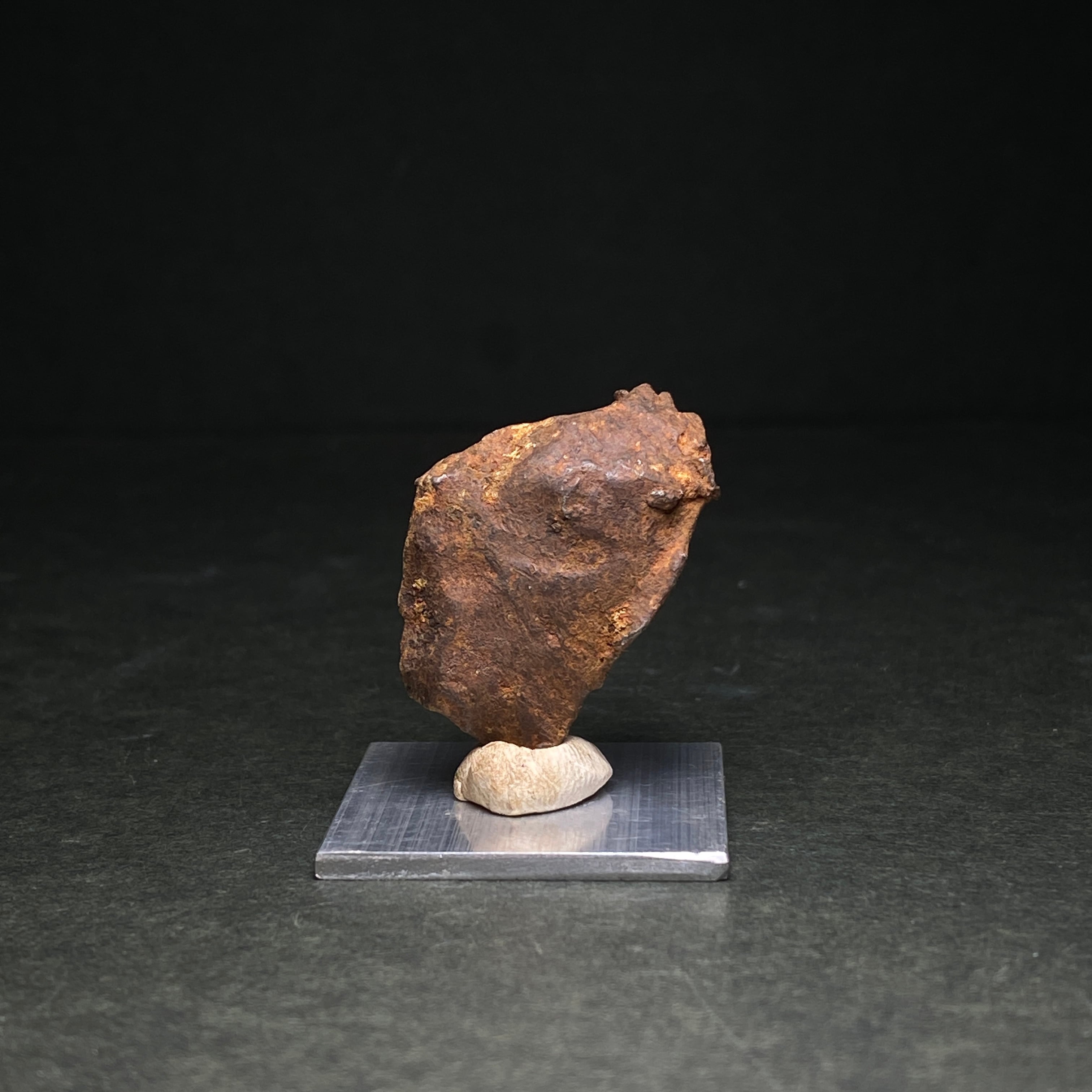 2009年にエジプトで発見された隕石です。当時、ミラノ自然史博物館の元学芸員であるイタリアの科学者ヴィンチェンツォデミケーレがその隕石クレーターを発見しました。彼らによって合計800キロの隕石が回収され、その多くはカイロのエジプト地質学博物館に展示されているようです。50世紀もののあいだ砂漠の奥深くにいたためか、他の隕石と比べてサビにくいです。ゲベルカミル隕石はアタキサイトに分類され、酸処理してもウィドマンシュテッテン構造が出ない隕石です。一般的にスライス品は鏡面加工されており、原石よりも高価になっています。原石はどの隕石にも無い表皮をしています。それは爬虫類の表皮や亀の甲羅のような感じで、のっぺりとしているのが特徴的です。