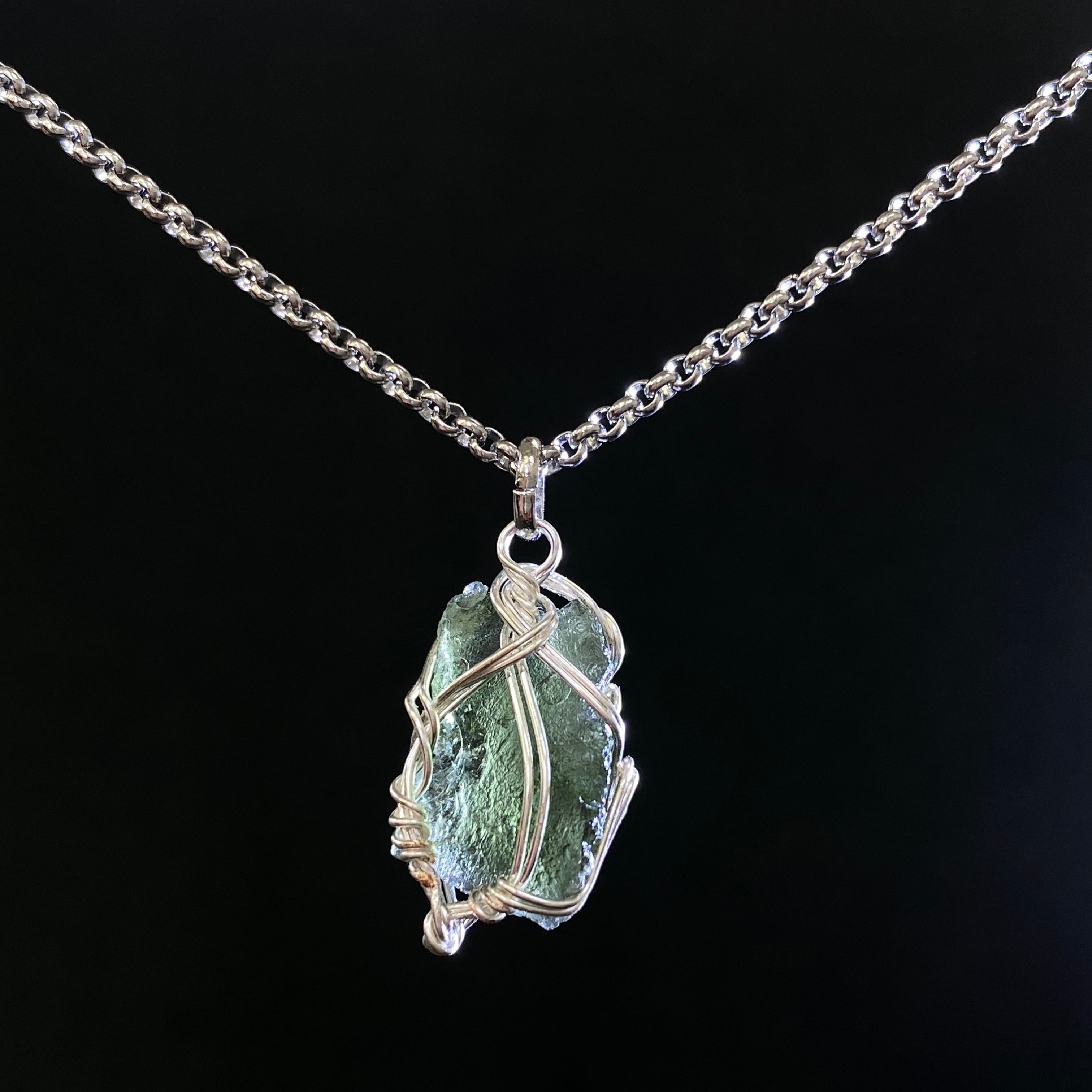 チェコで回収されたインパクトガラスです。近年、高騰し続けている隕石の1つで、形の綺麗なモルダバイトは年々少なくなっております。人気(需要)と在庫(供給)のバランスが崩れており、回収地の本場チェコでも偽物が量産されているほどです。本物のモルダバイトを手にしたいのであれば、安価で販売されているモルダバイトには手を出さないことをオススメします。ビーズのブレスレットや研磨された綺麗なモルダバイトも同様です。モルダバイトを購入する時にはご注意ください。