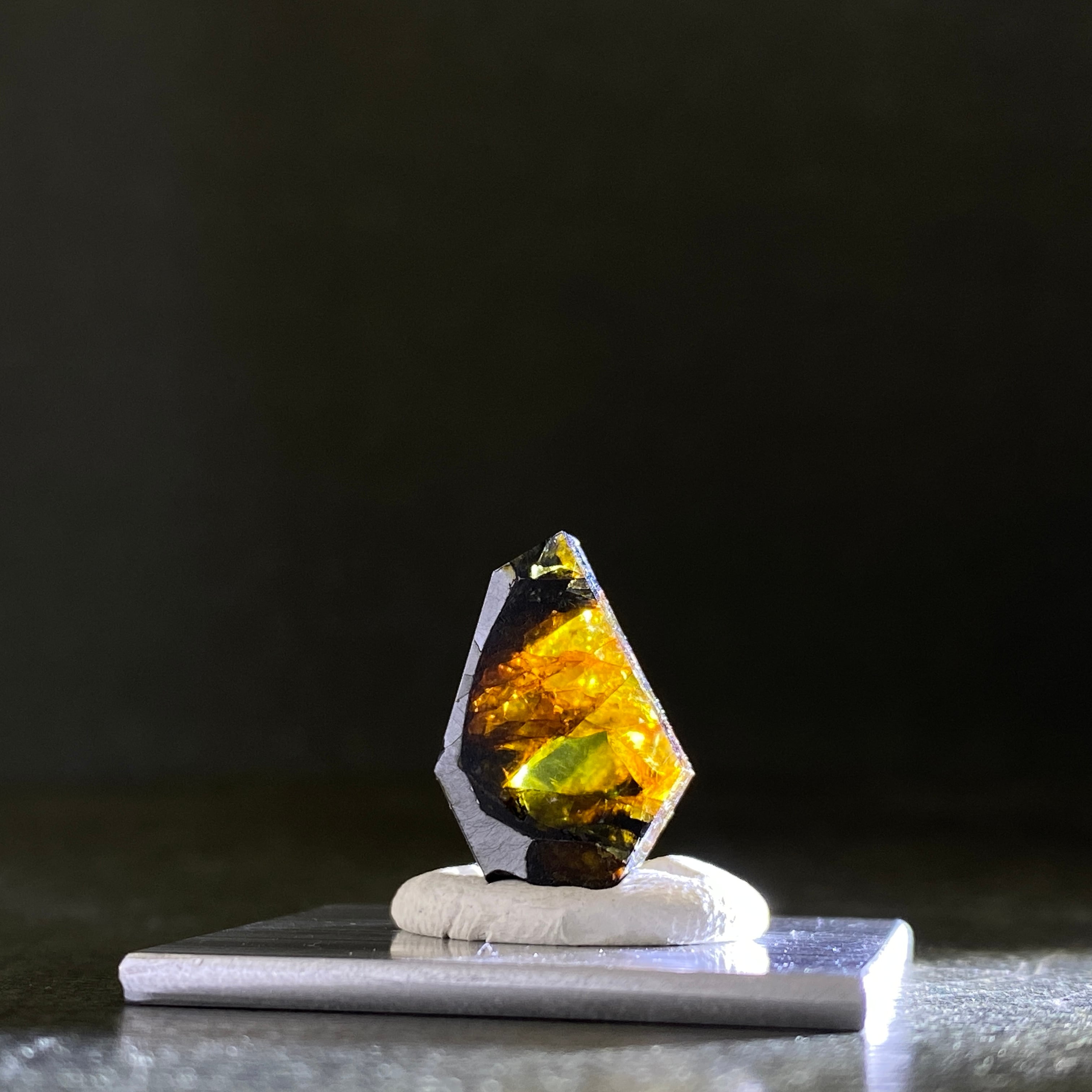 1951年にアルゼンチンで回収された石鉄隕石(パラサイト隕石)です。オリーブ色のカンラン石が特徴的で、大きさ、透明度ともに最高クラス。更にサビにも強いので、コレクターから強い人気を集めています。手放す人が少ないため入手困難な隕石で、イミラックよりも高価な隕石です。