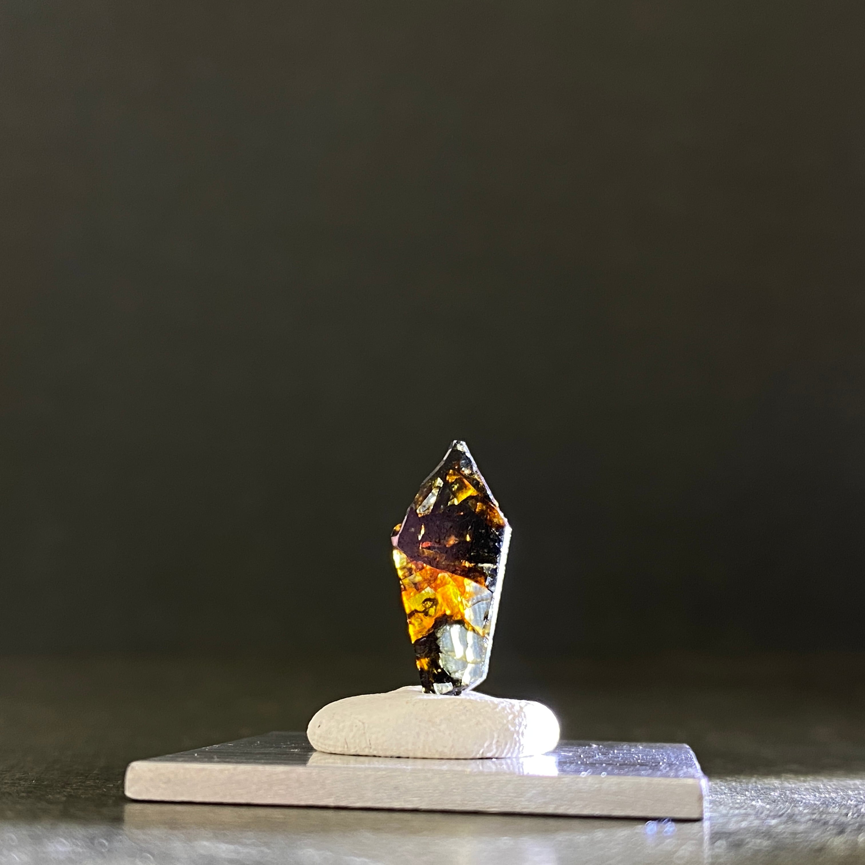 1951年にアルゼンチンで回収された石鉄隕石(パラサイト隕石)です。オリーブ色のカンラン石が特徴的で、大きさ、透明度ともに最高クラス。更にサビにも強いので、コレクターから強い人気を集めています。手放す人が少ないため入手困難な隕石で、イミラックよりも高価な隕石です。