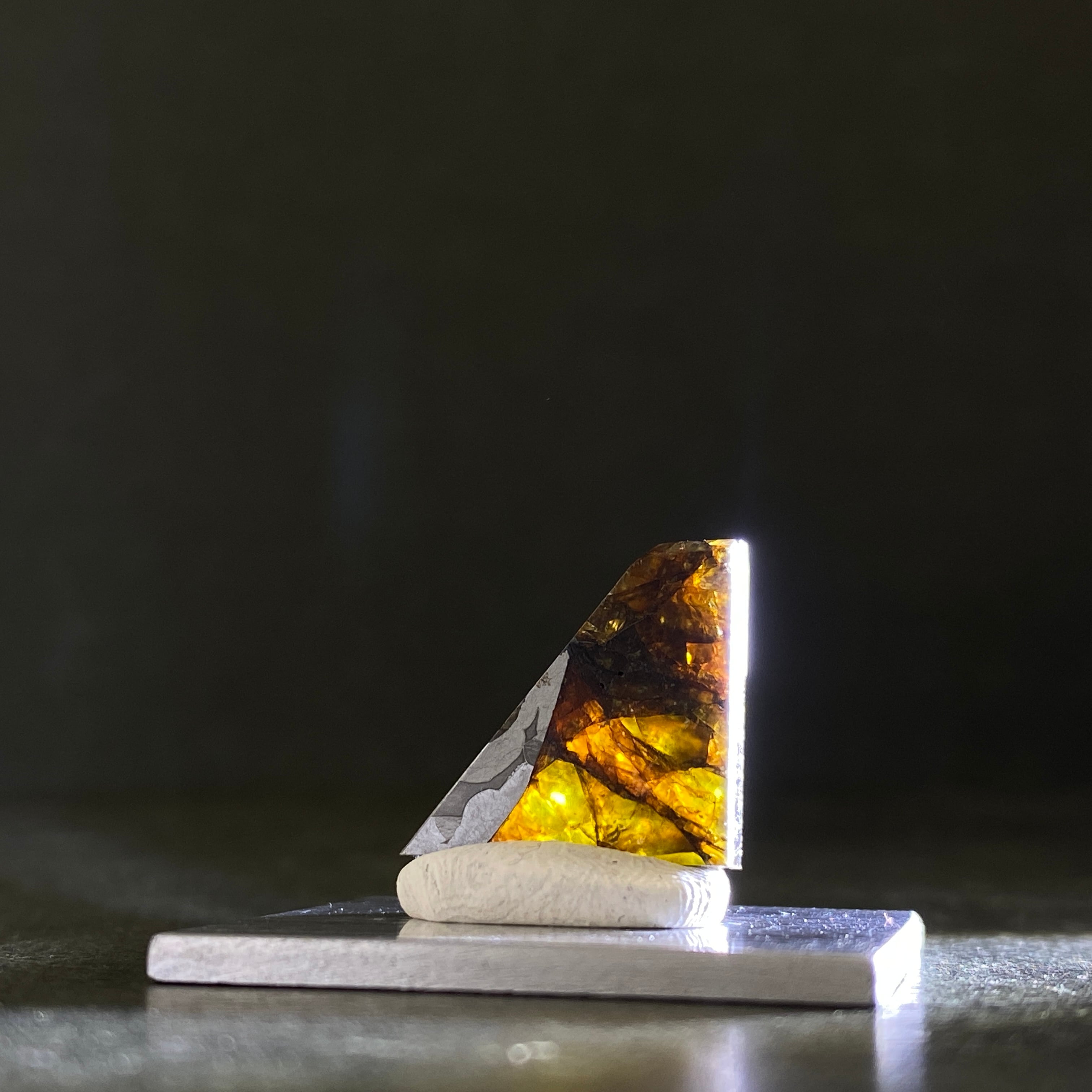 1951年にアルゼンチンで回収された石鉄隕石(パラサイト隕石)です。オリーブ色のカンラン石が特徴的で、大きさ、透明度ともに最高クラス。更にサビにも強いので、コレクターから強い人気を集めています。手放す人が少ないため入手困難な隕石で、イミラックよりも高価な隕石です。