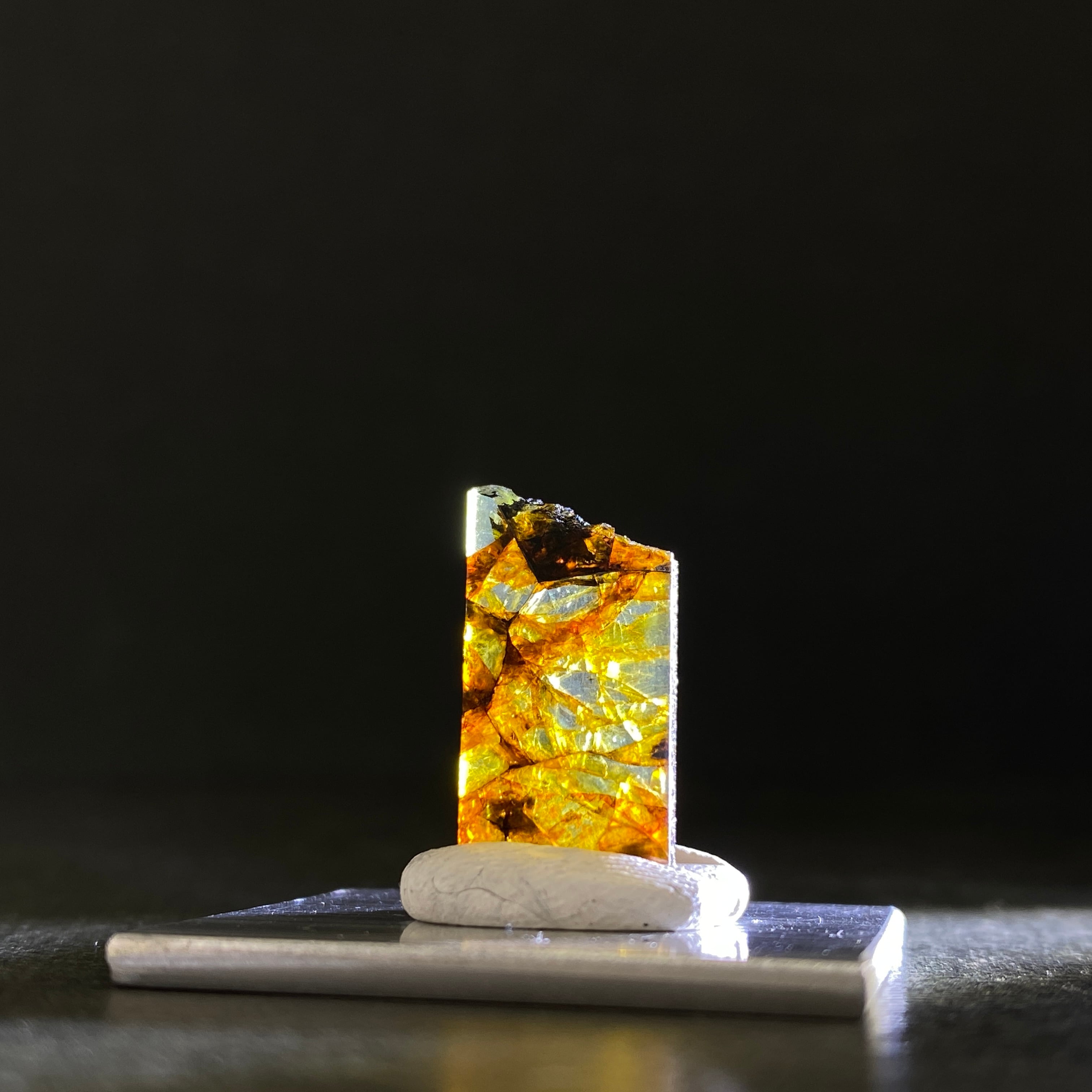 1951年にアルゼンチンで回収された石鉄隕石(パラサイト隕石)です。オリーブ色のカンラン石が特徴的で、大きさ、透明度ともに最高クラス。更にサビにも強いので、コレクターから強い人気を集めています。手放す人が少ないため入手困難な隕石で、イミラックよりも高価な隕石です。