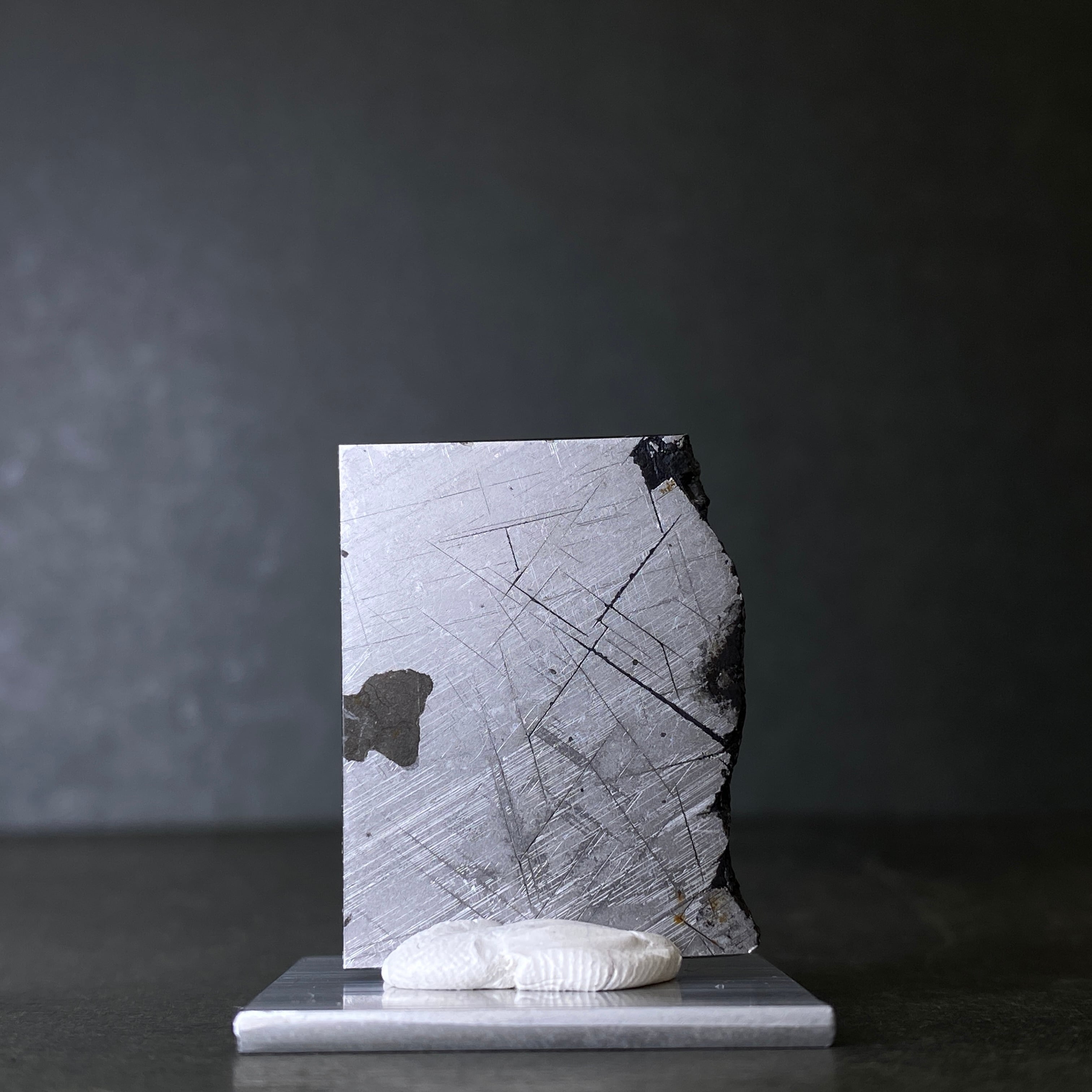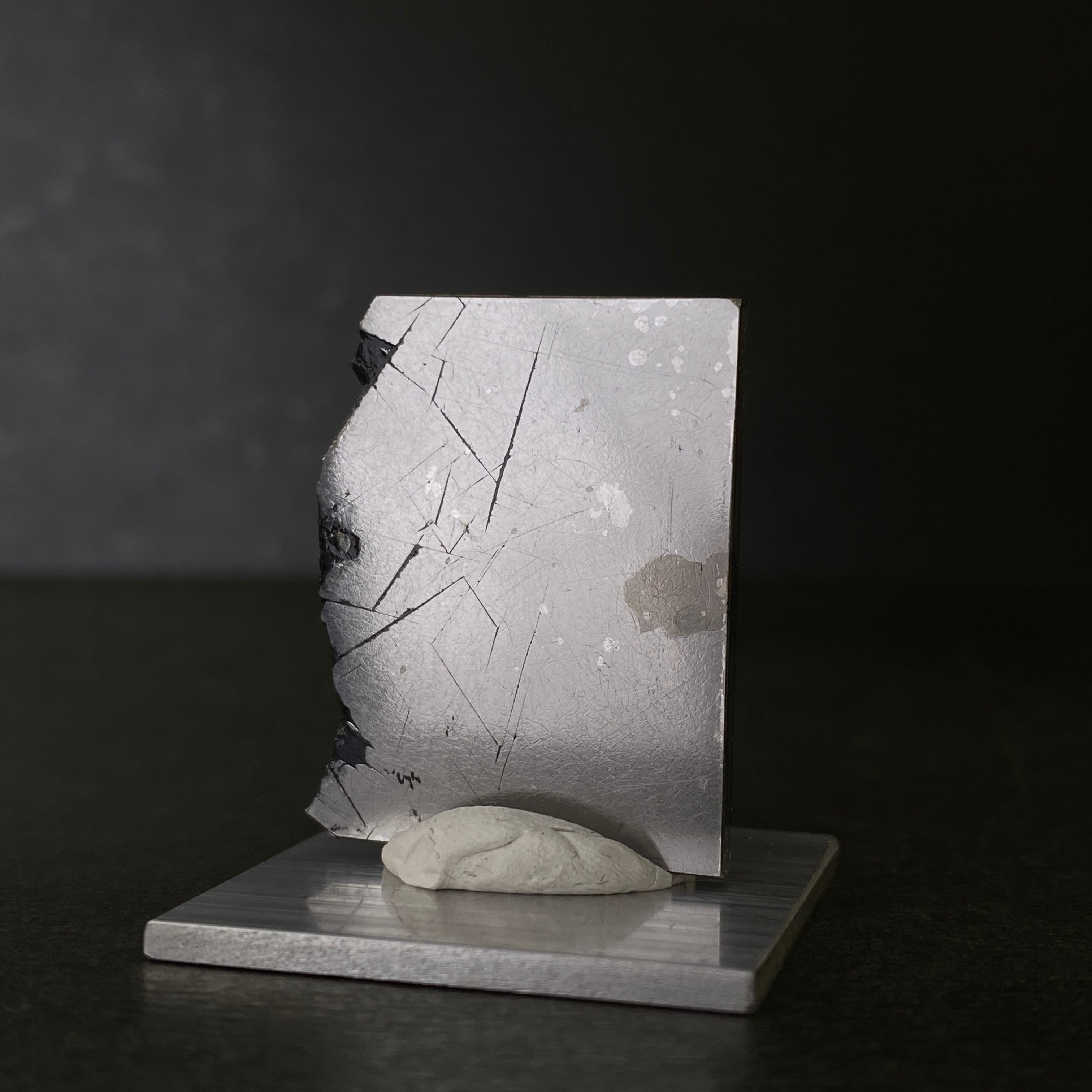 2011年にブラジルで発見された隕石です。50kgの原石1個しか見つかっていません。数が少ないヘキサへドライトに分類され、特有のノイマン線が綺麗にでます。また雪結晶のようなラブダイトが美しいのも特徴です。