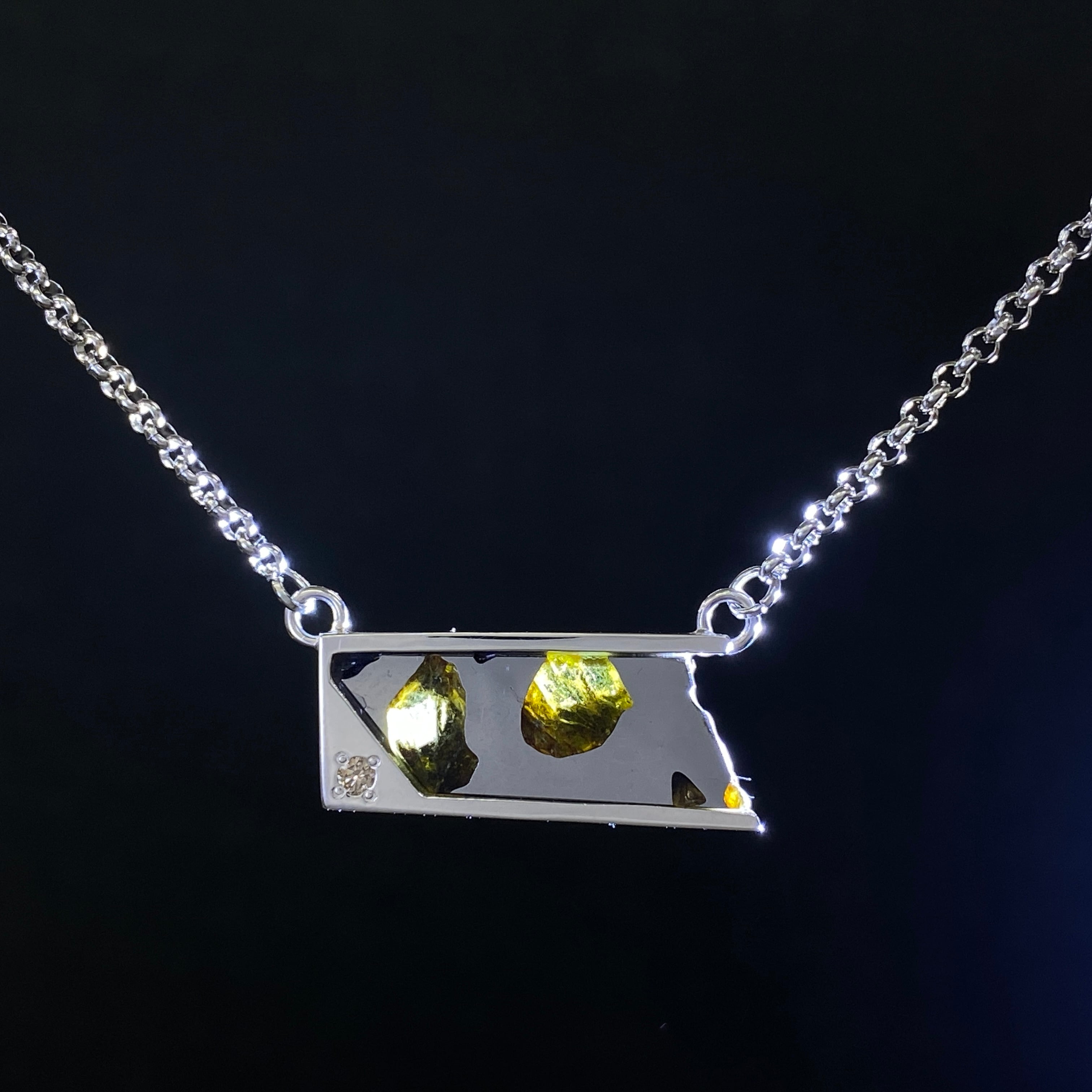 1822年にチリで発見された隕石です。パラサイト隕石自体の回収量は全体の約1%で希少なのですが、イミラックはその中でも希少かつ人気の隕石です。そのカンラン石は大きく、透明度が高いです。イエローグリーンに輝くその様は、宇宙の宝石と呼ばれるほどです。サビにくさも人気の1つです。美しいそのフォルムを美しいまま、いつまでの楽しめる隕石です。