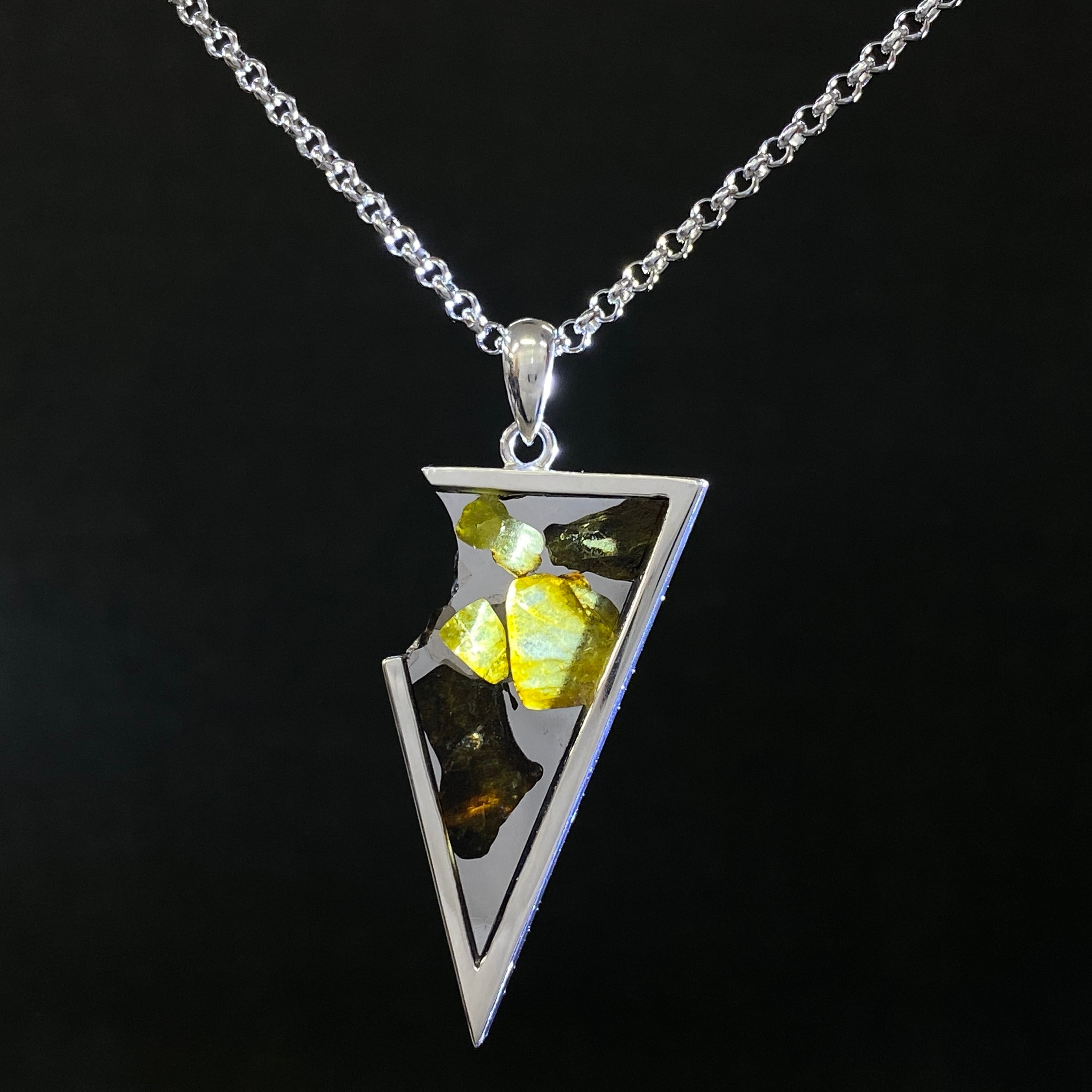 1822年にチリで発見された隕石です。パラサイト隕石自体の回収量は全体の約1%で希少なのですが、イミラックはその中でも希少かつ人気の隕石です。そのカンラン石は大きく、透明度が高いです。イエローグリーンに輝くその様は、宇宙の宝石と呼ばれるほどです。サビにくさも人気の1つです。美しいそのフォルムを美しいまま、いつまでの楽しめる隕石です。