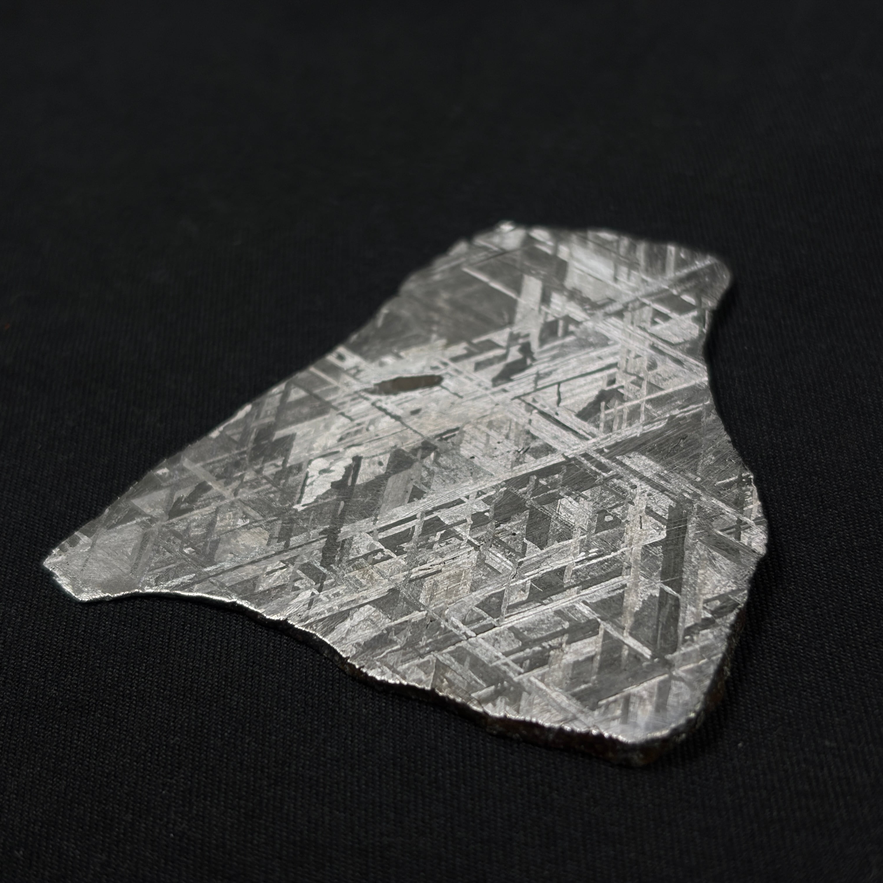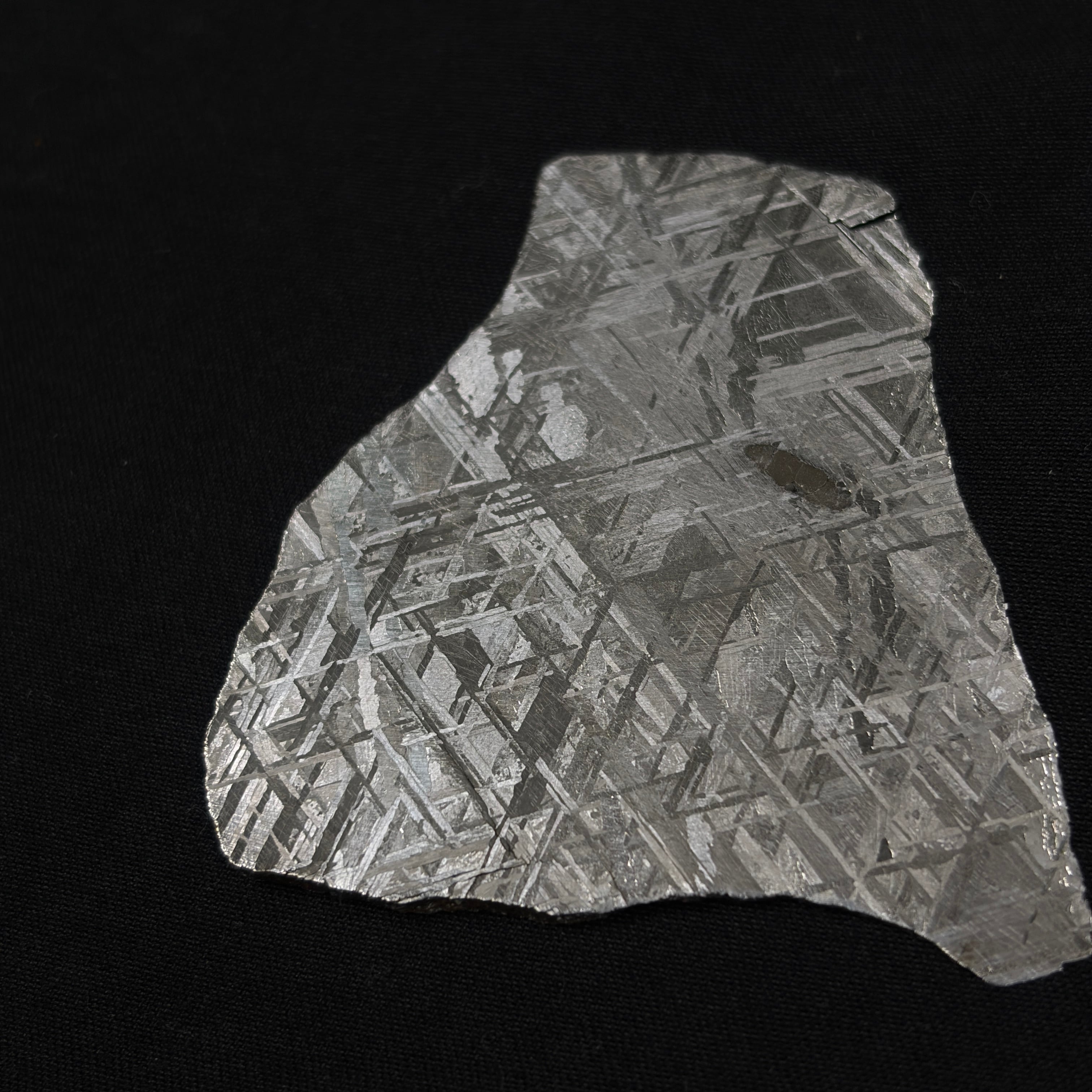 1836年にナミビア共和国で発見された隕石です。美しいウィドマンシュテッテン構造が特徴的で、比較的サビにくい隕石になります。