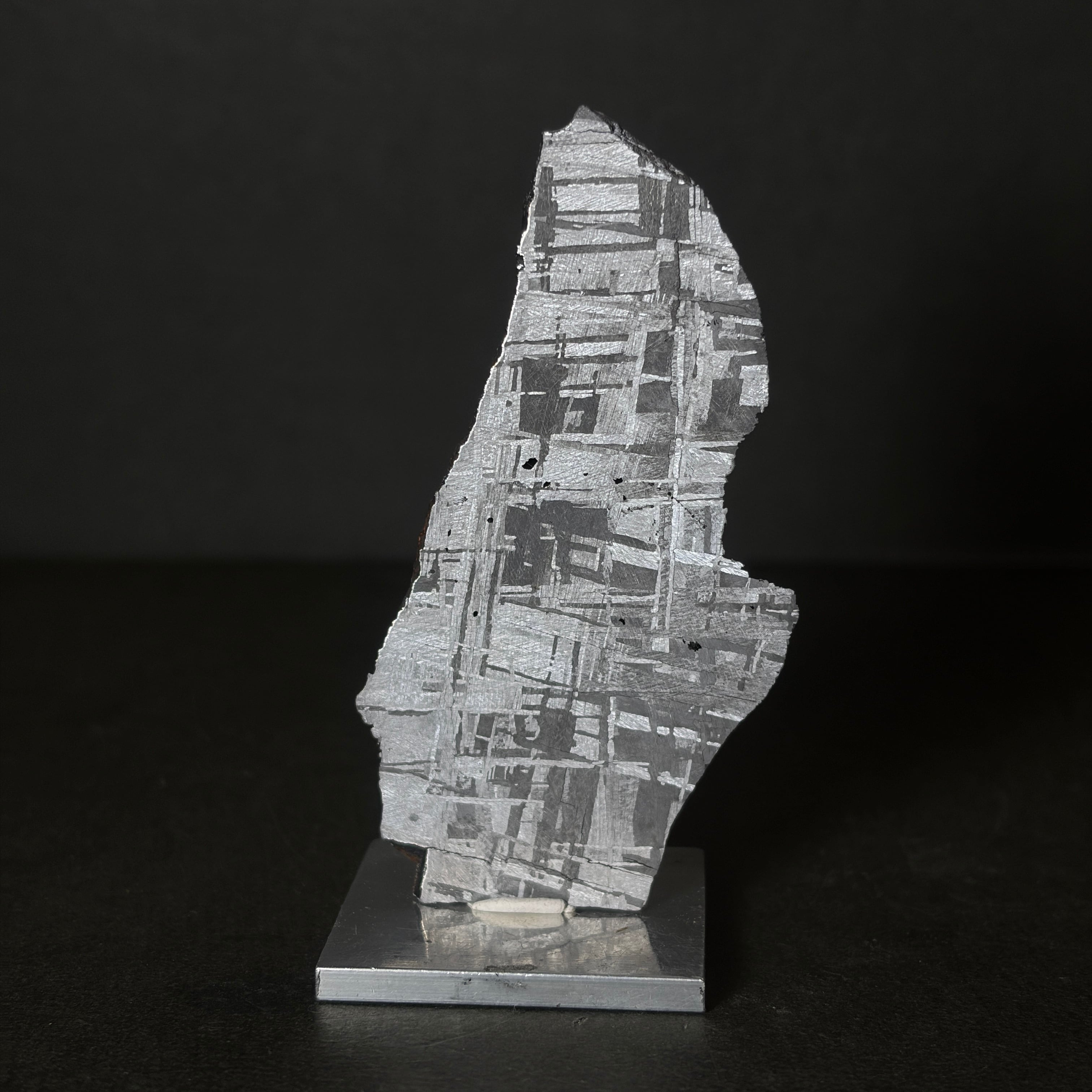 1836年にナミビア共和国で発見された隕石です。美しいウィドマンシュテッテン構造が特徴的で、比較的サビにくい隕石になります。