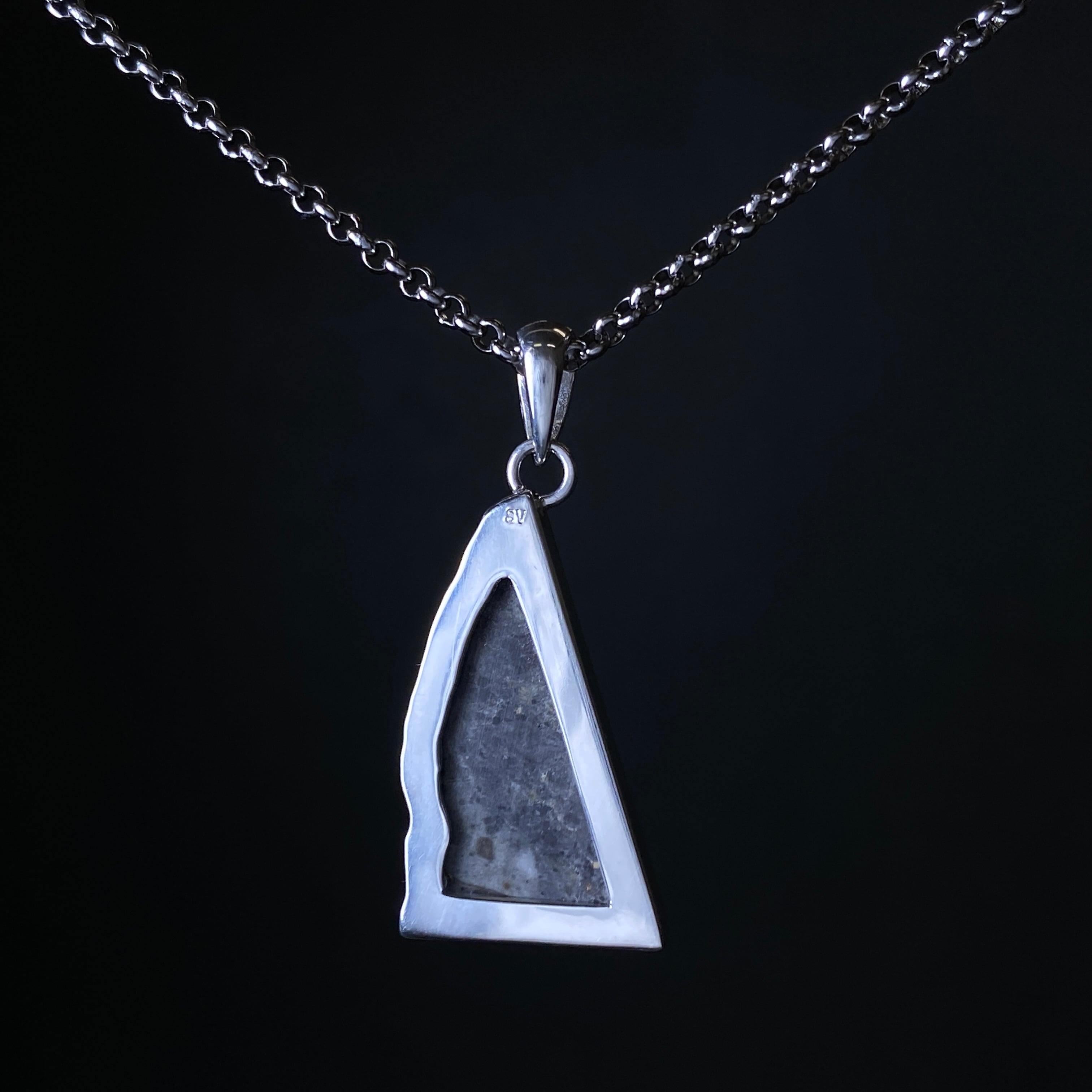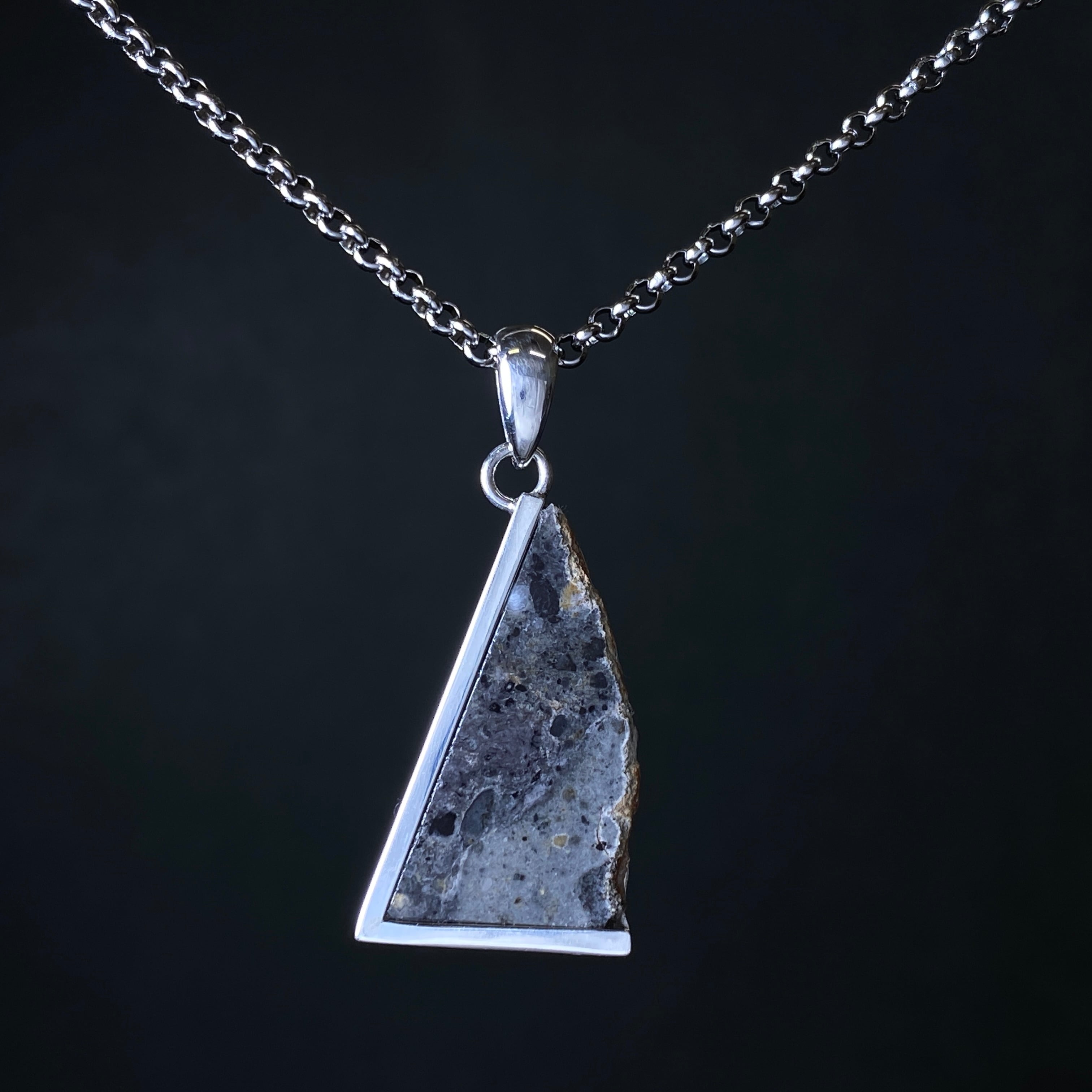 2022年の春にアルジェリアで回収された月の隕石です。惑星などが月に衝突した勢いで欠けた月の一部が宇宙を浮遊します。その欠片は軌道を描き、地球に衝突するまで何百万年も宇宙を浮遊します。なぜ月の隕石という事が分かるのかというと、アポロ計画が関係しています。アポロ計画で月の岩石が地球に持ち運ばれ、その組織構造などをデータ化しました。それにより科学的に月の隕石であると証明することができます。唯一肉眼で見られる隕石なので、世界的に人気のある隕石です。