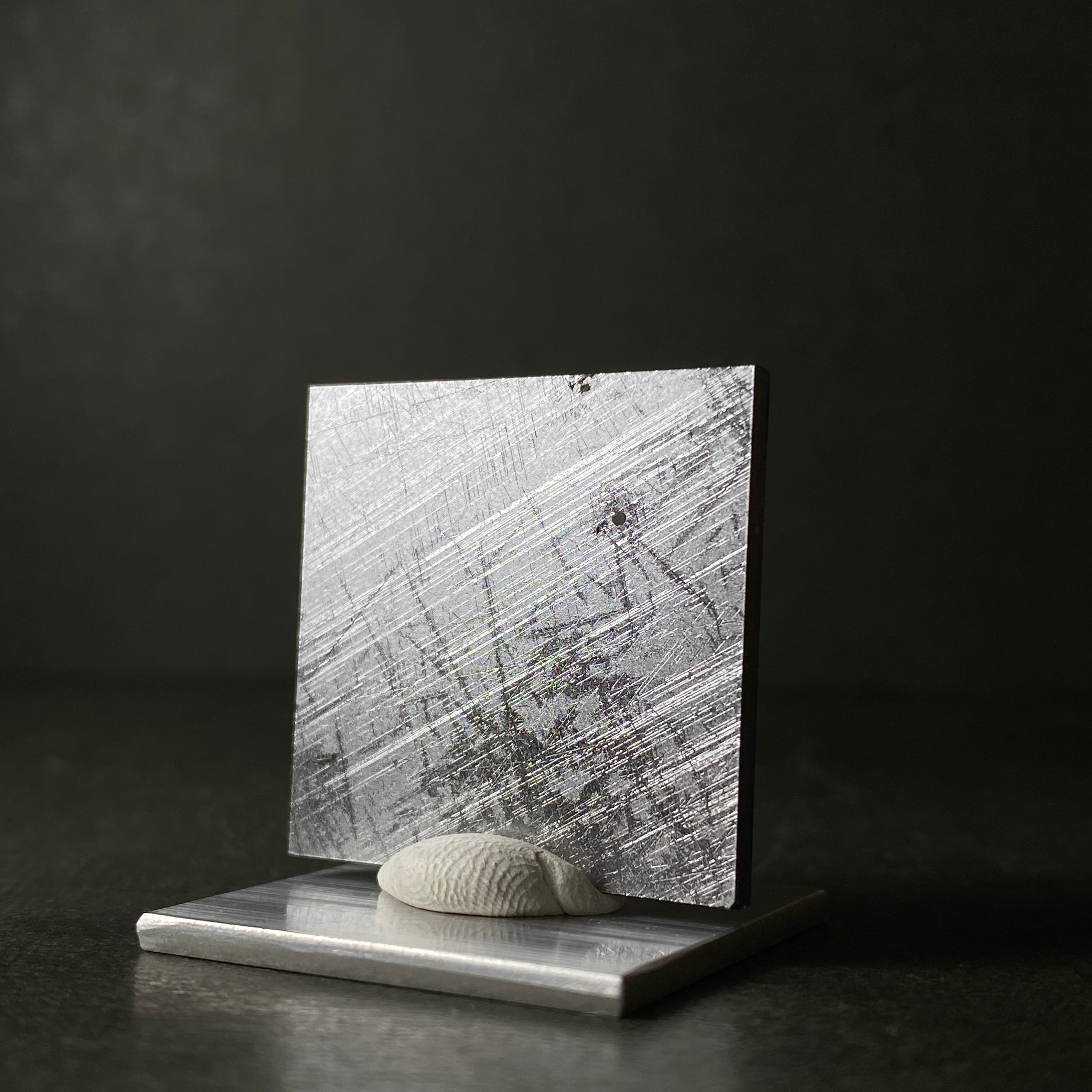 2011年にブラジルで発見された隕石です。50kgの原石1個しか見つかっていません。数が少ないヘキサへドライトに分類され、特有のノイマン線が綺麗にでます。また雪結晶のようなラブダイトが美しいのも特徴です。