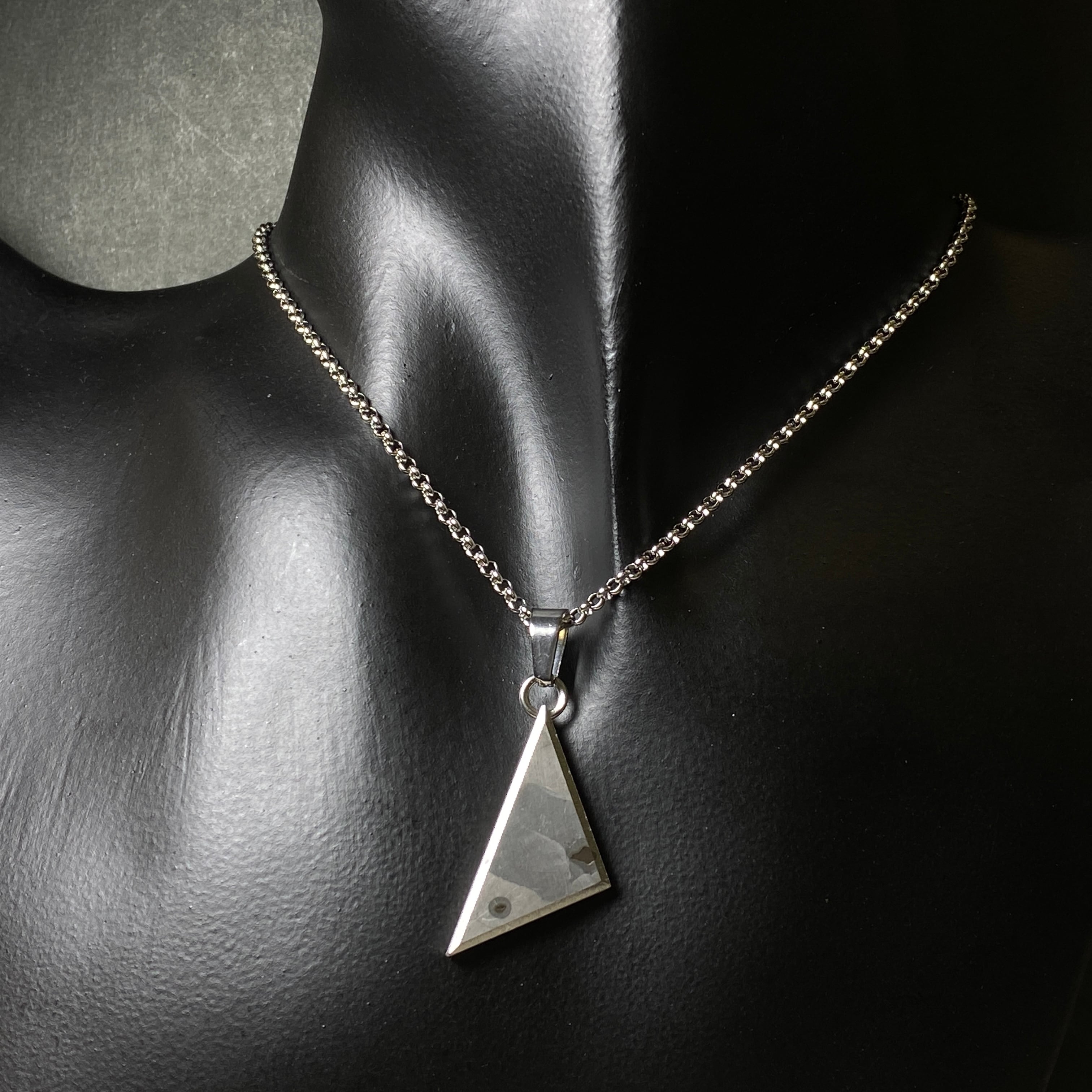 2000年にロシアで発見された隕石です。鉄隕石の一種で、ウィドマンシュテッテン構造が出ないアタキサイトに分類されます。それは隕石の主成分である鉄とニッケルの成分比の違いによるもので、ドロニノ隕石はニッケルが25%以上あるのが特徴です。そのためスライス品の鏡面仕上げが一般的で、その断面にトロイライトという黒いポツポツがあるのも特徴の1つです。