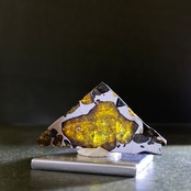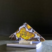 1822年にチリで発見された隕石です。パラサイト隕石自体の回収量は全体の約1%で希少なのですが、イミラックはその中でも希少かつ人気の隕石です。そのカンラン石は大きく、透明度が高いです。イエローグリーンに輝くその様は、宇宙の宝石と呼ばれるほどです。サビにくさも人気の1つです。美しいそのフォルムを美しいまま、いつまでの楽しめる隕石です。