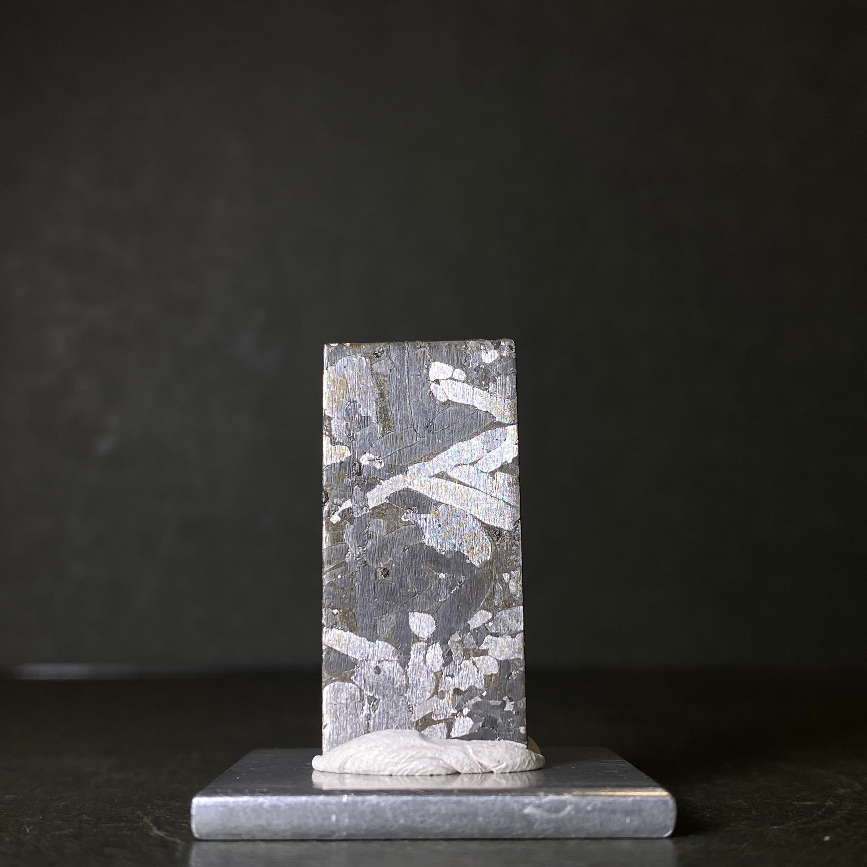 2017 年 7 月以前にメキシコのバハカリフォルニアにある牧場の近くで発見されました。回収量はたった1個で、わずか10kgの希少な隕石の1つです。とても独特なウィドマンシュテッテン構造で、小さなキラキラした、つぶつぶ模様が特徴的です。