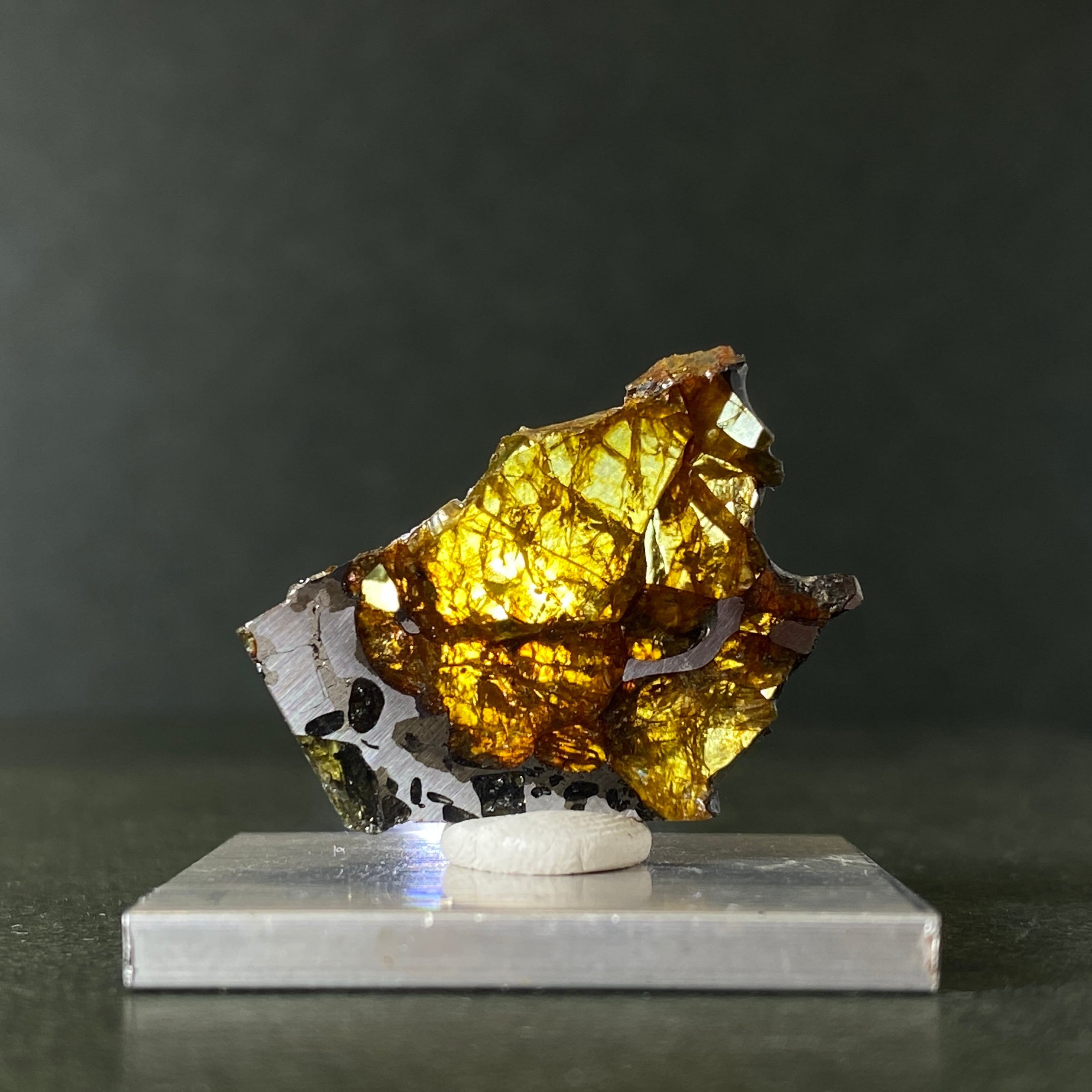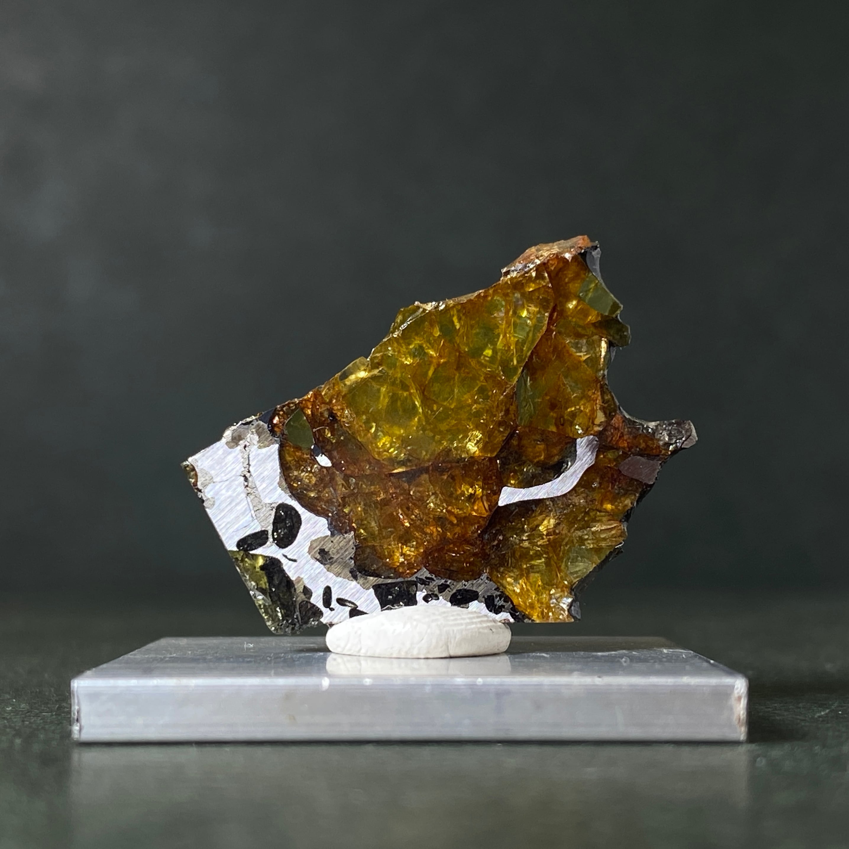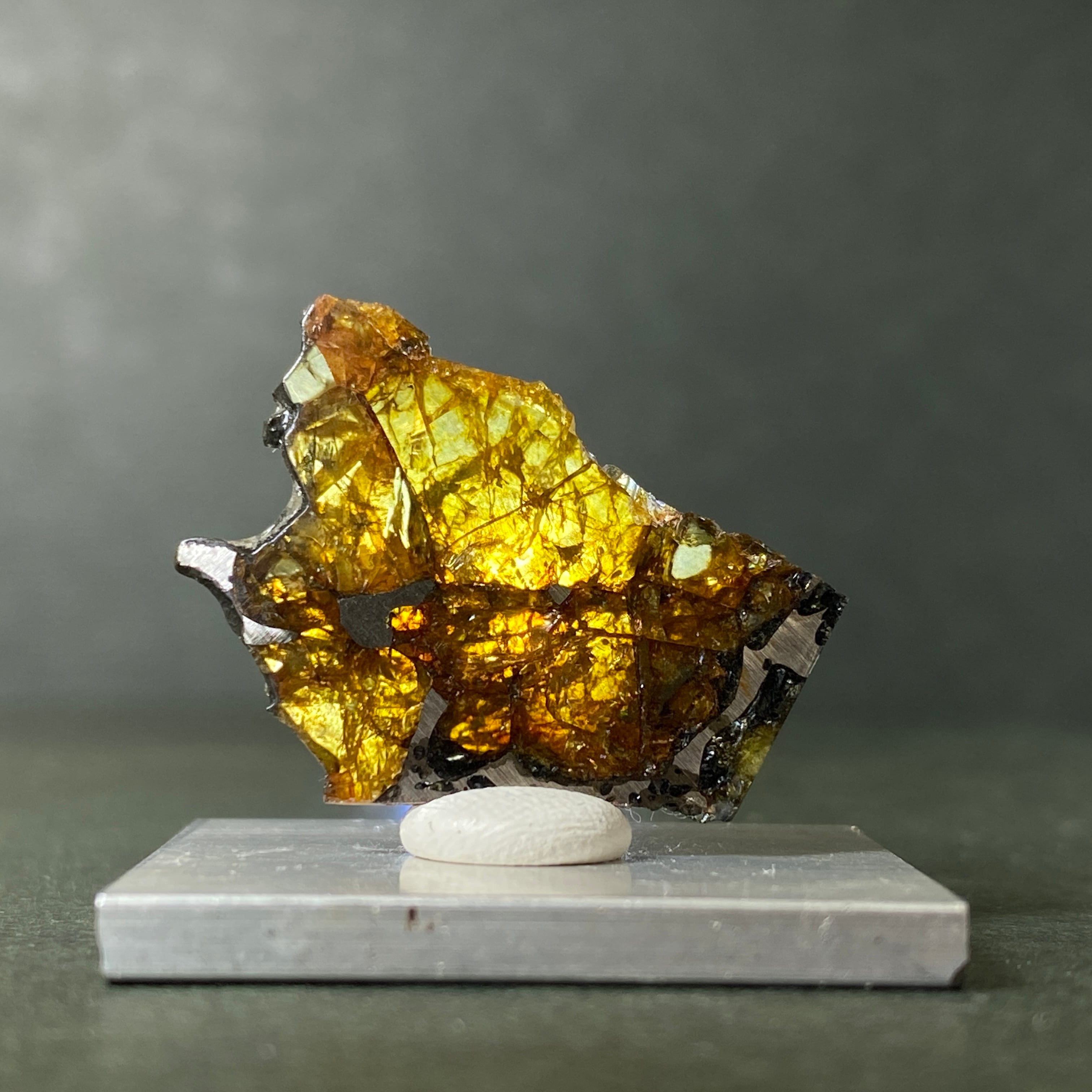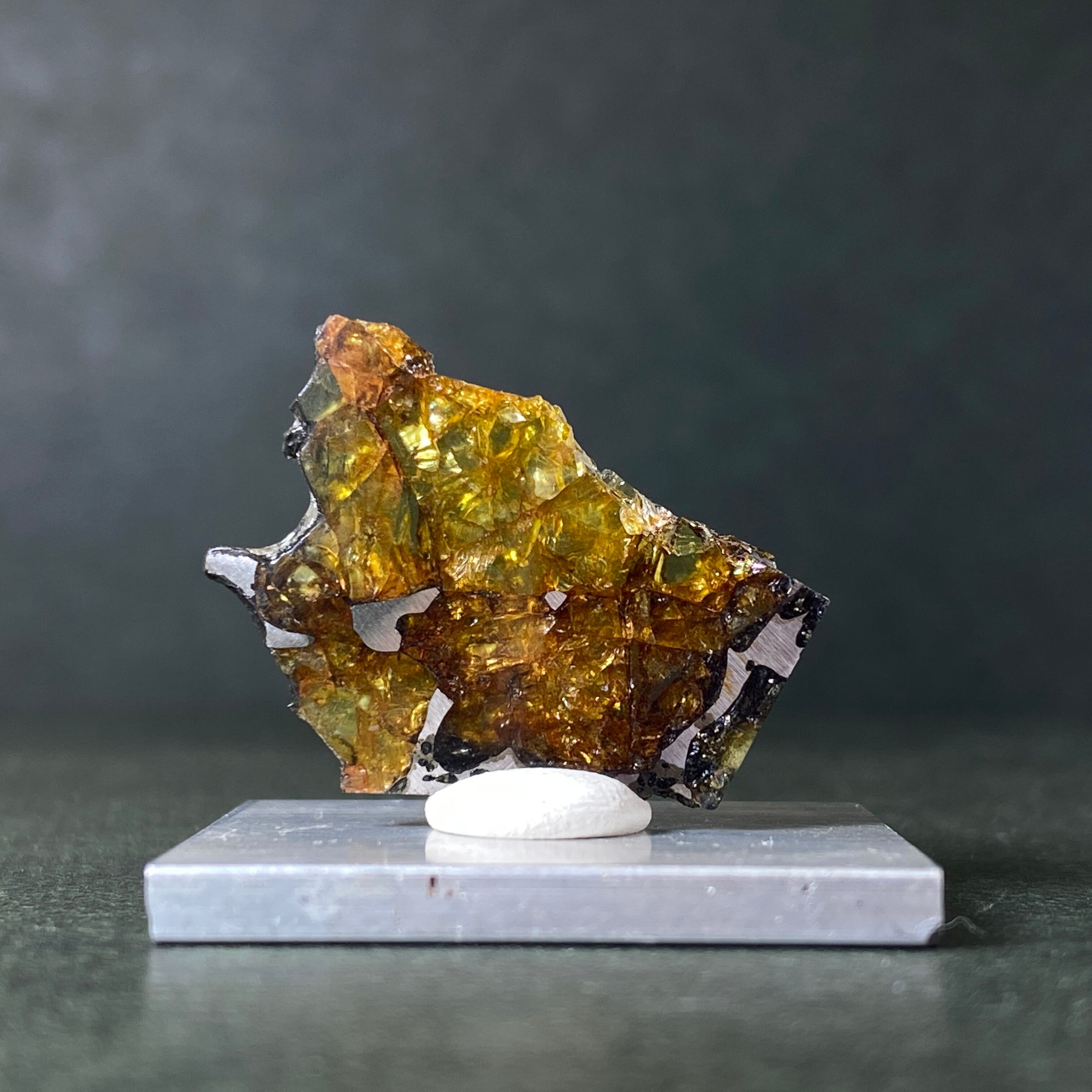 1951年にアルゼンチンで回収された石鉄隕石(パラサイト隕石)です。オリーブ色のカンラン石が特徴的で、大きさ、透明度ともに最高クラス。更にサビにも強いので、コレクターから強い人気を集めています。手放す人が少ないため入手困難な隕石で、イミラックよりも高価な隕石です。