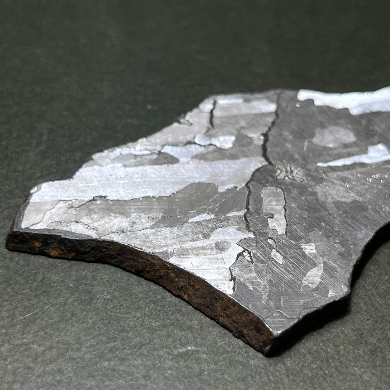 鉄隕石の成分は主に鉄とニッケルです。多湿な場所は避けてください。サビ発生の原因となります。また、サビが出てきてしまった場合は、100円ショップなどに売っているクエン酸に3分ほど浸けておくといいです。その後はよく水気を切って、隕石の中の細かな水分を抜くために無水エタノールに3分ほど浸けて、綺麗に拭き取るとサビが出にくくなります。更に、刃物用の油を表面に塗ることでコーティングの役割を果たしますから、よりサビが出にくくなります。隕石の成分上、最善の保管方法をしていてもサビが出てしまう場合がありますので、予めご了承ください。