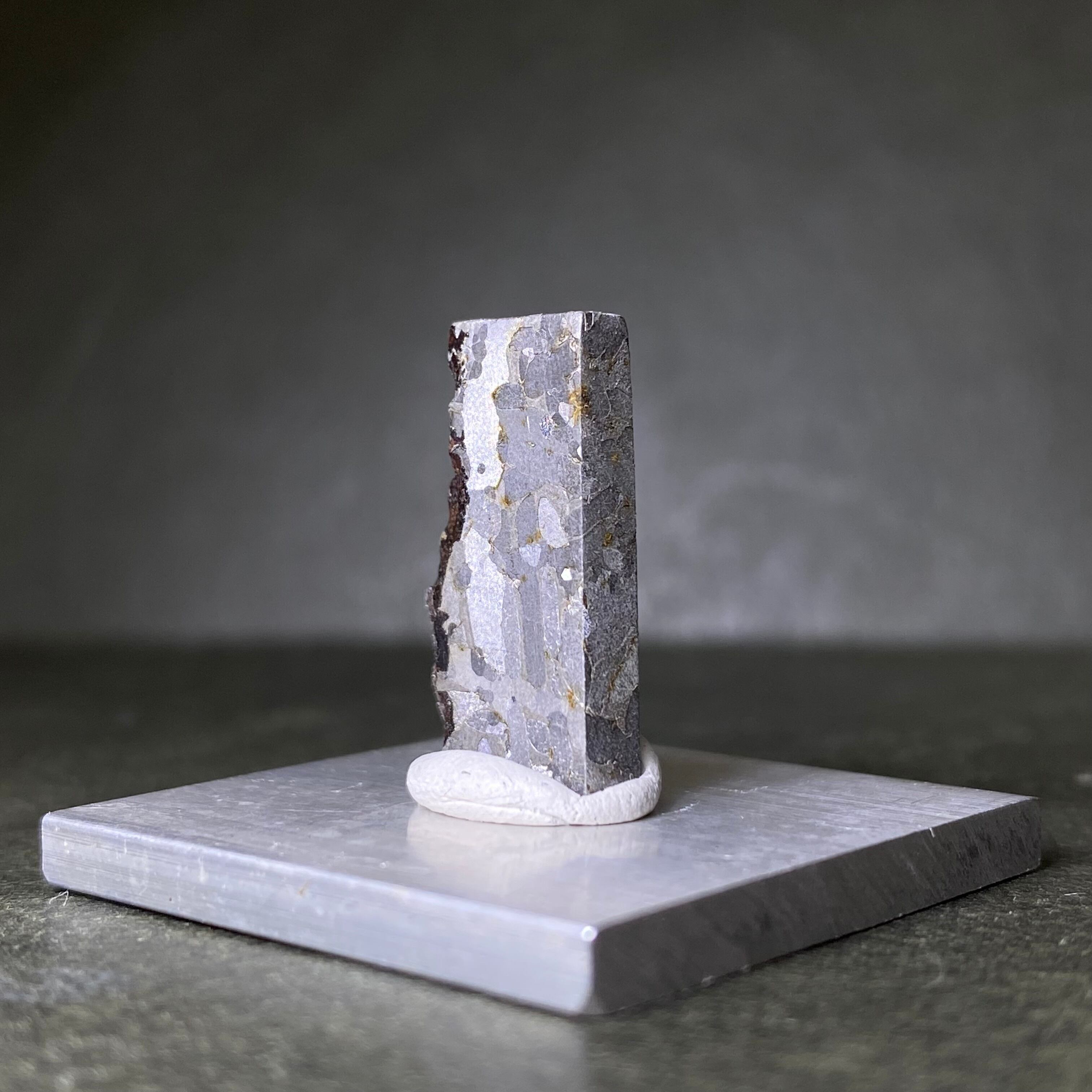 2017 年 7 月以前にメキシコのバハカリフォルニアにある牧場の近くで発見されました。回収量はたった1個で、わずか10kgの希少な隕石の1つです。とても独特なウィドマンシュテッテン構造で、小さなキラキラした、つぶつぶ模様が特徴的です。