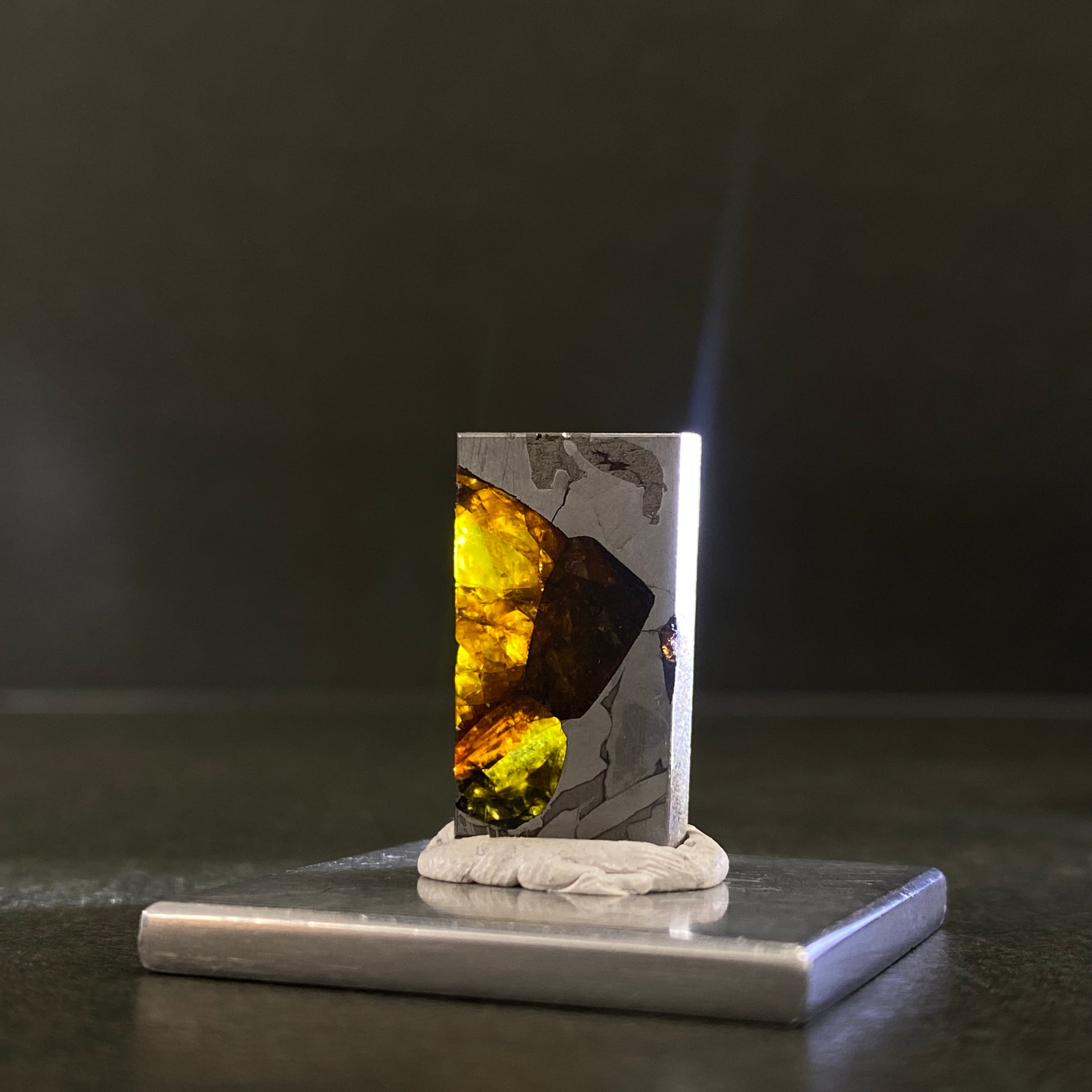 1951年にアルゼンチンで回収された石鉄隕石(パラサイト隕石)です。オリーブ色のカンラン石が特徴的で、大きさ、透明度ともに最高クラス。更にサビにも強いので、コレクターから強い人気を集めています。手放す人が少ないため入手困難な隕石で、イミラックよりも高価な隕石です。
